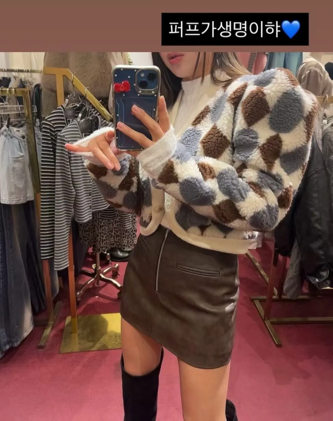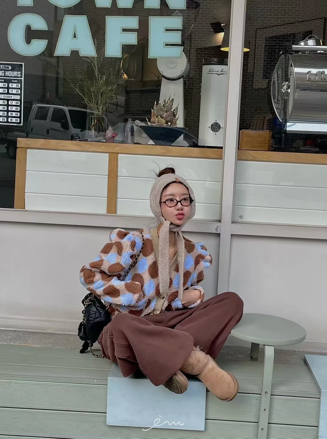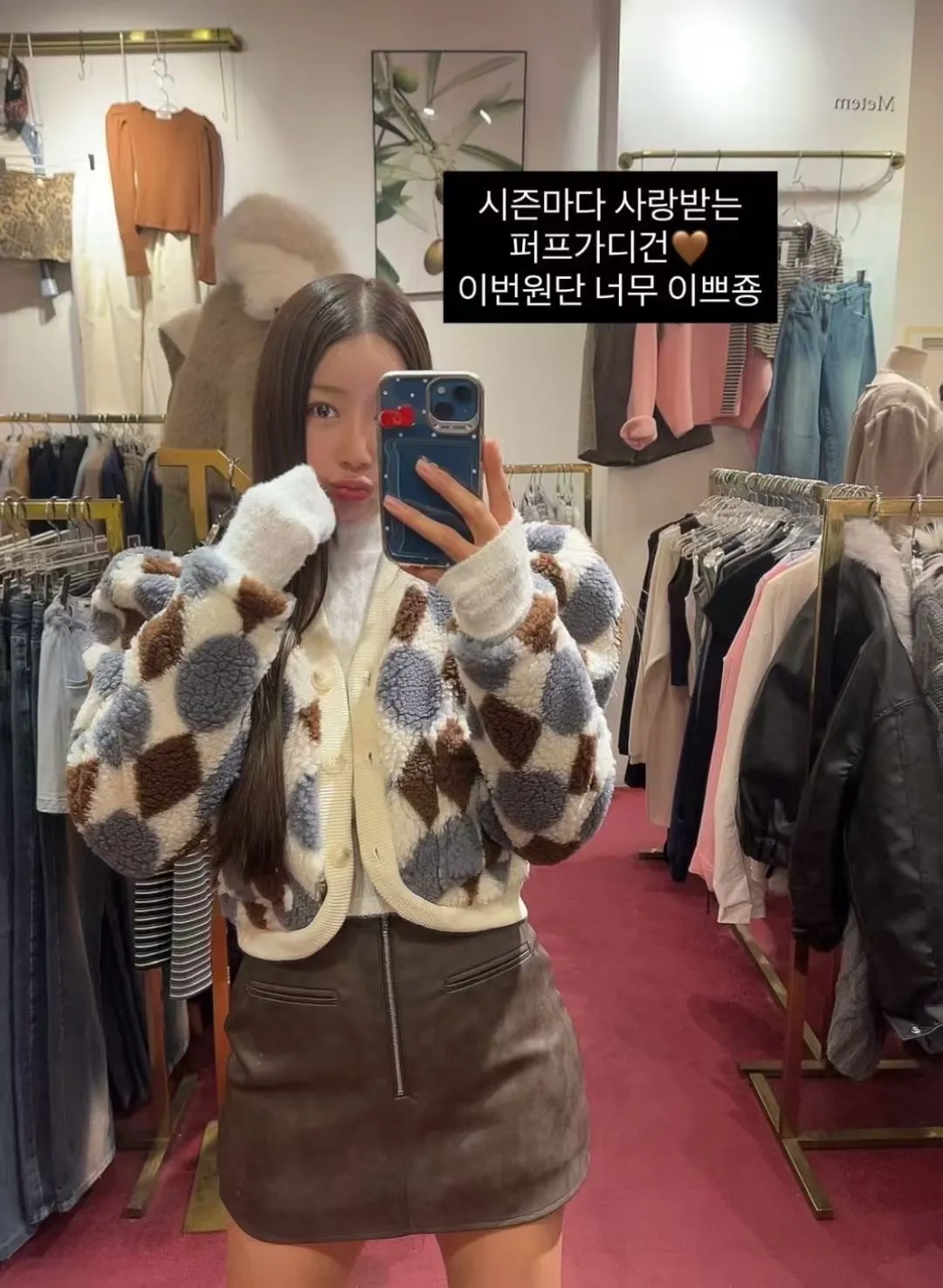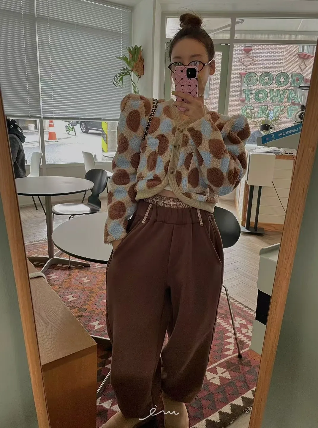 MI拼色格菱紋鈕扣外套