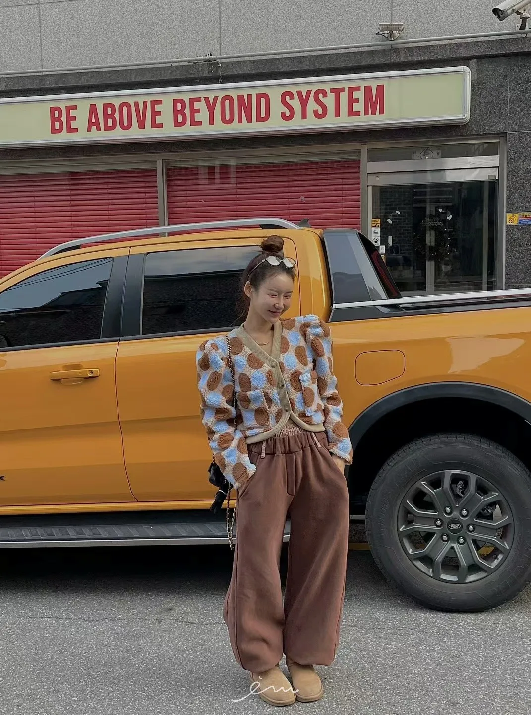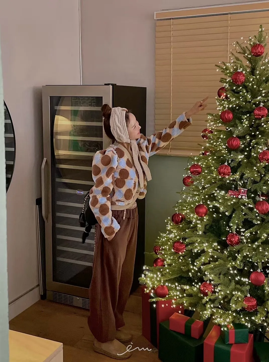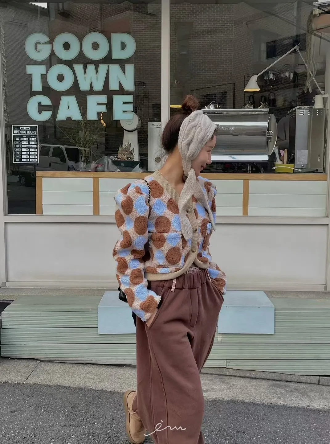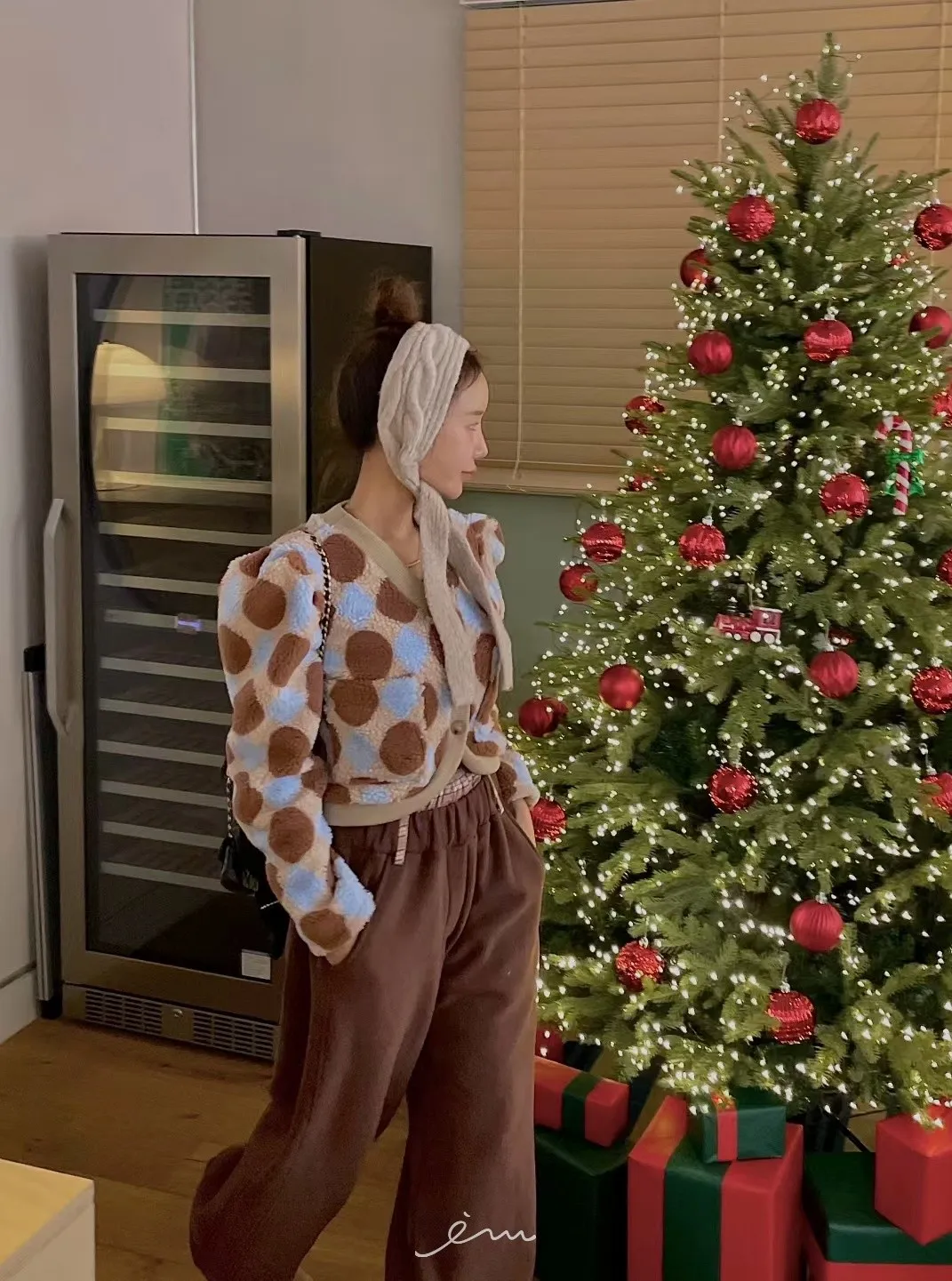 MI拼色格菱紋鈕扣外套