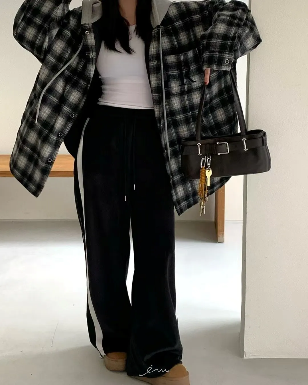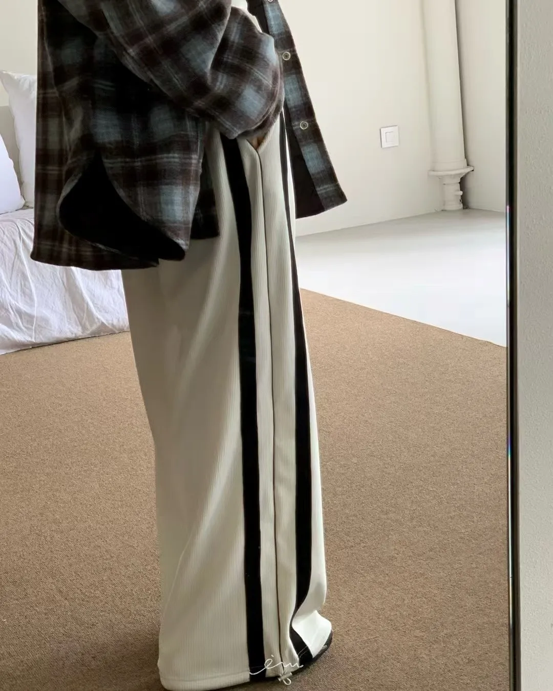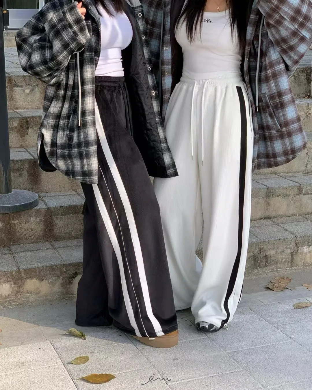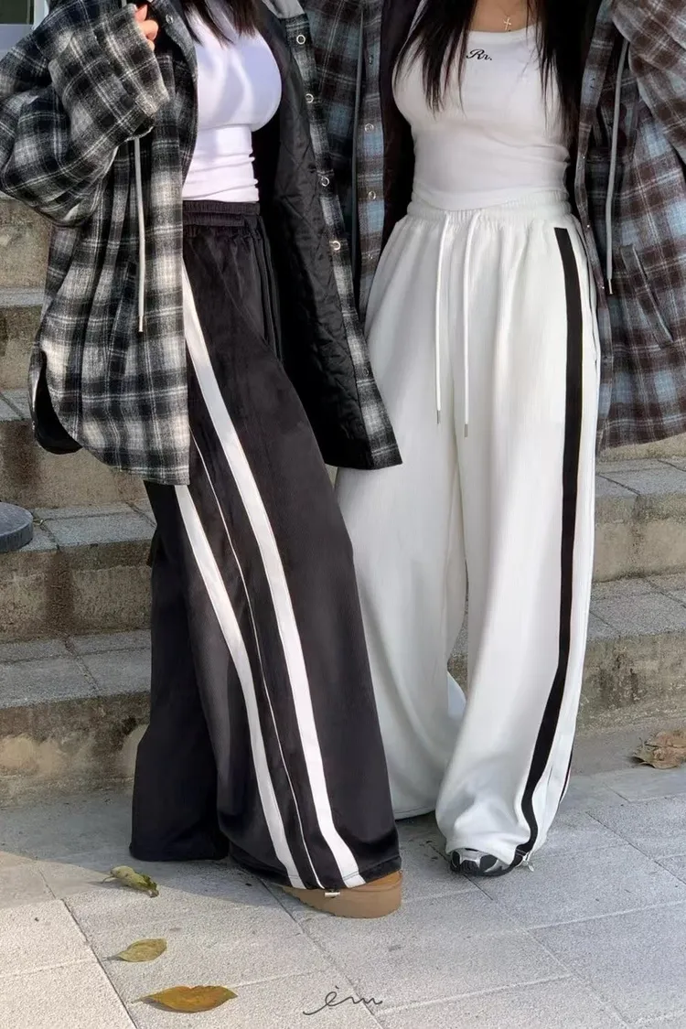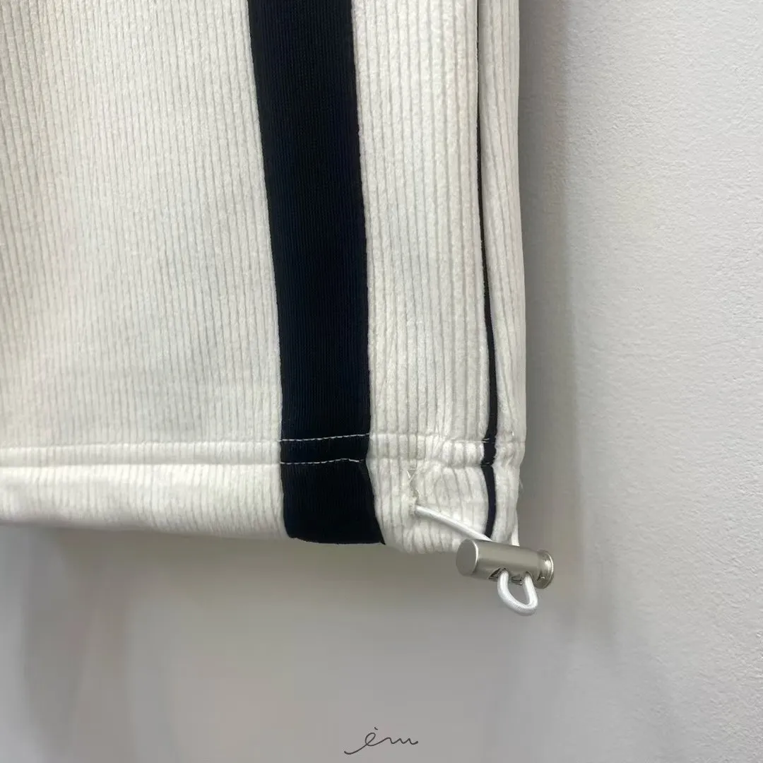 RE絲絨內水貂毛側邊直條抽繩寬褲