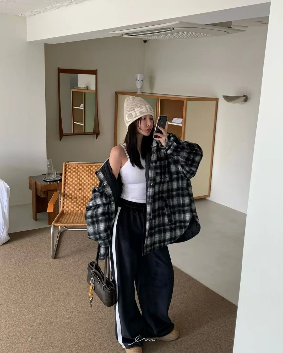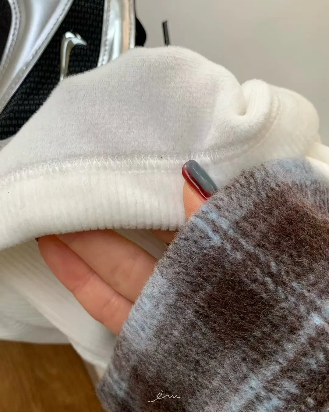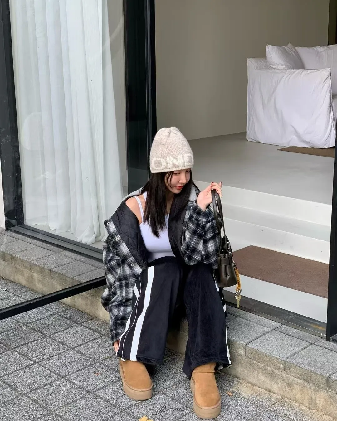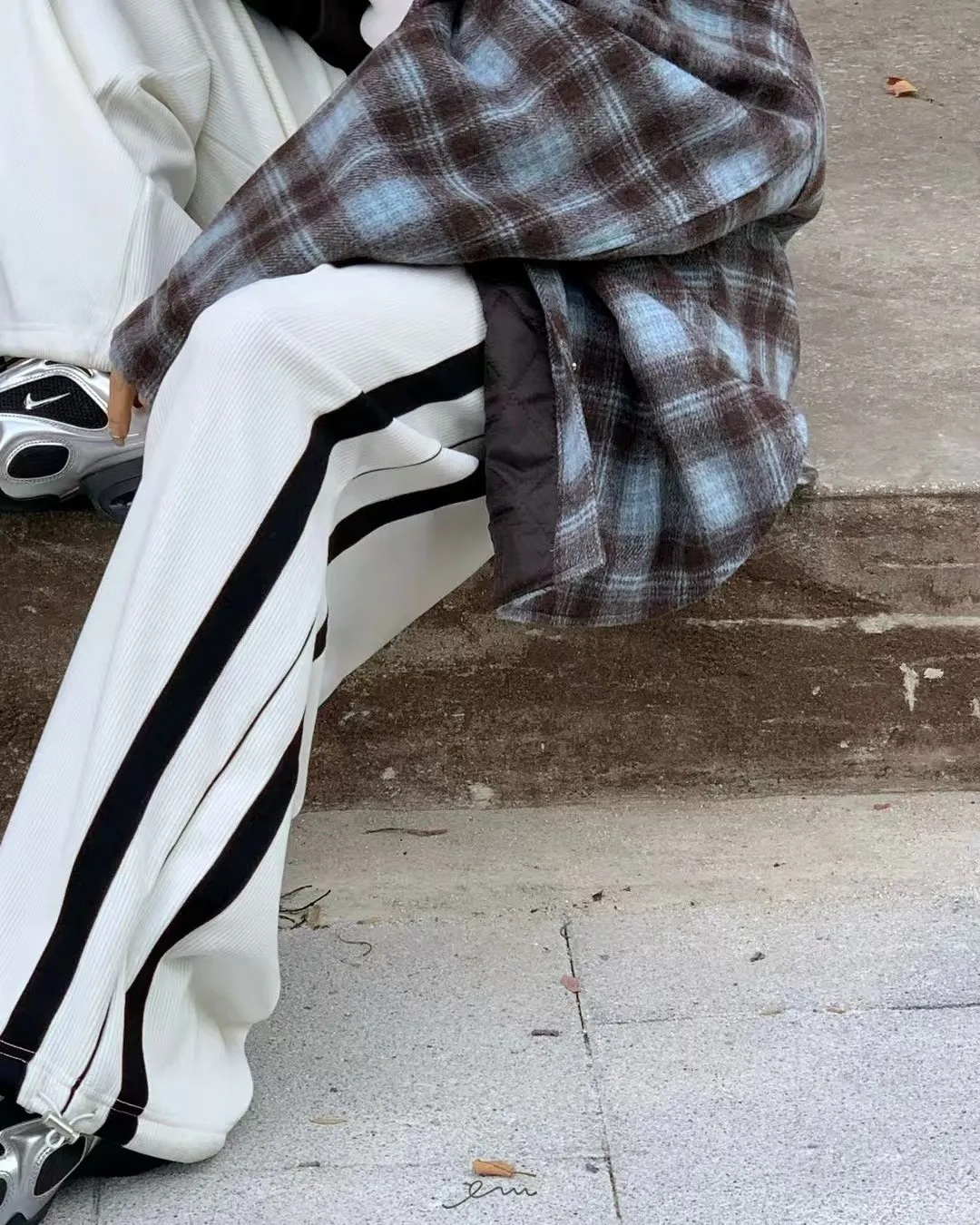 RE絲絨內水貂毛側邊直條抽繩寬褲