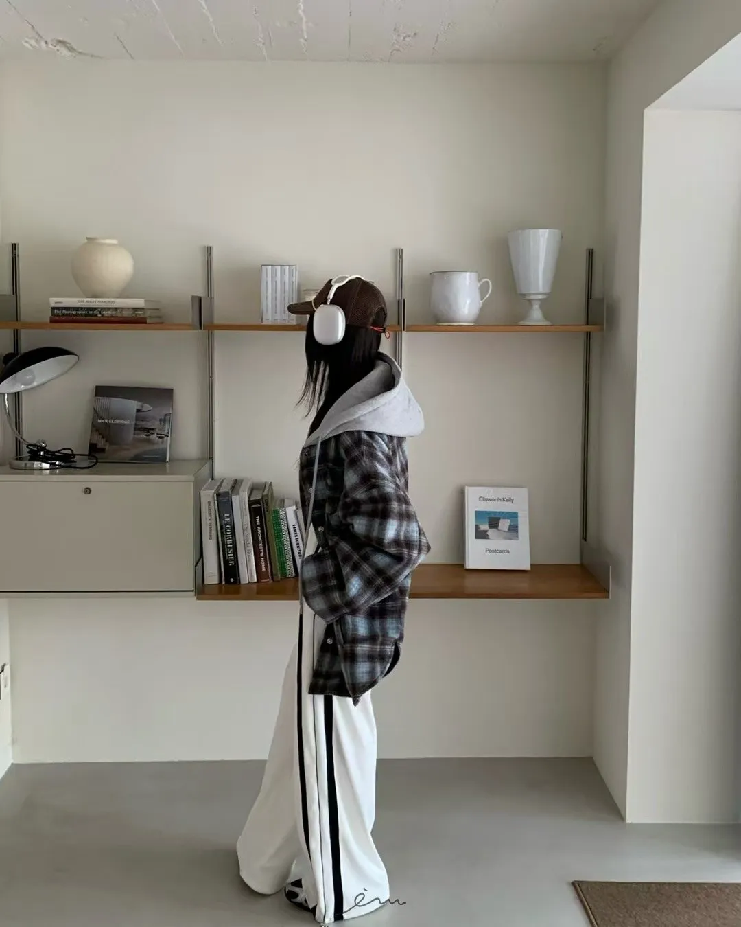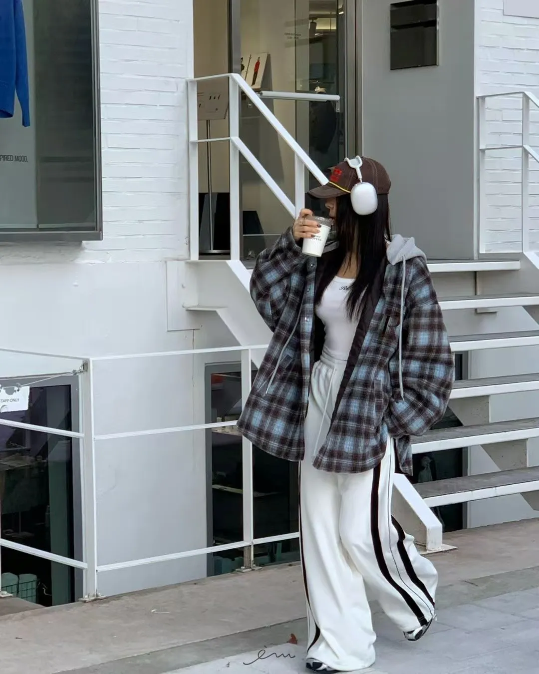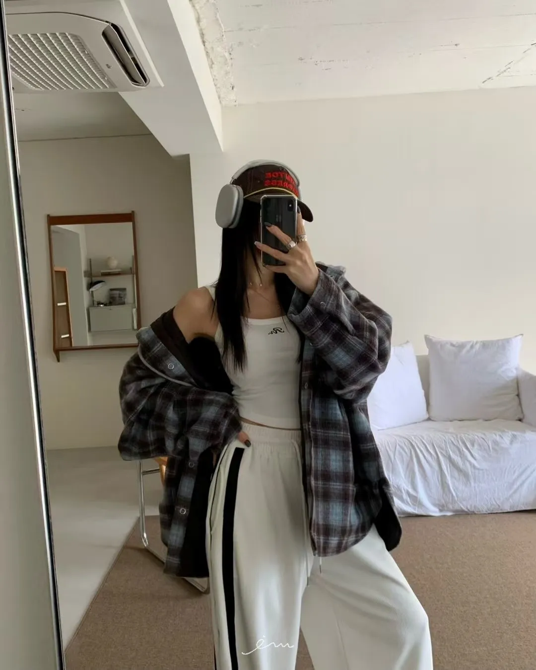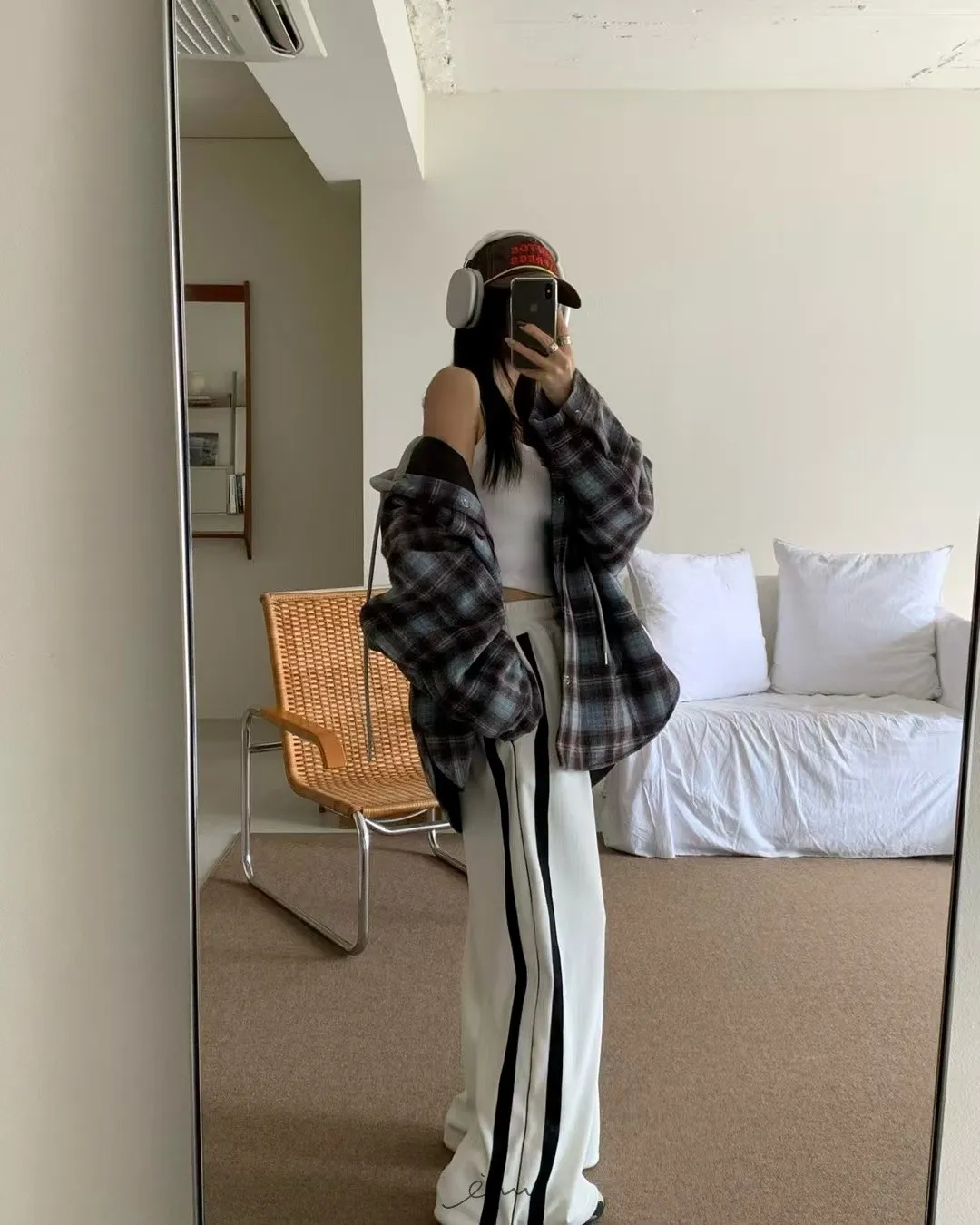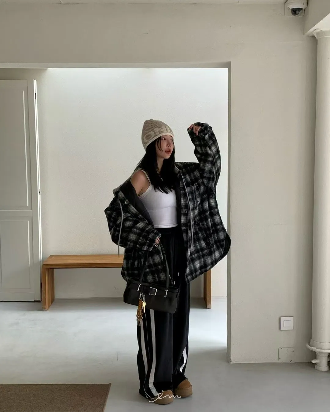RE絲絨內水貂毛側邊直條抽繩寬褲
