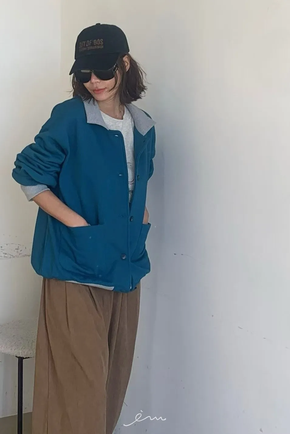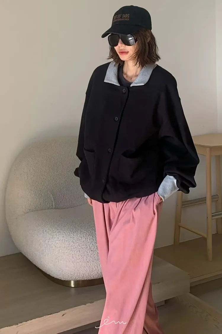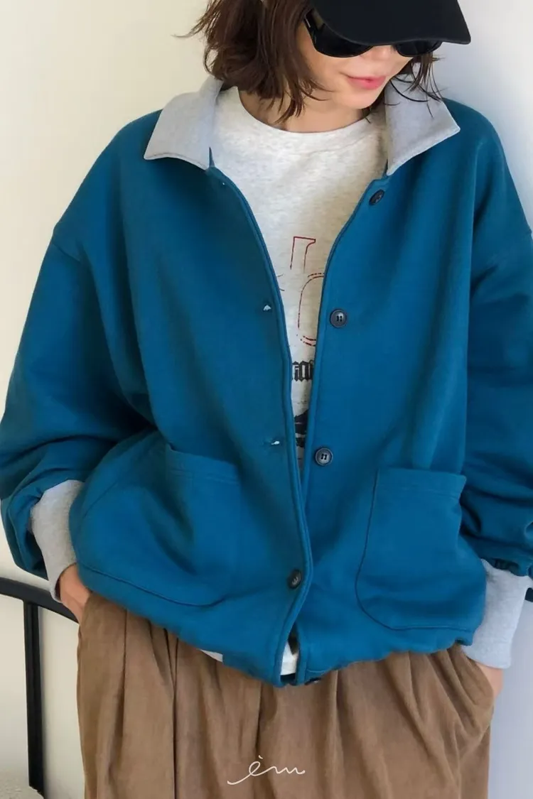 PA內磨毛拼色造型排釦棉外套