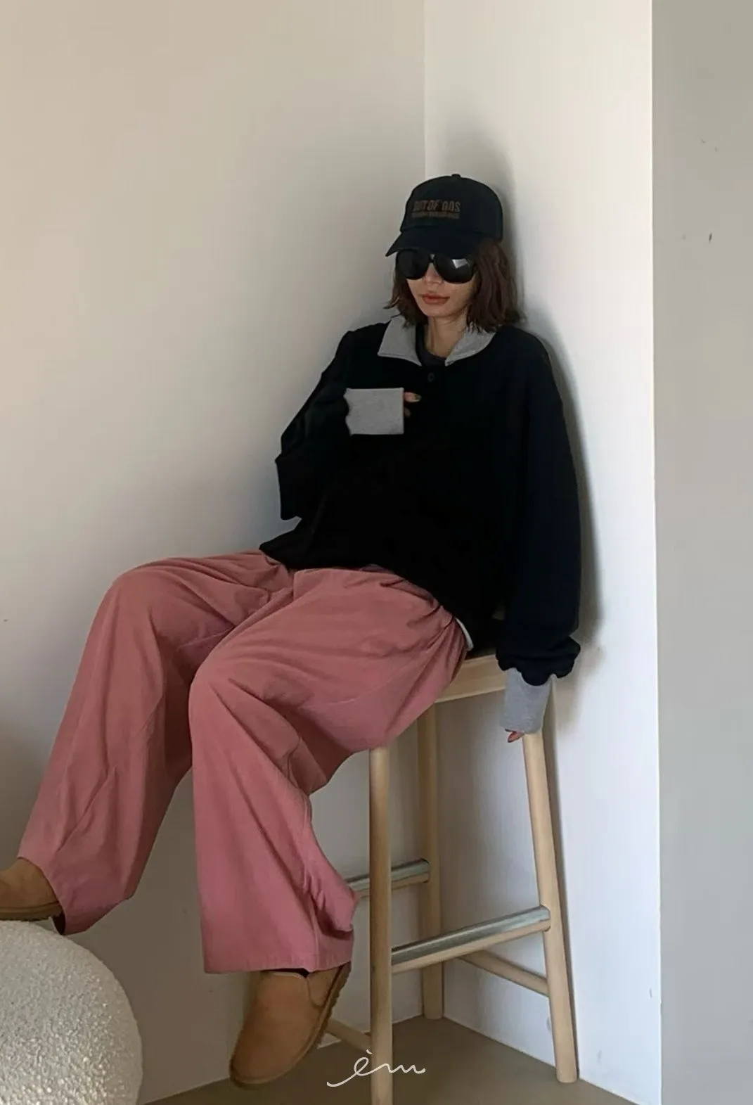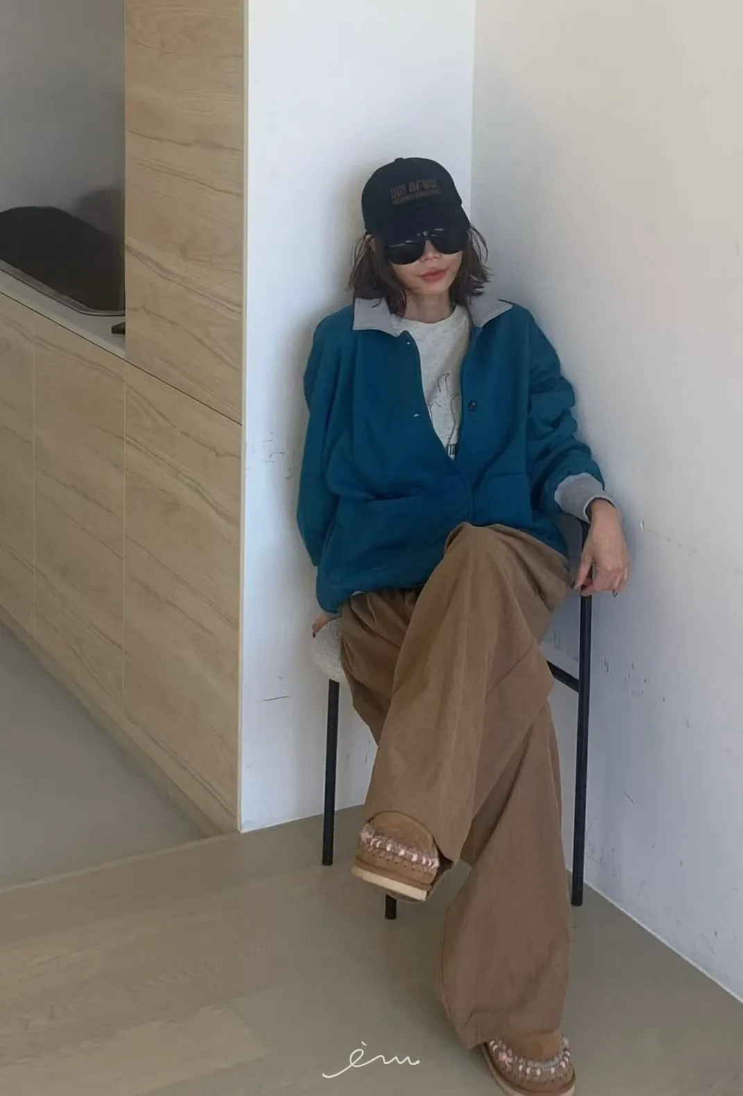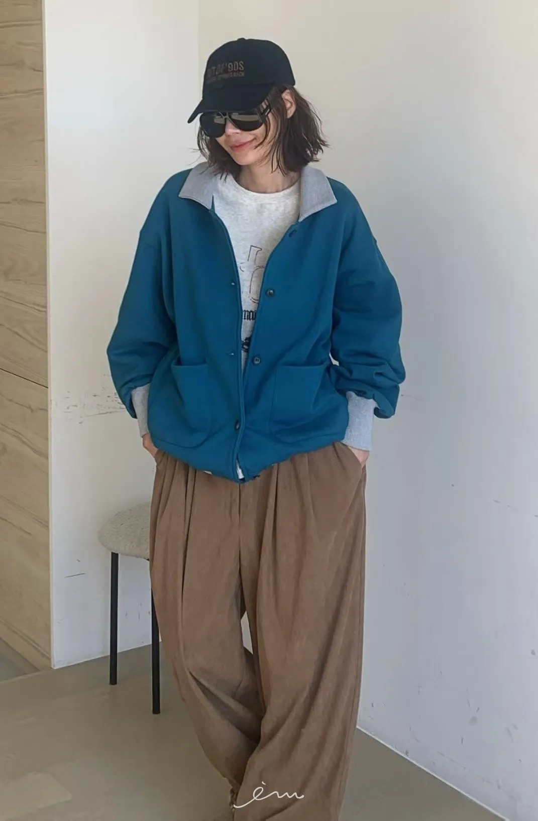 PA內磨毛拼色造型排釦棉外套