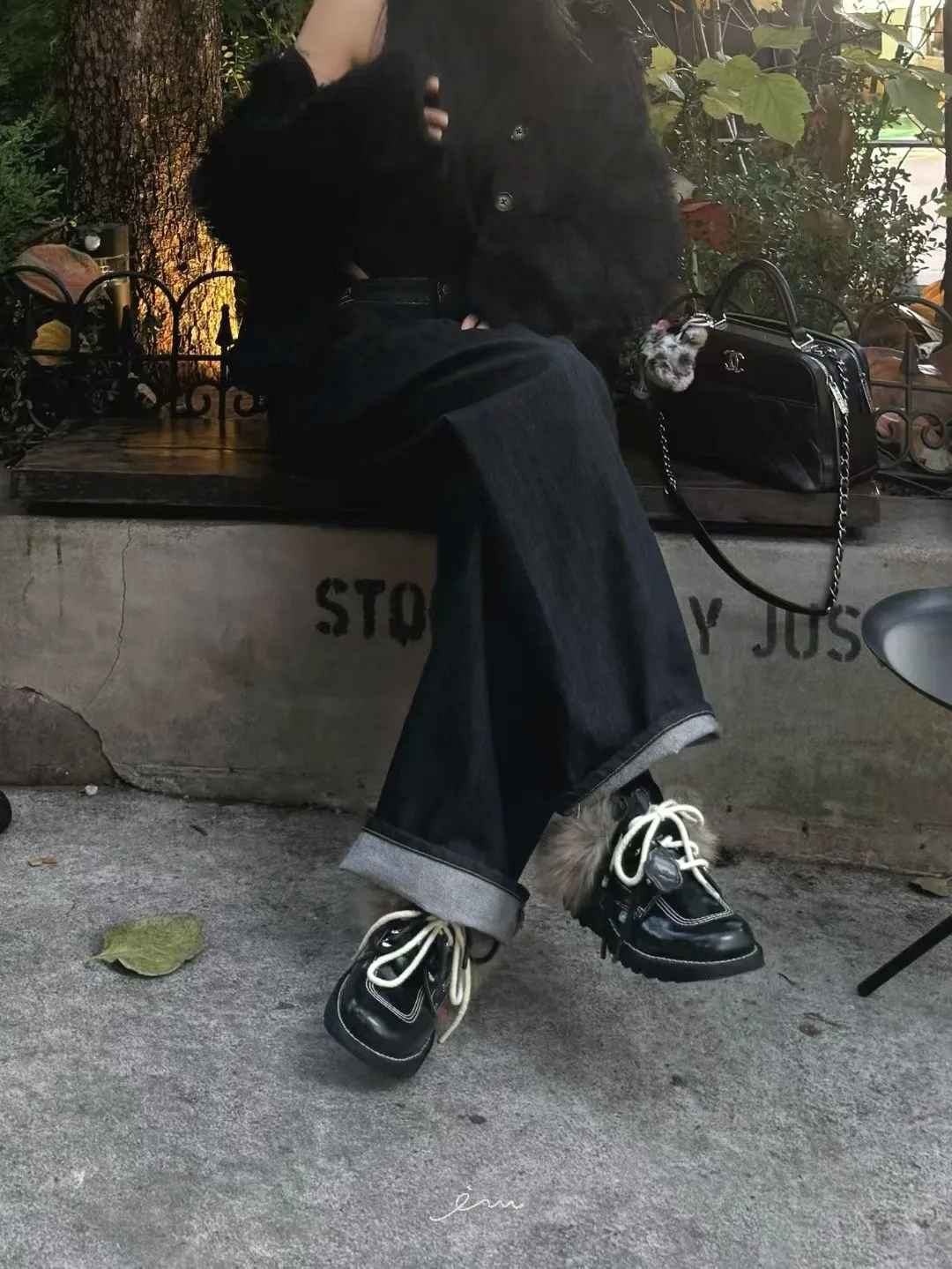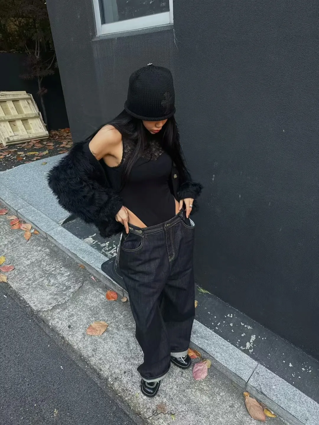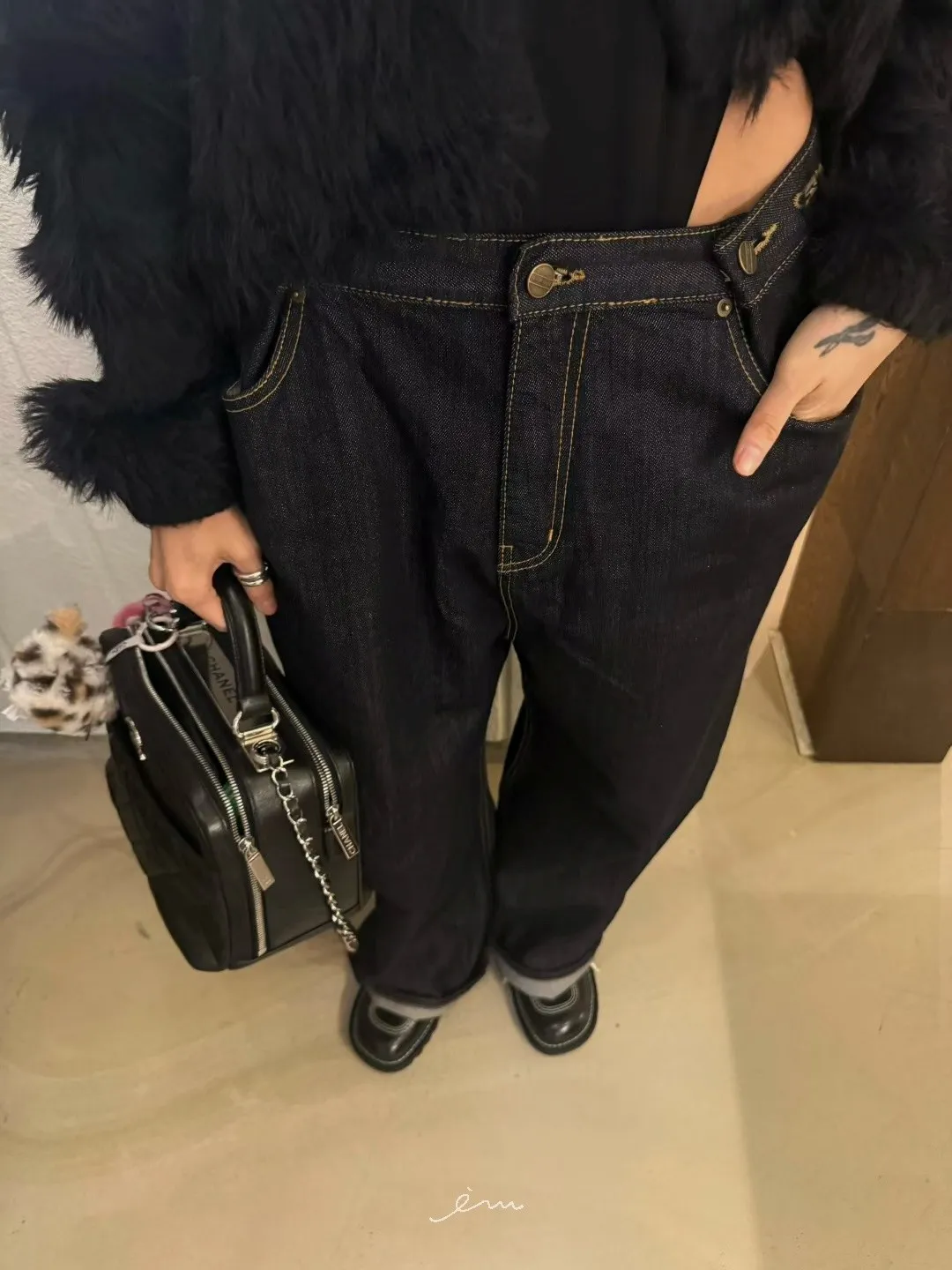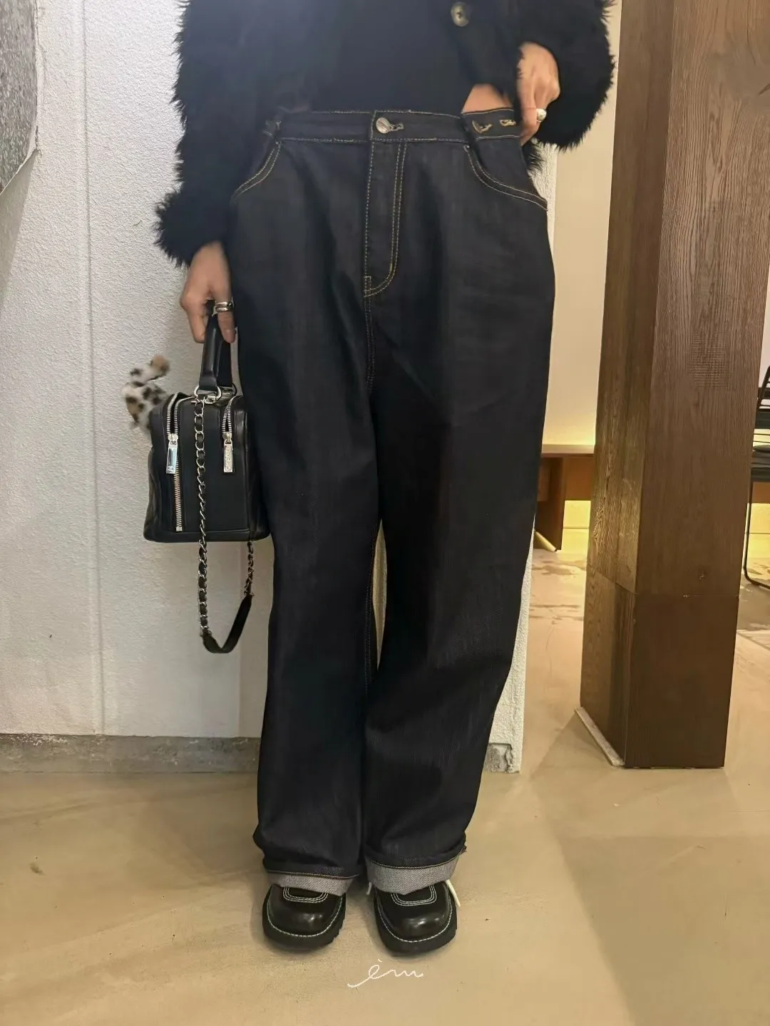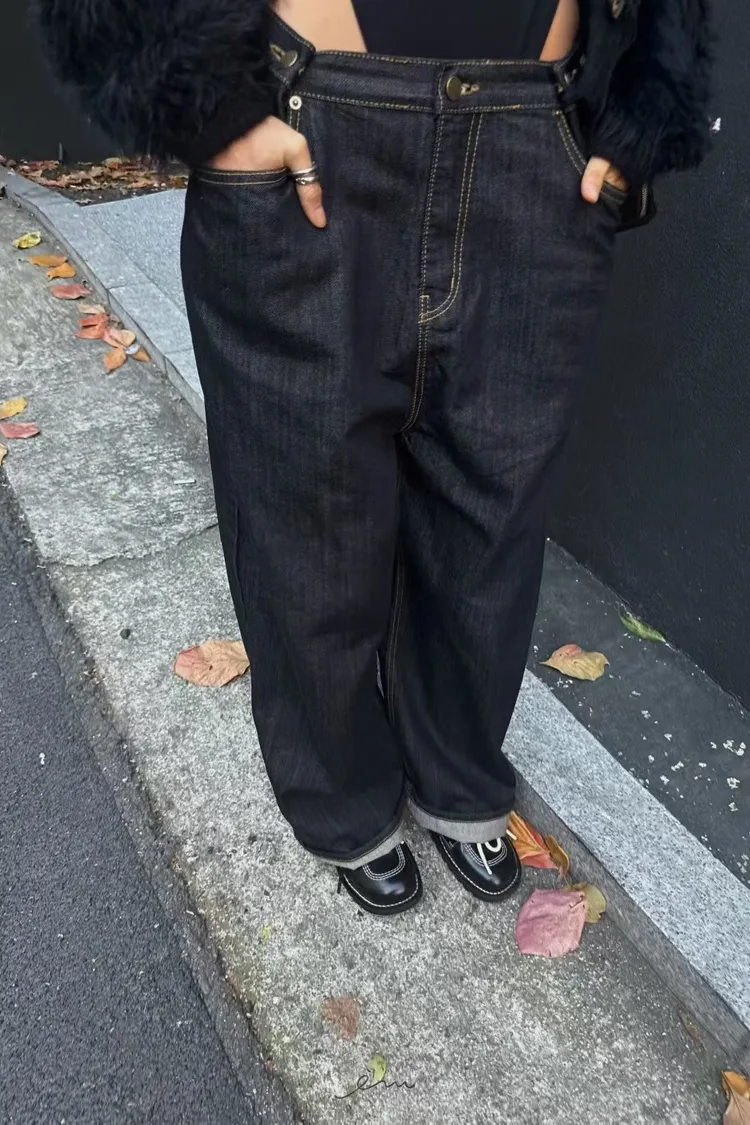 ABB鈕釦調節直筒牛仔長褲