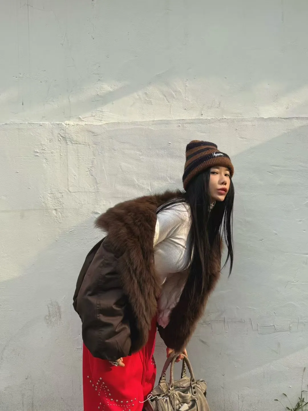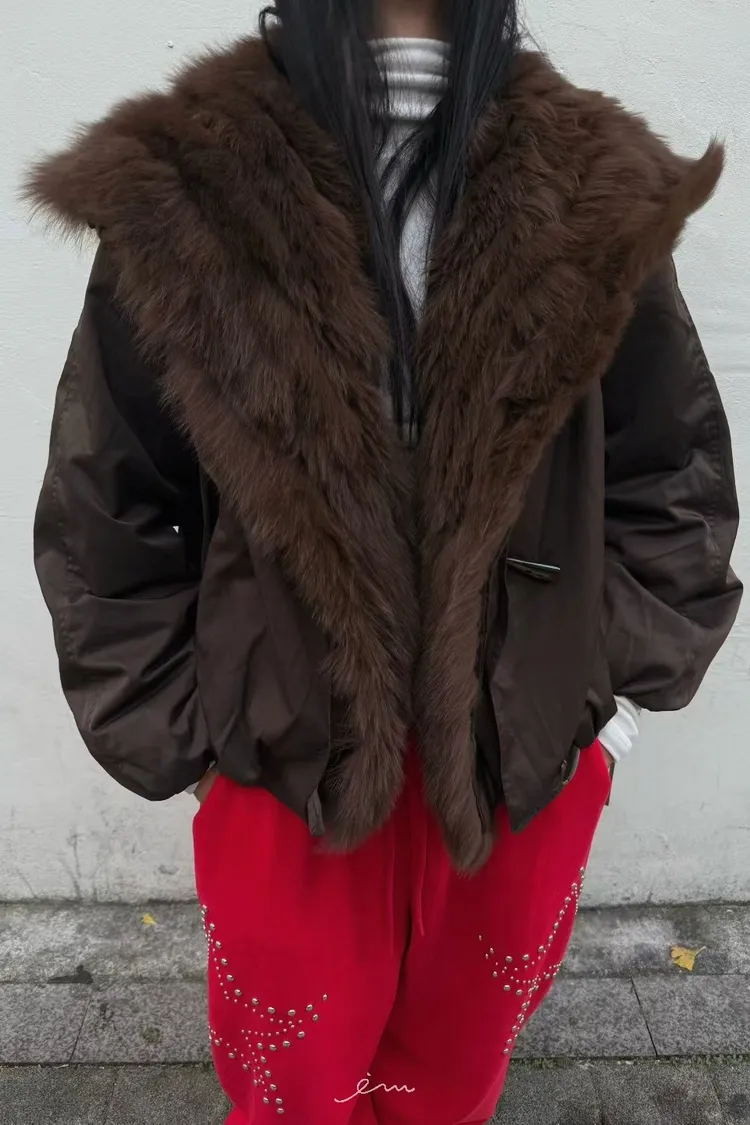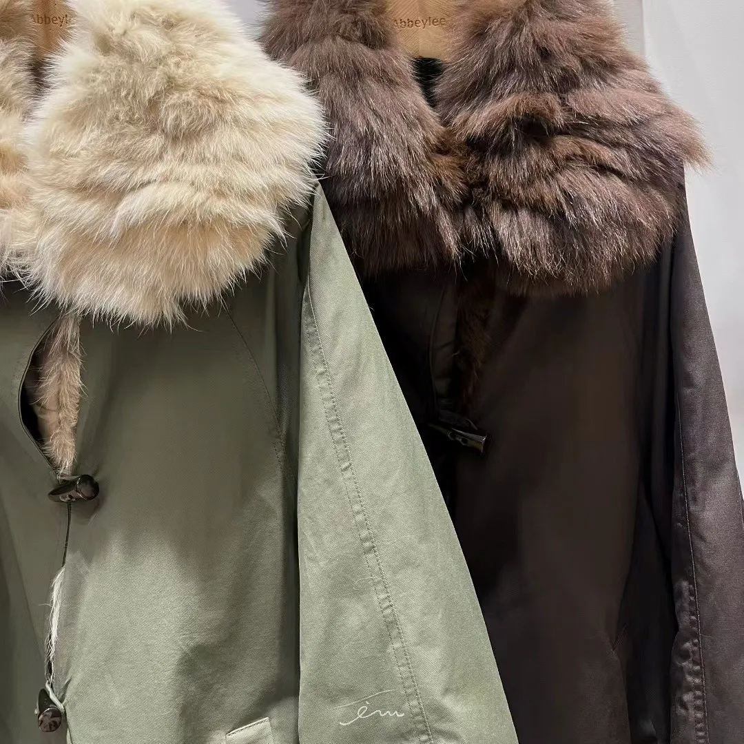 ABB狐狸毛領牛角釦內鵝絨外套(毛領可拆)