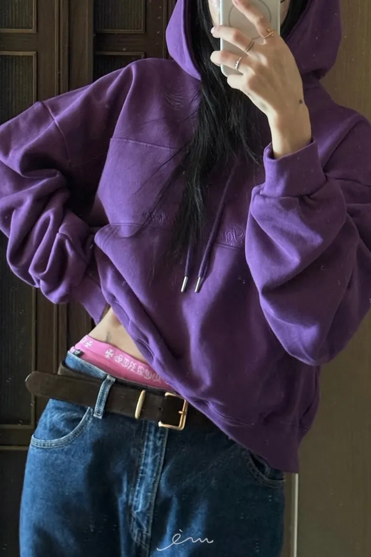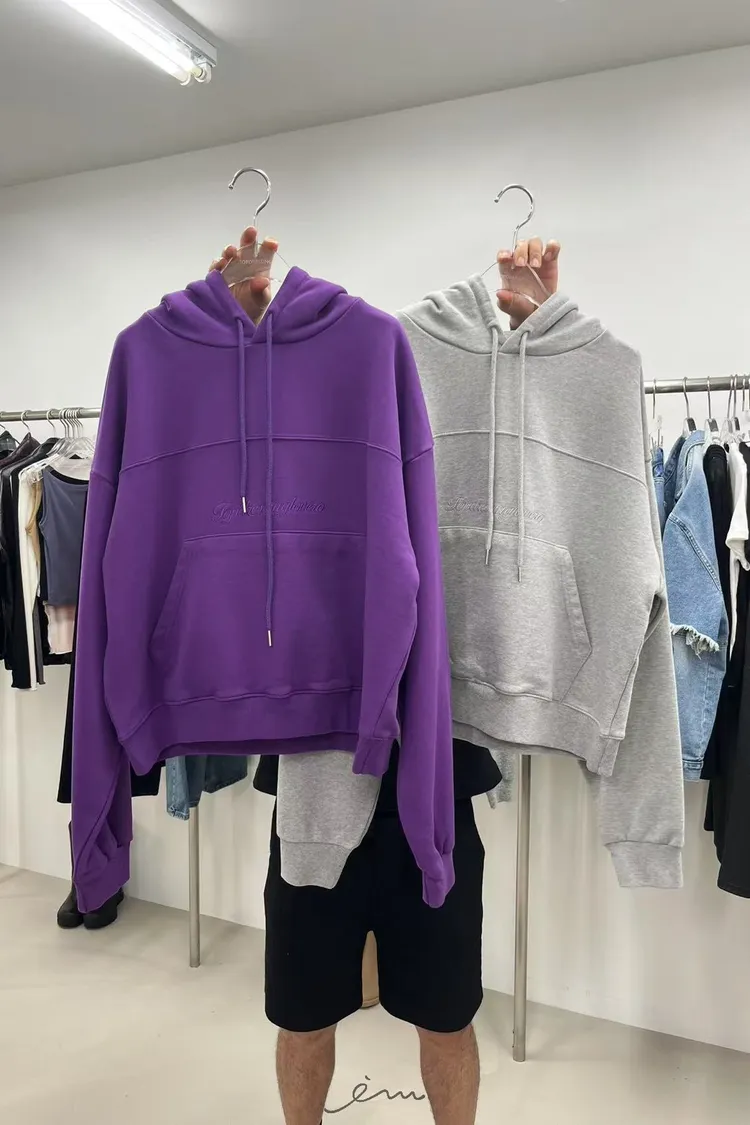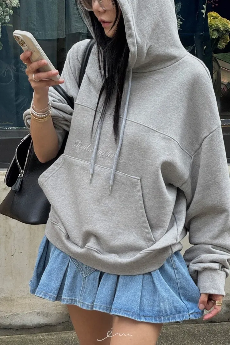 TOP內毛巾料英字抽繩連帽衛衣
