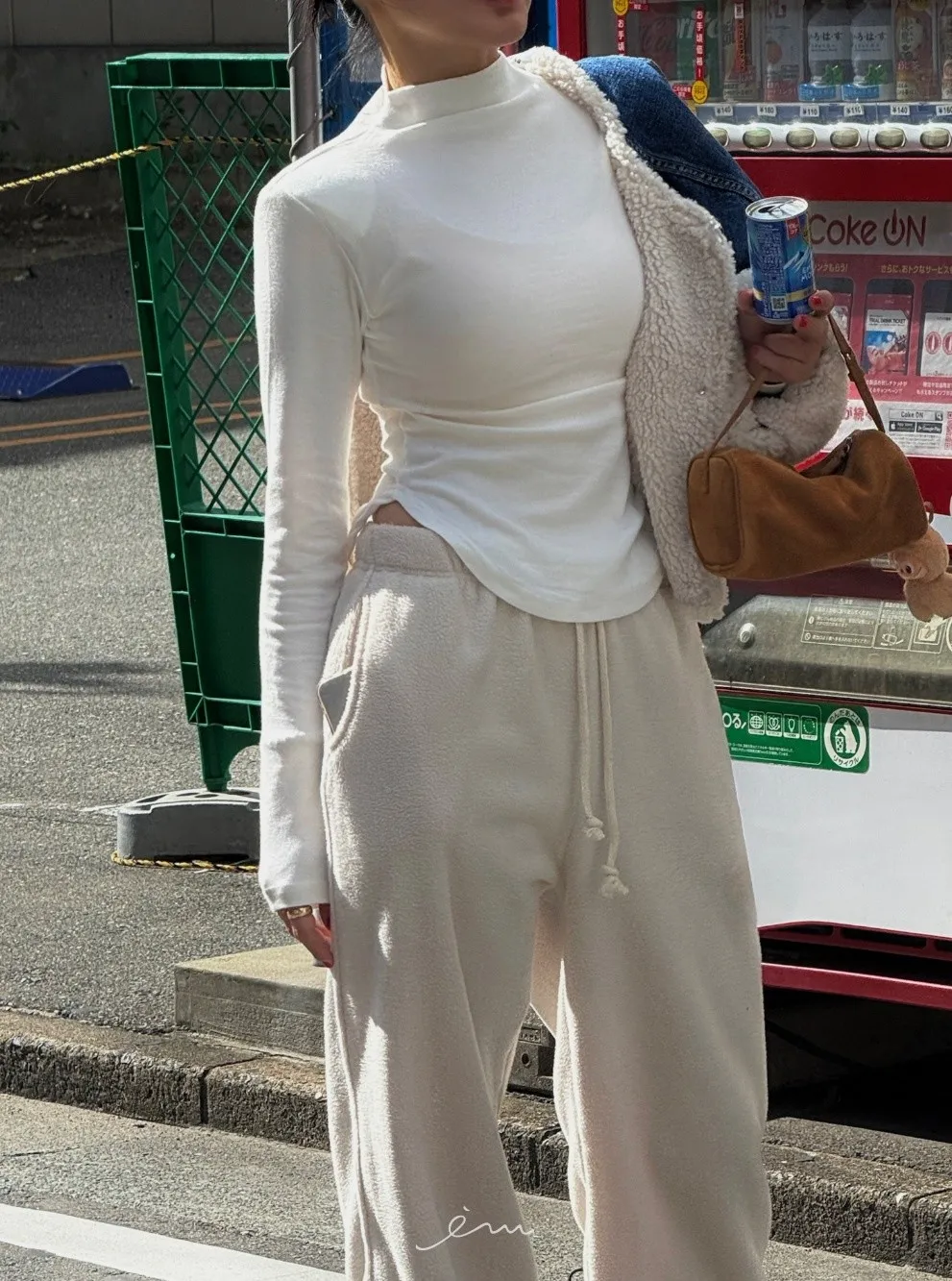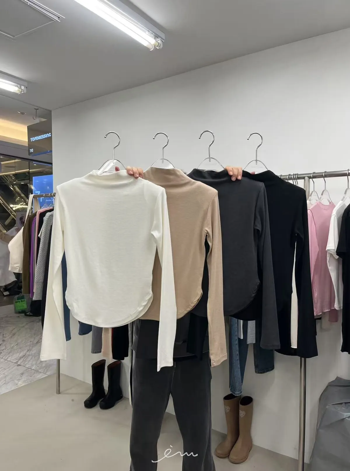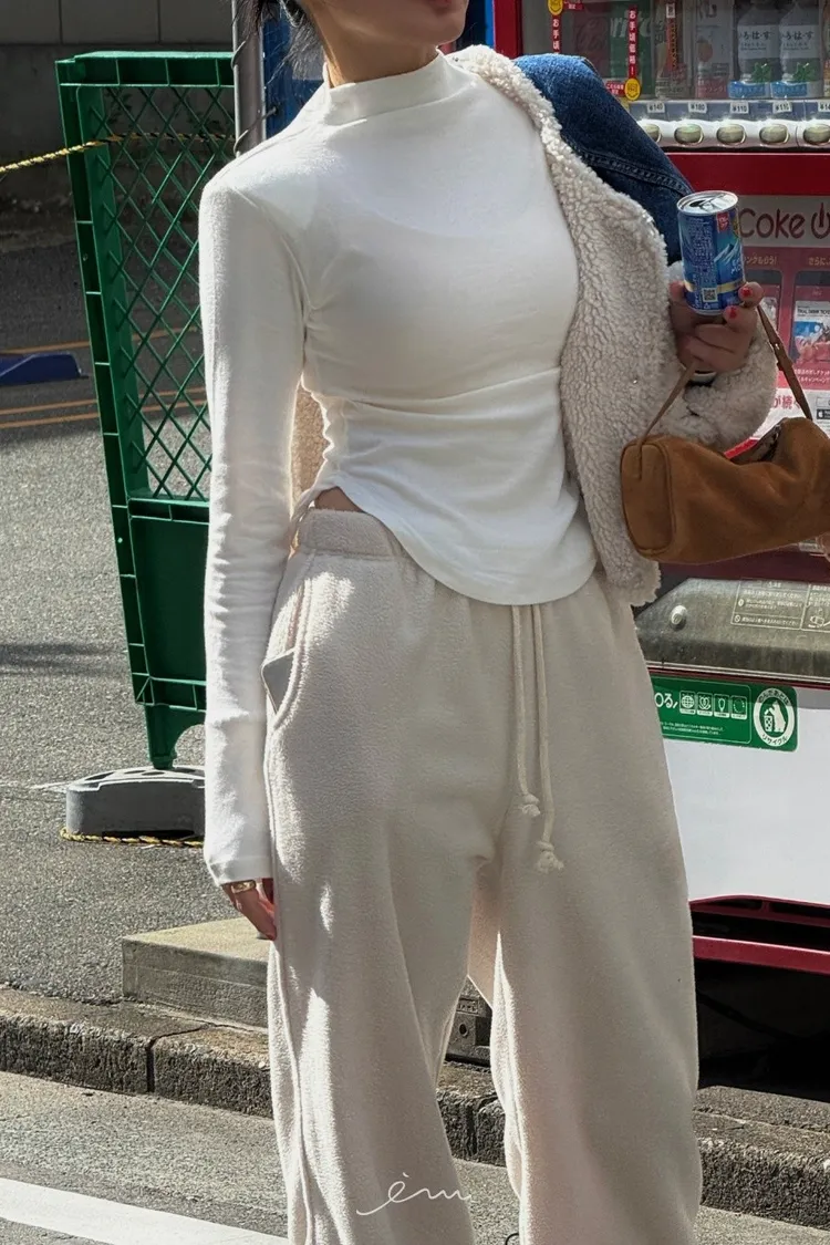 TOP下擺圓弧半高領長袖上衣