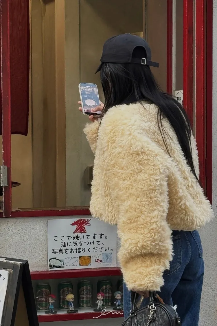 TOP奶油風毛毛拉鍊外套(羊毛)