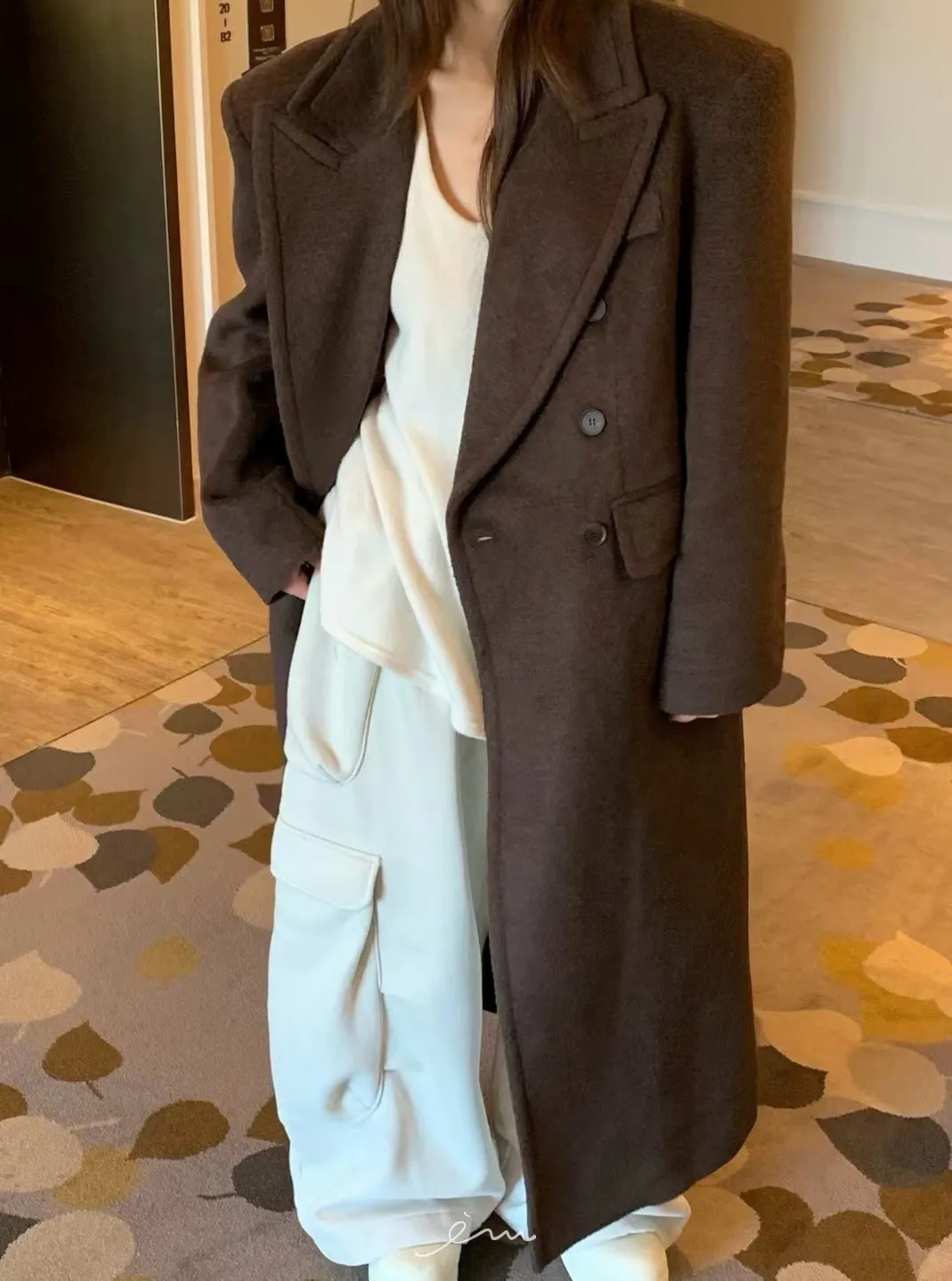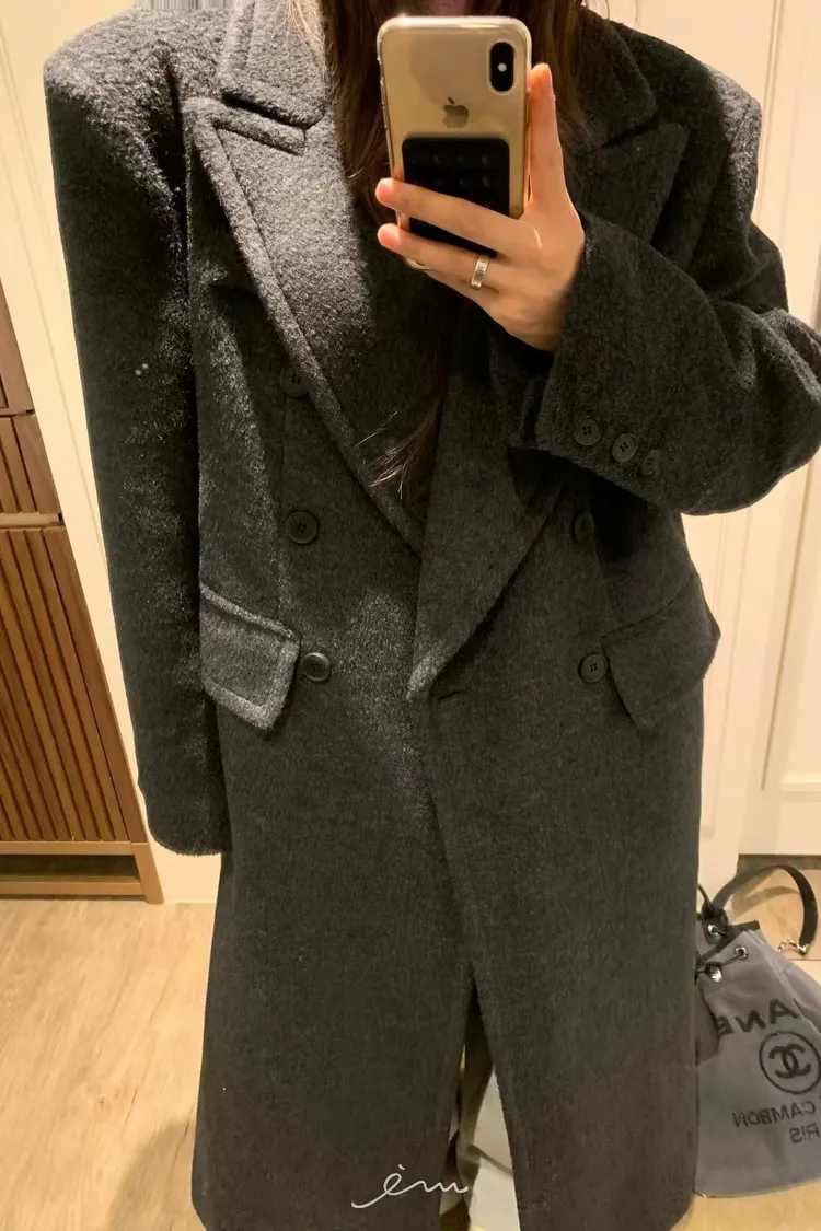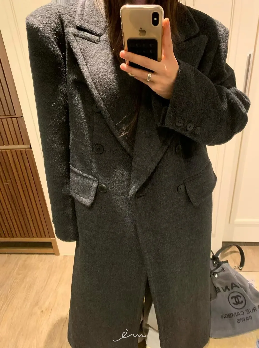 VK雙排釦內鋪棉挺版大衣(羊毛50%)