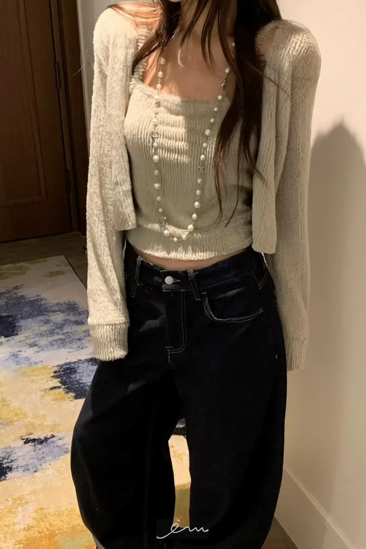 VK毛毛背心外罩兩件套