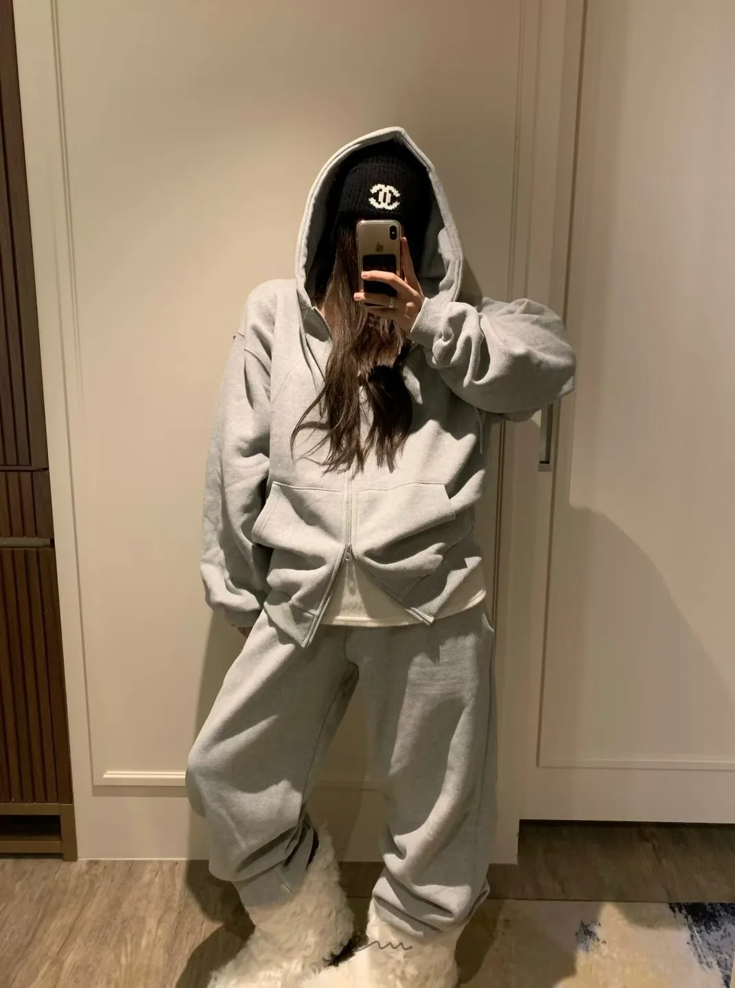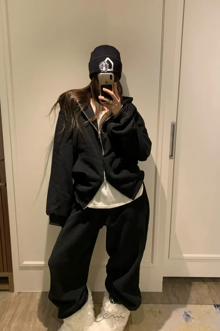 VK刷毛雙拉鍊連帽抽繩外套