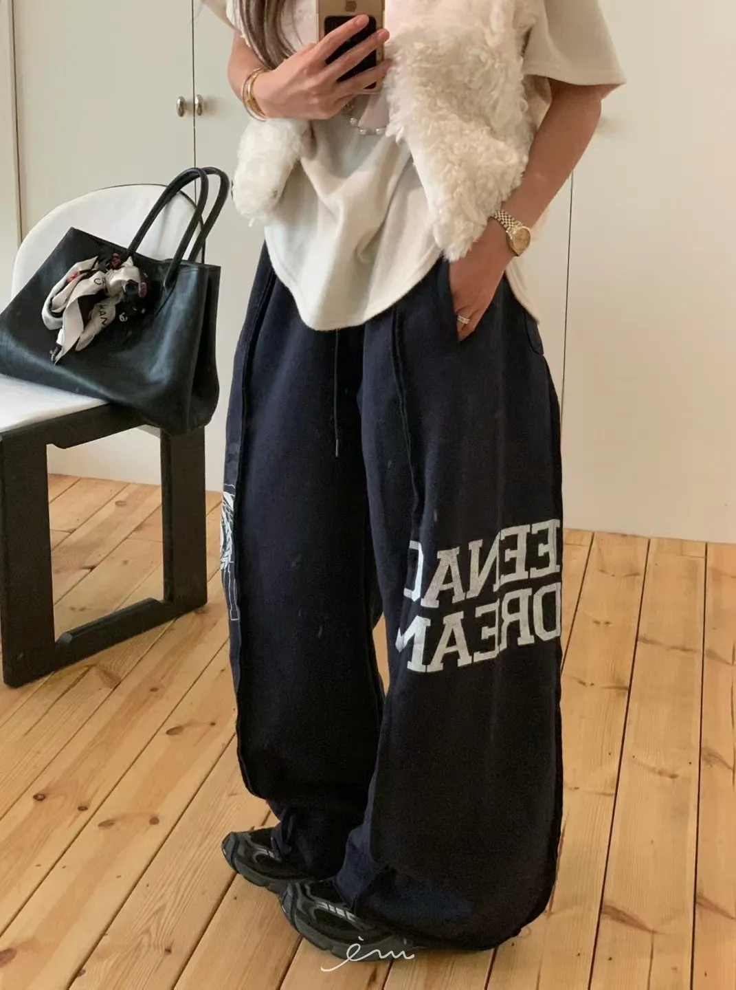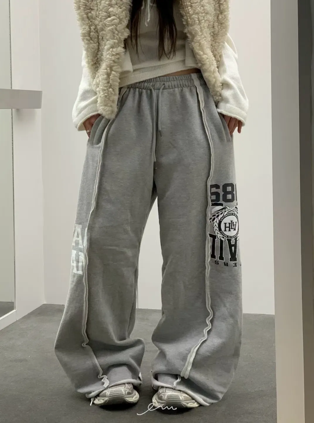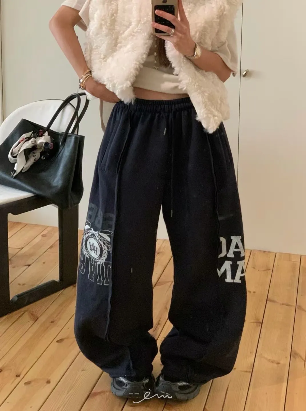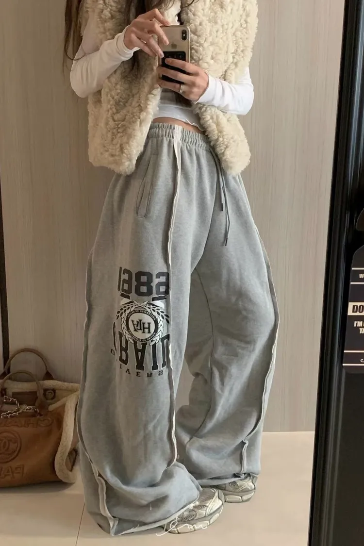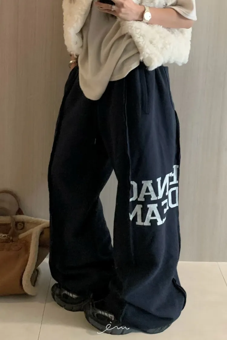 VK刷毛英字印花立體寬褲