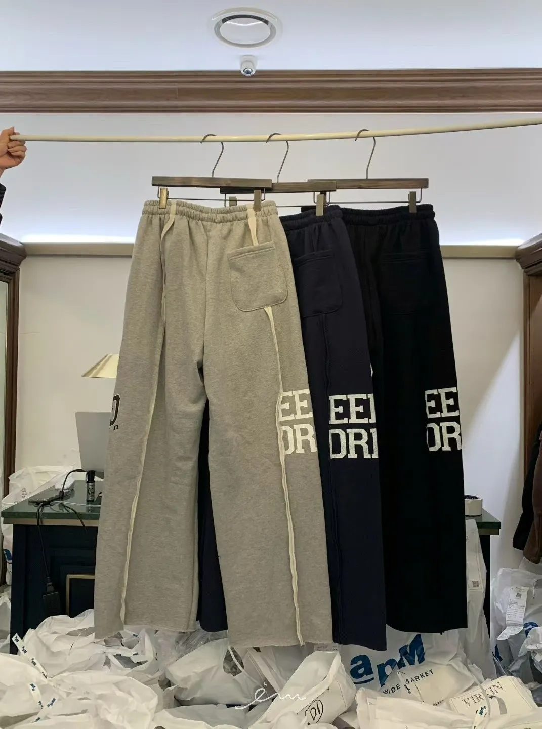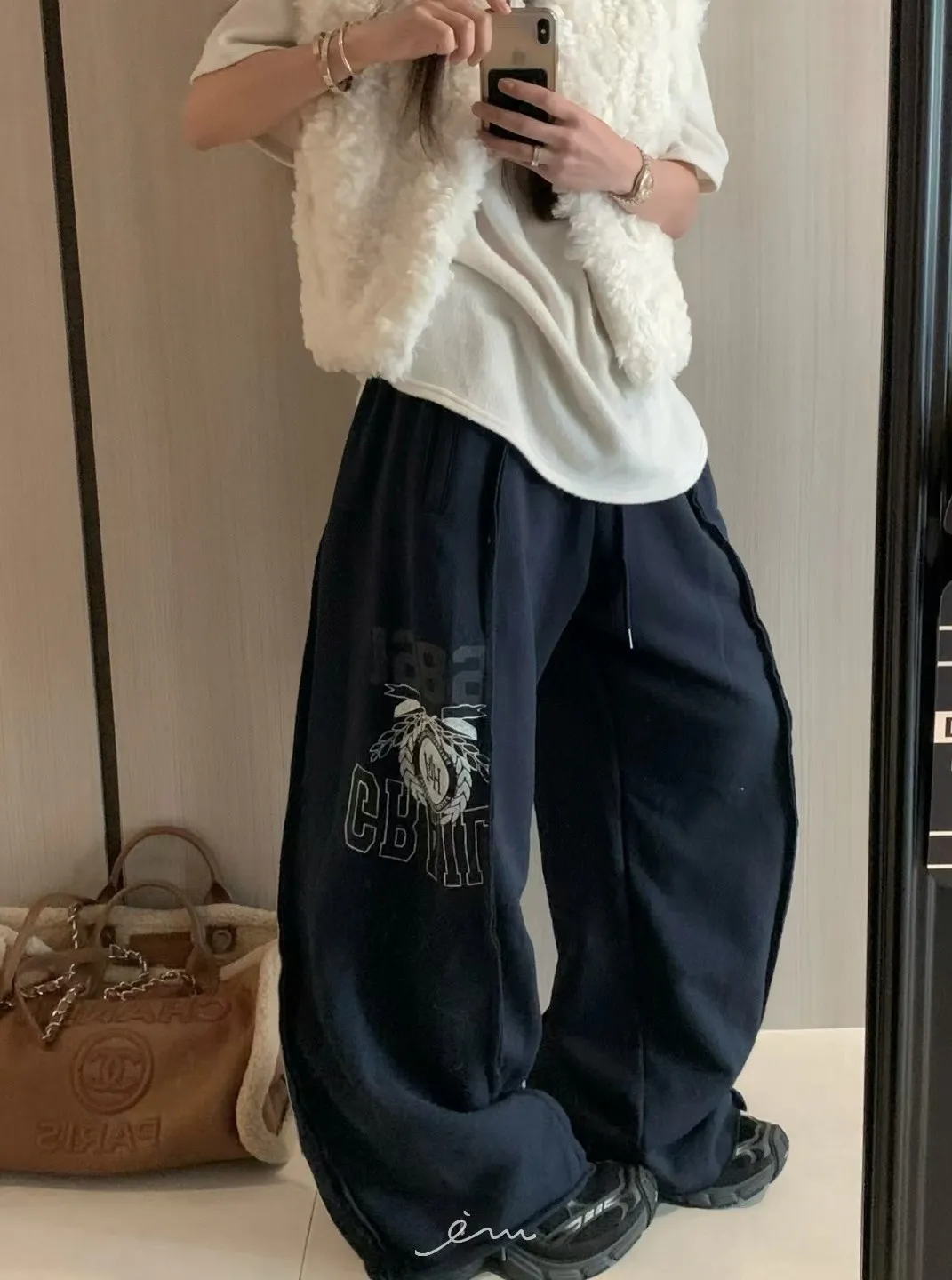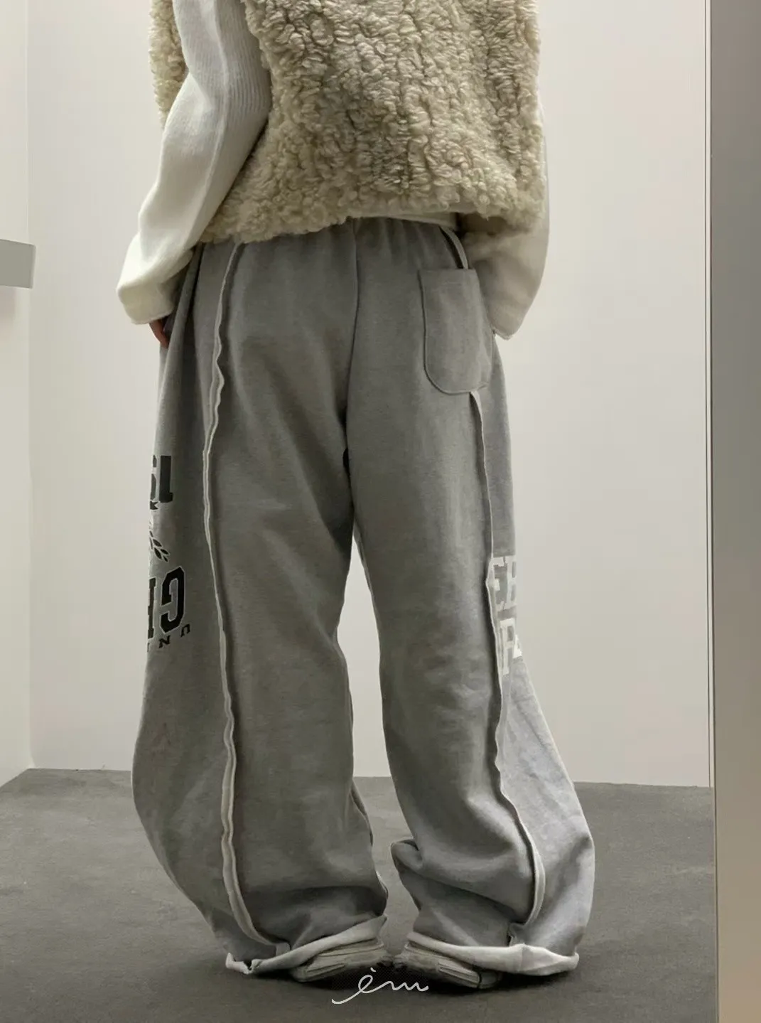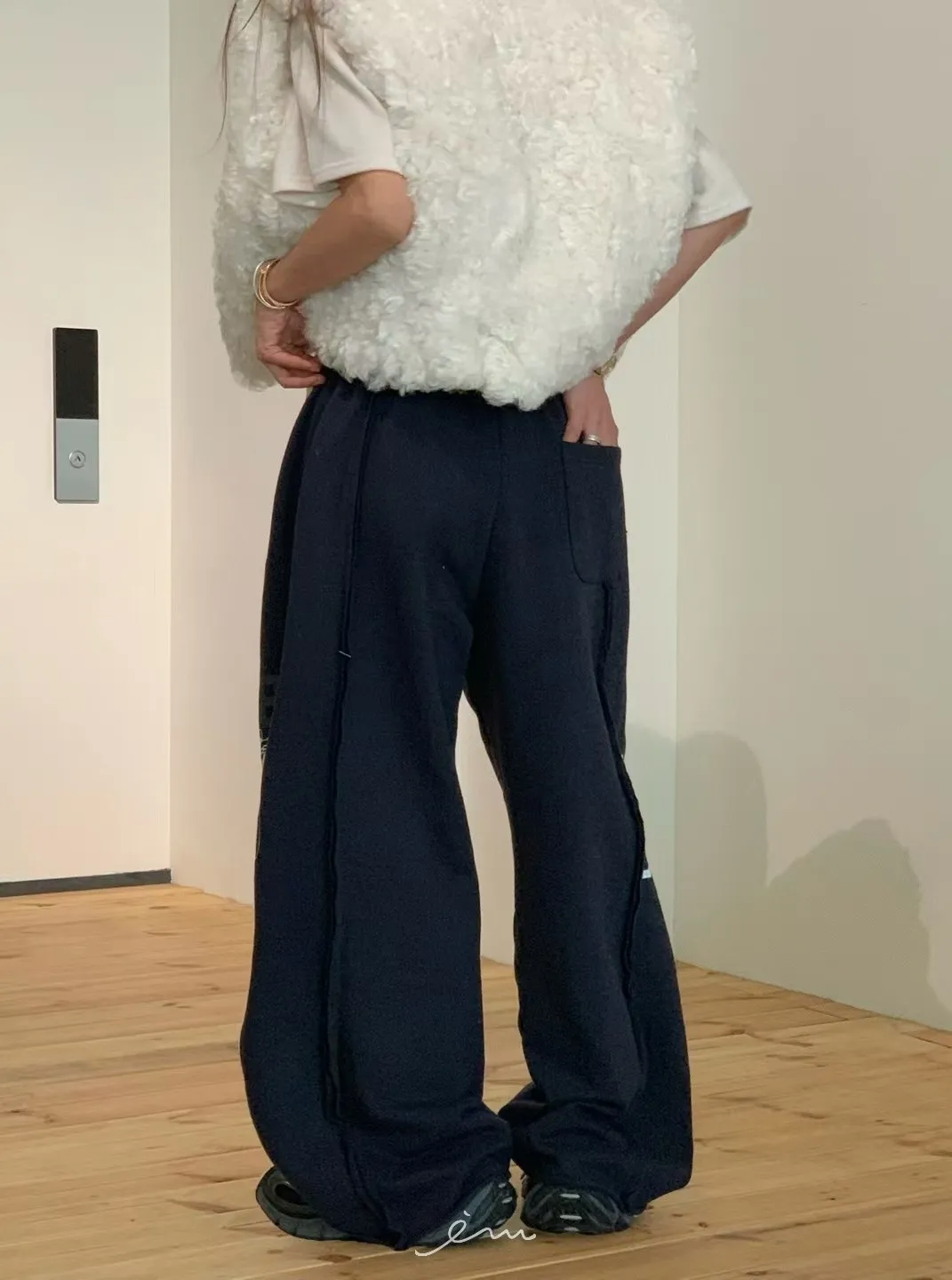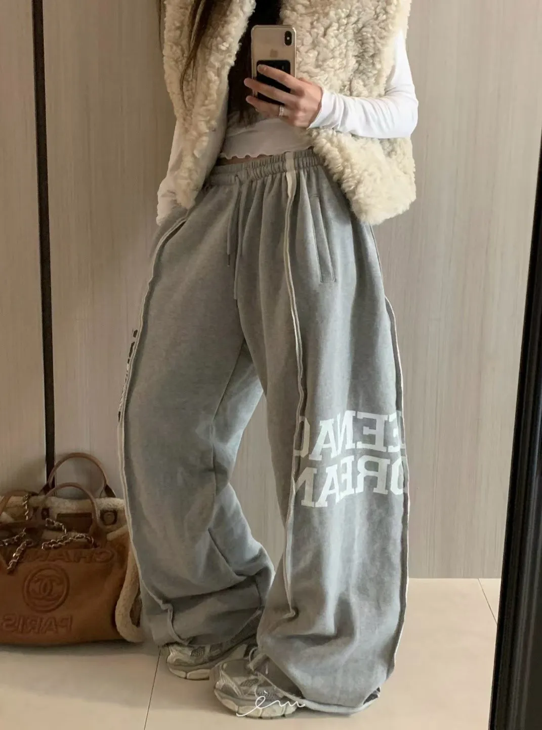 VK刷毛英字印花立體寬褲