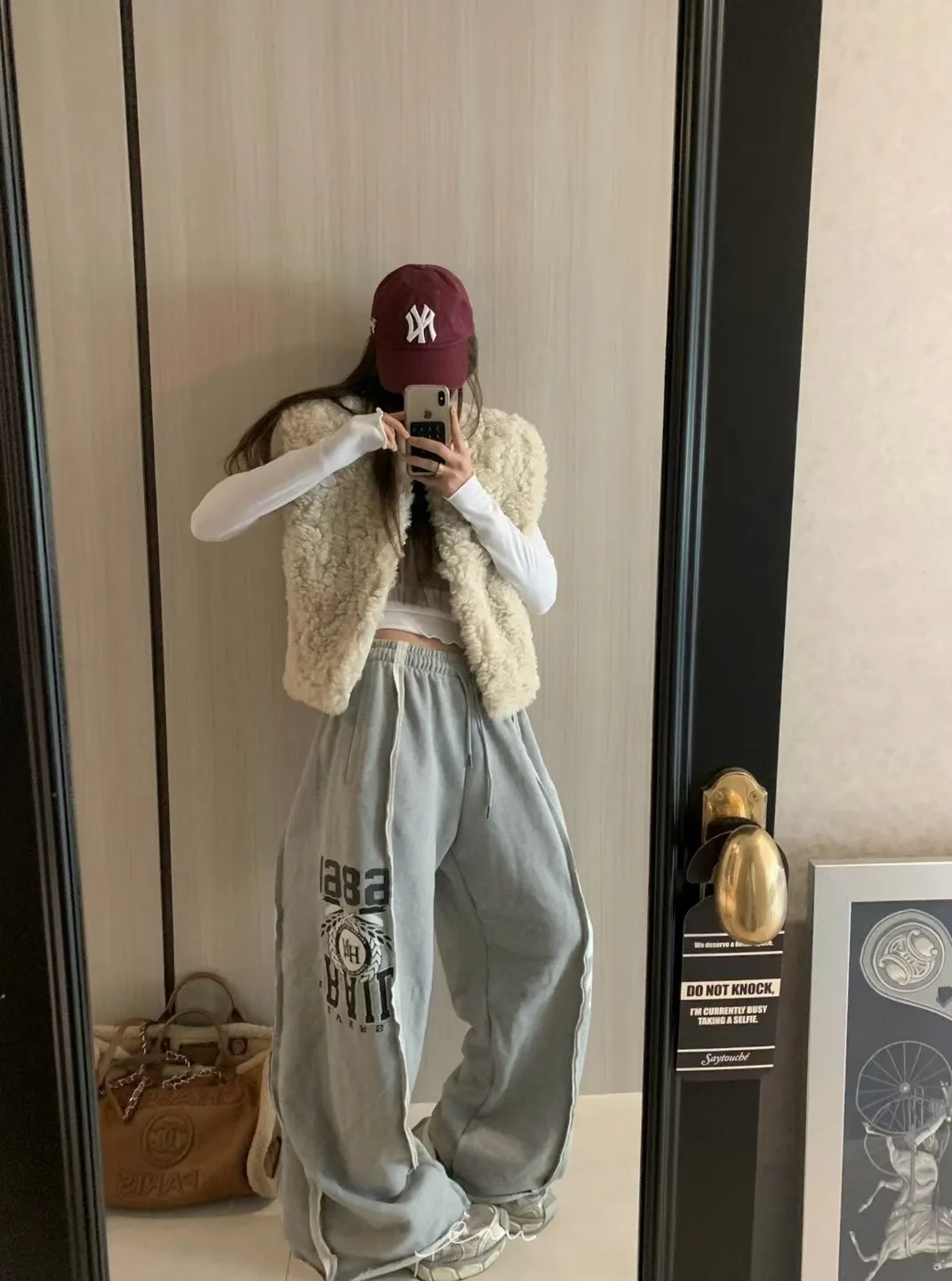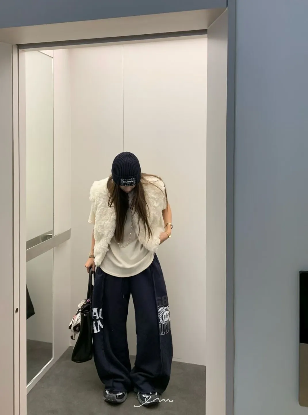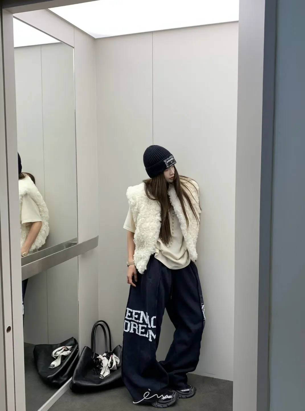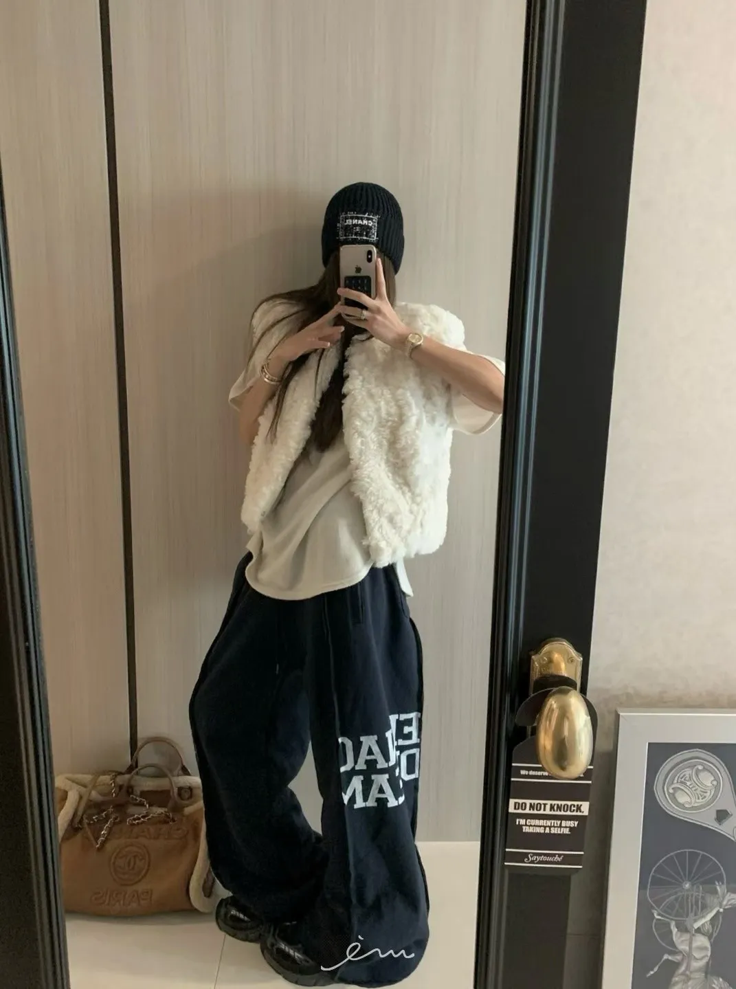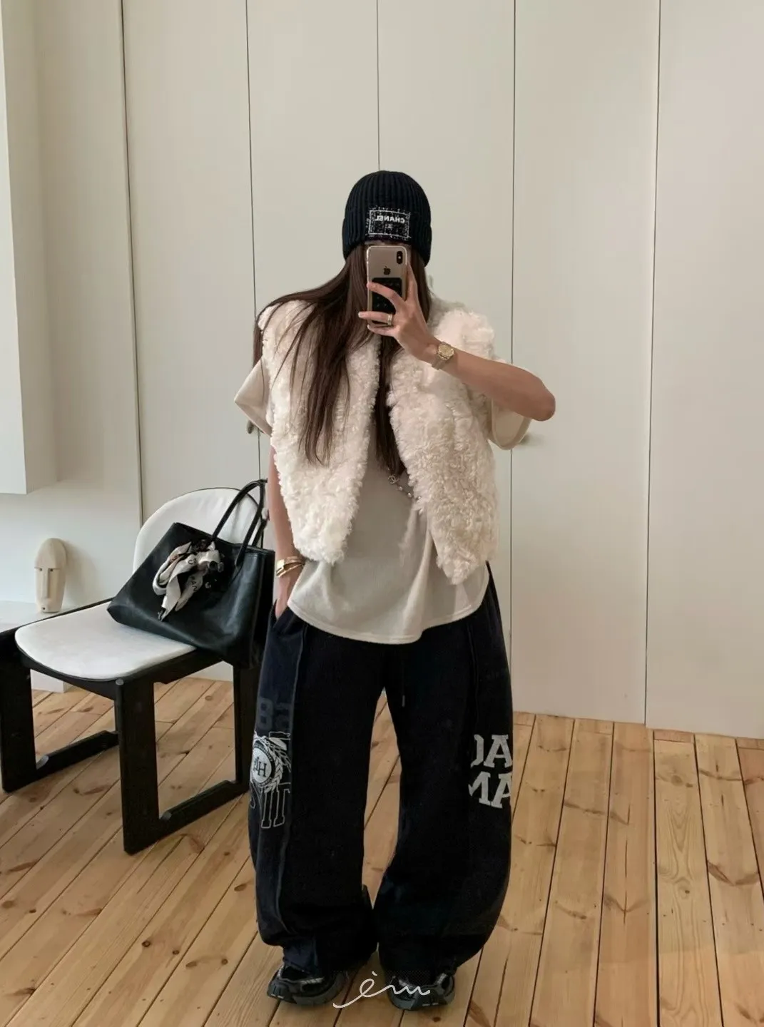 VK刷毛英字印花立體寬褲