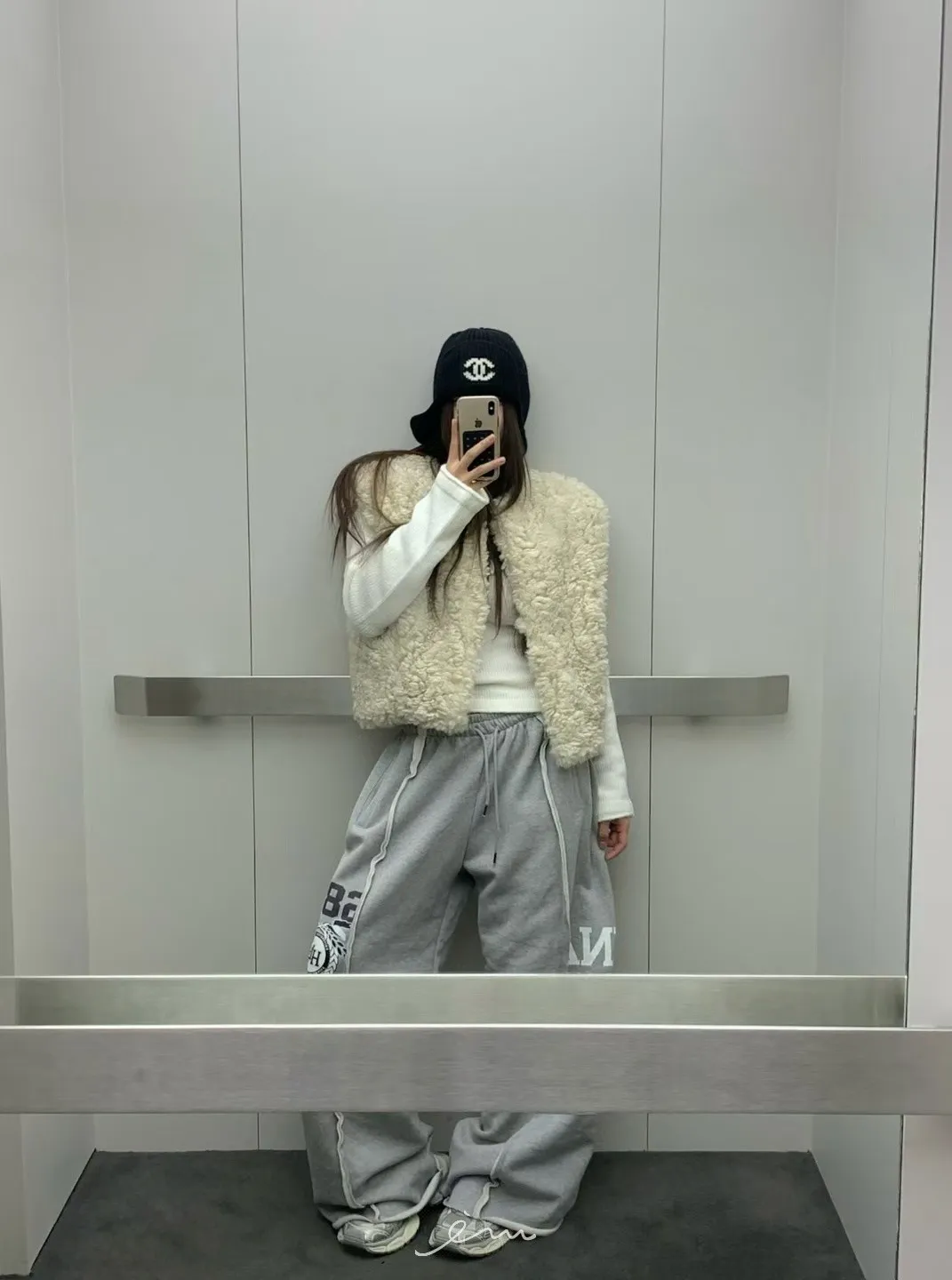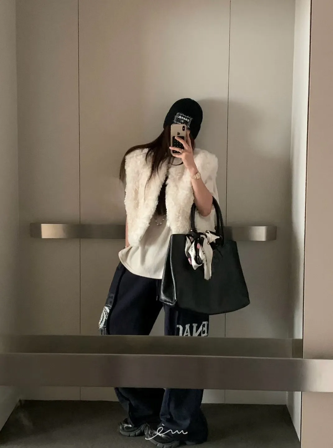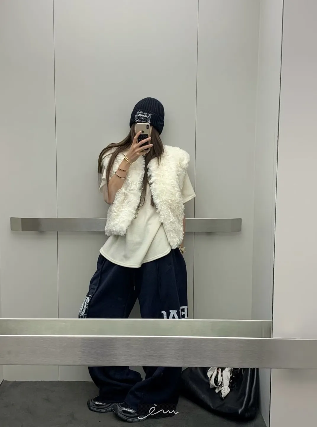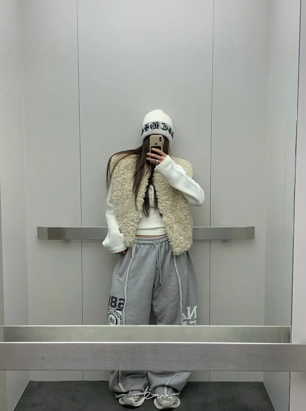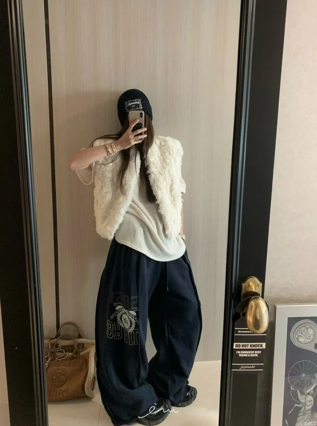 VK刷毛英字印花立體寬褲