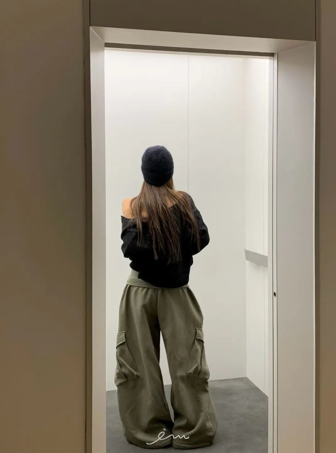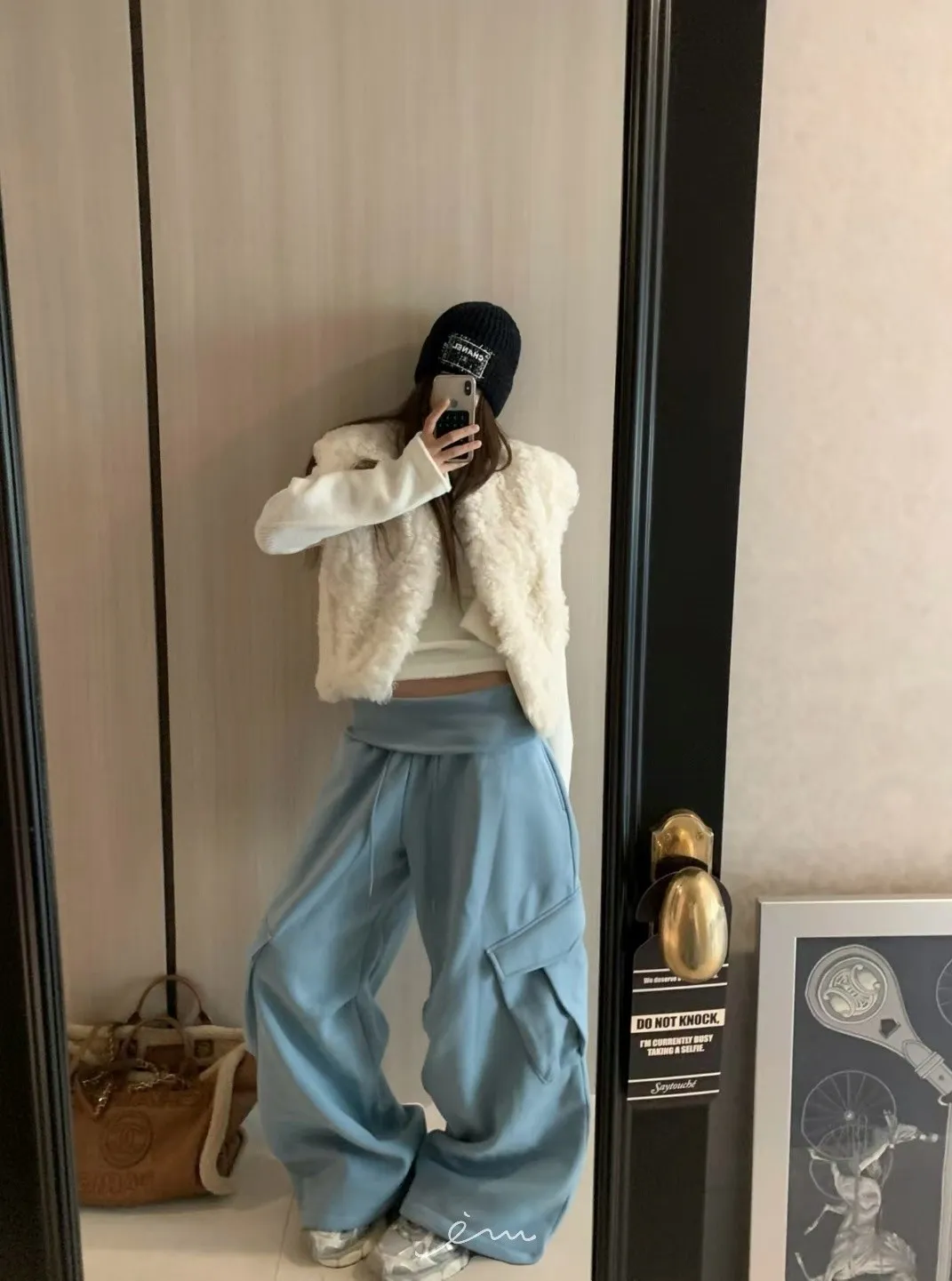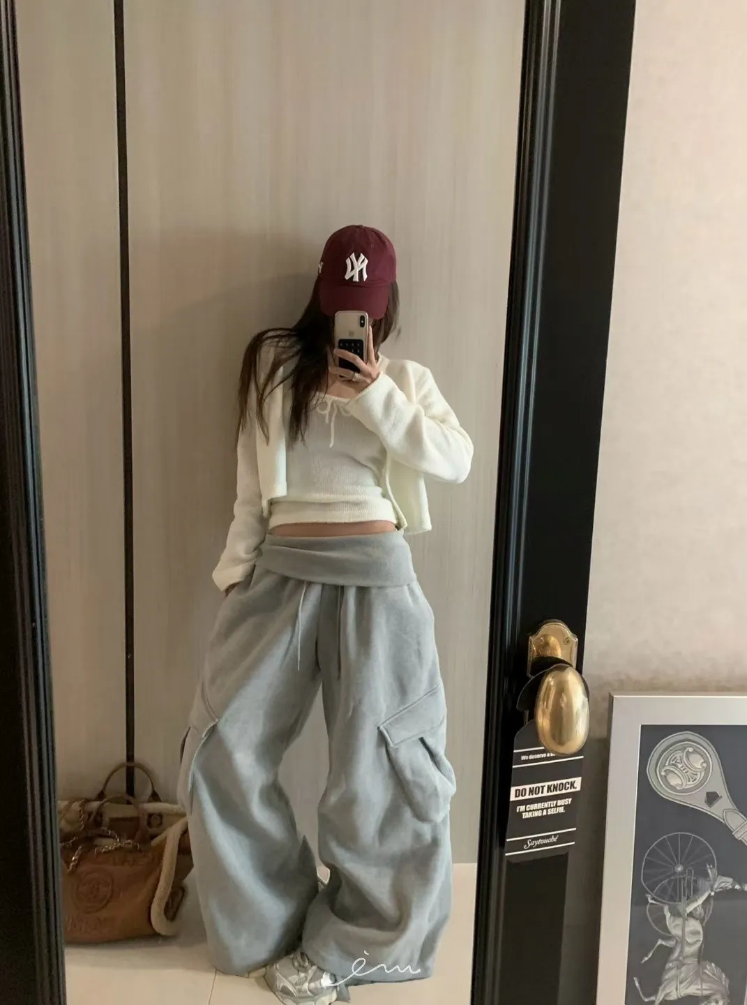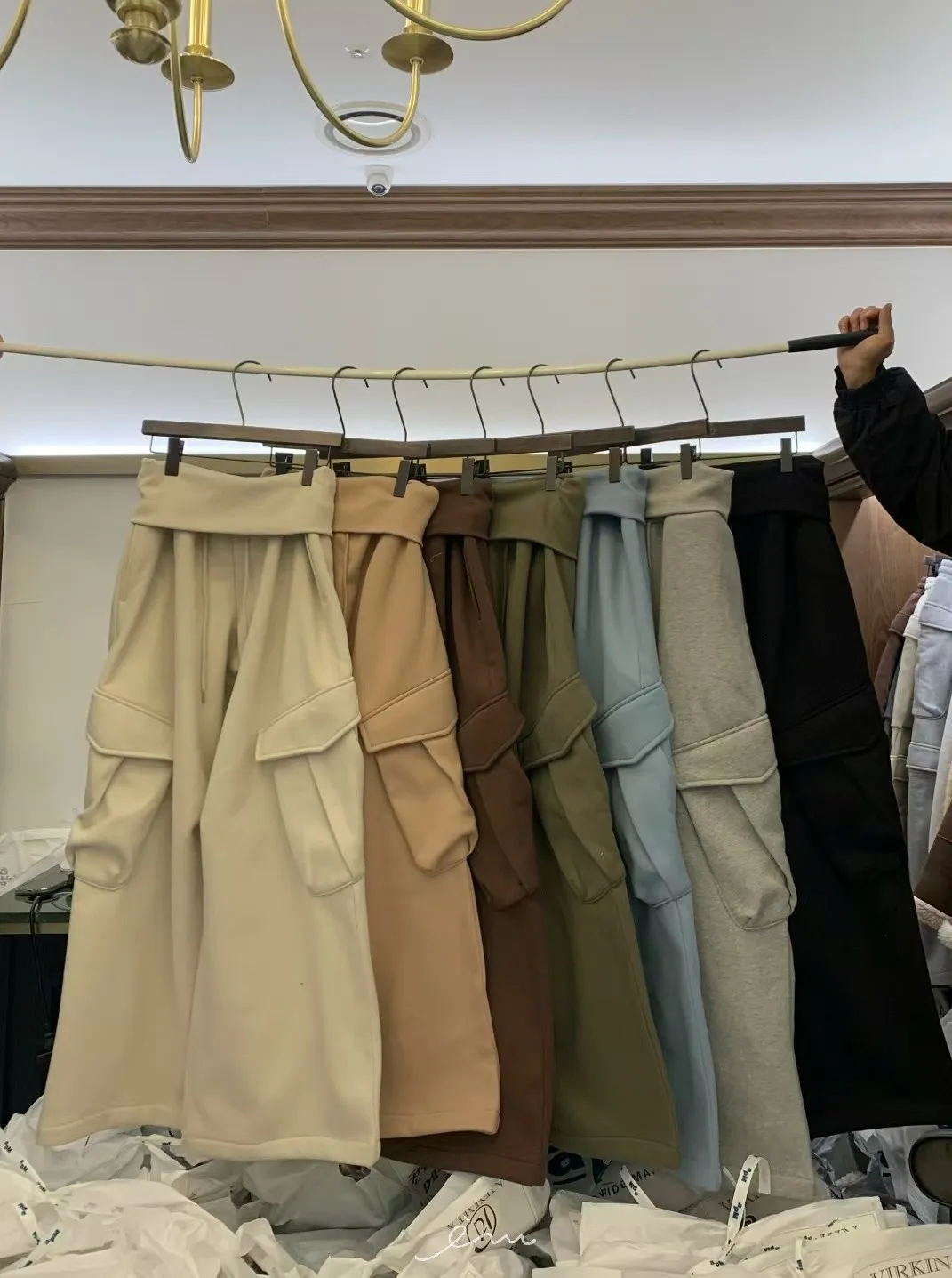 VK褲頭反折立體口袋刷毛寬褲