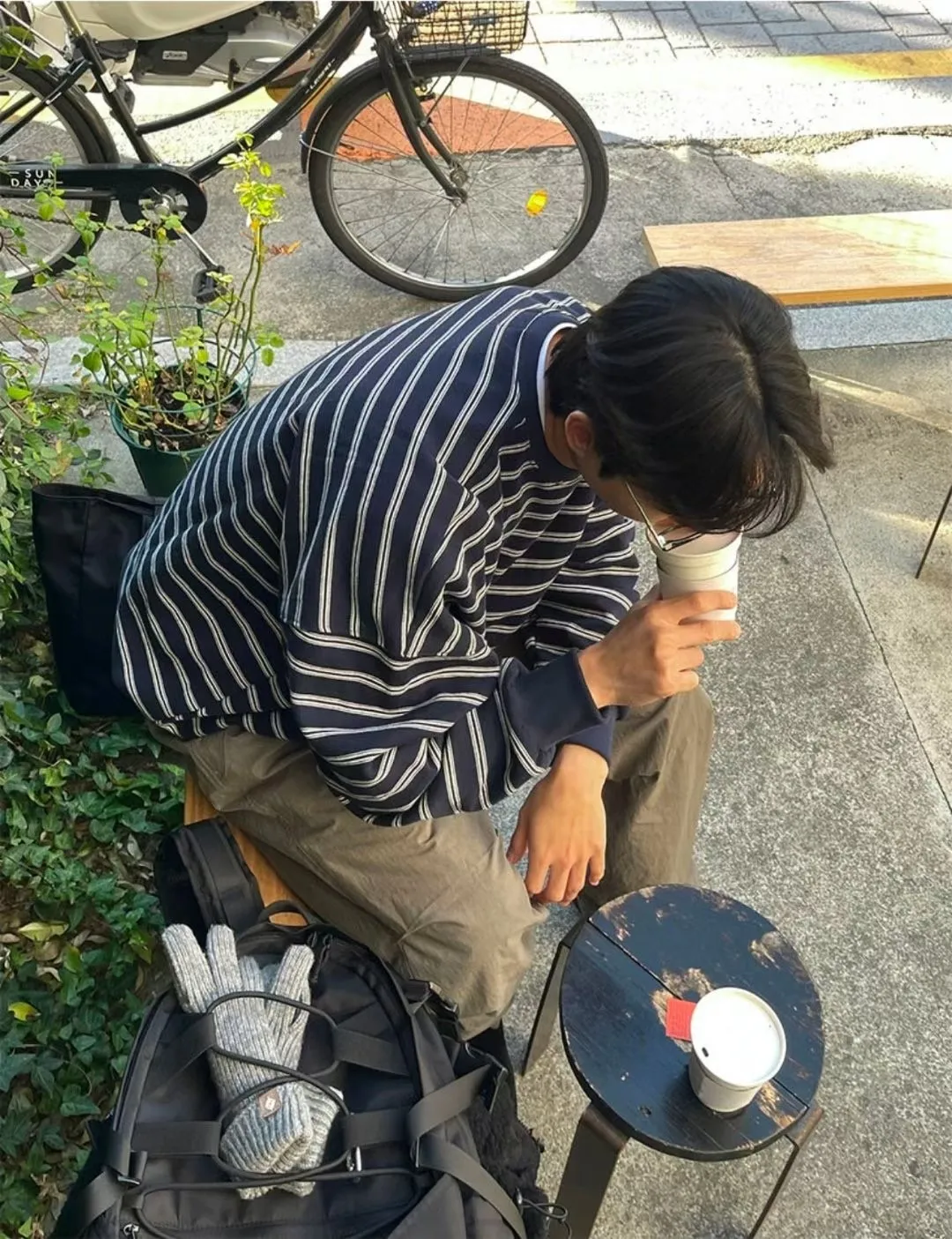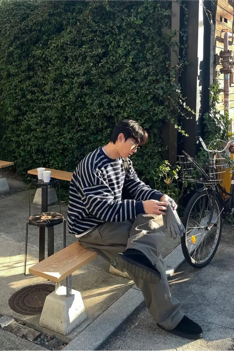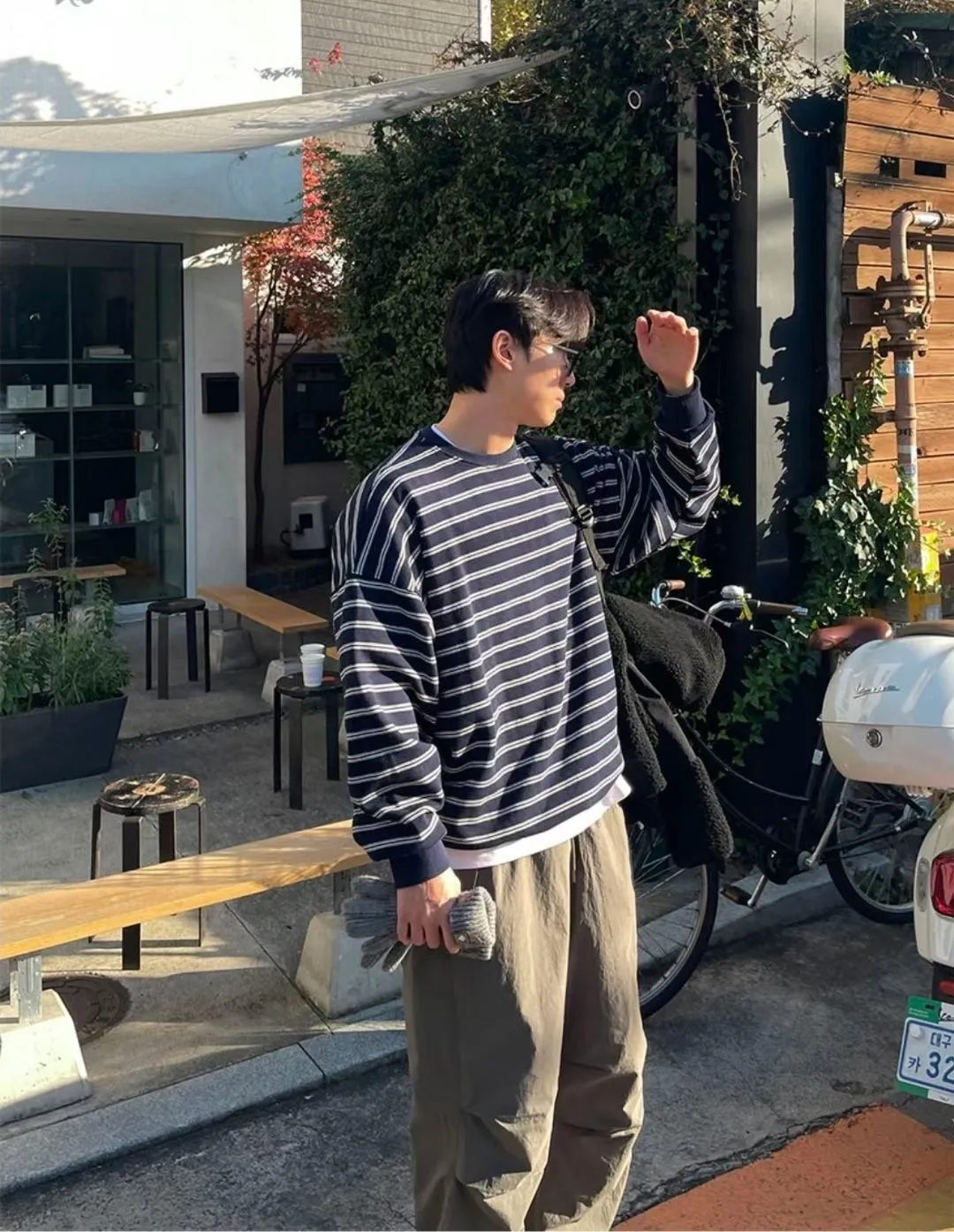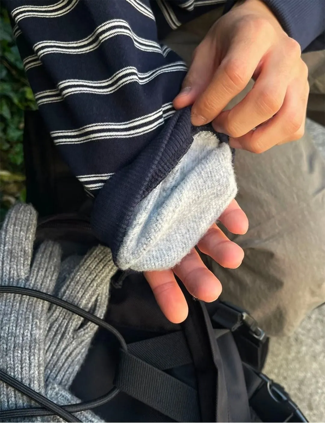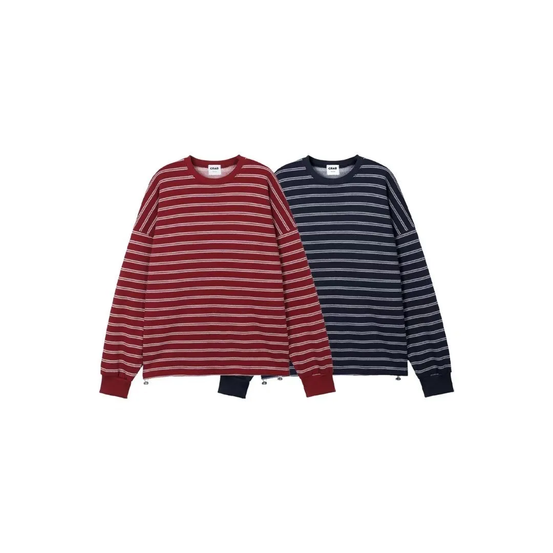條紋抽繩刷毛上衣