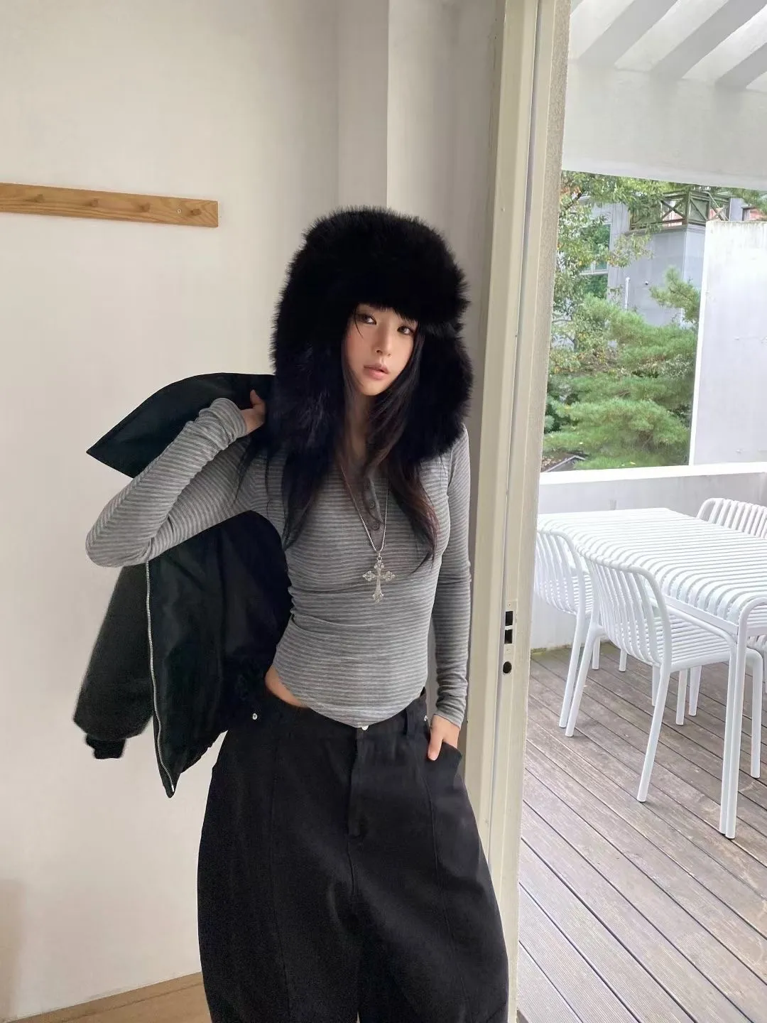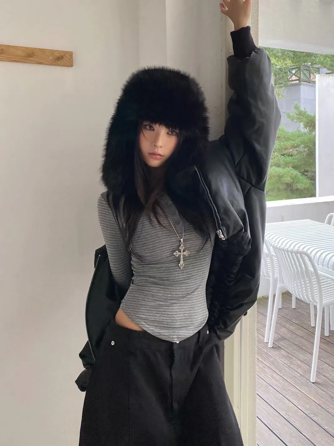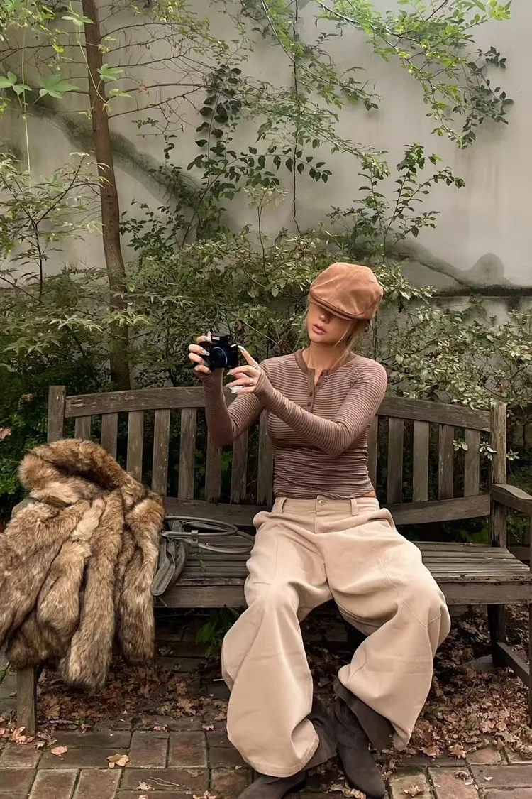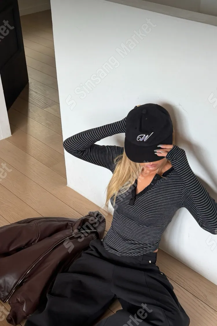 橫條上排釦修身上衣