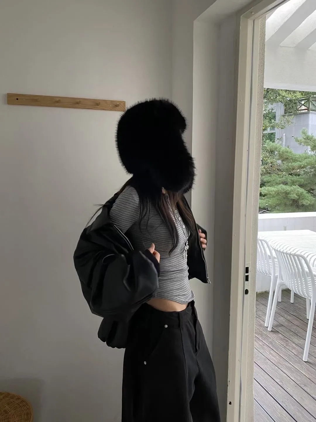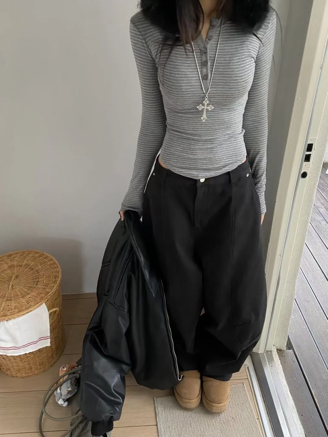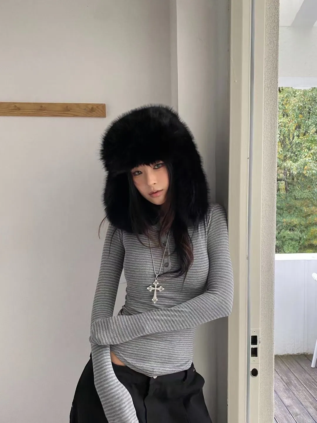 橫條上排釦修身上衣