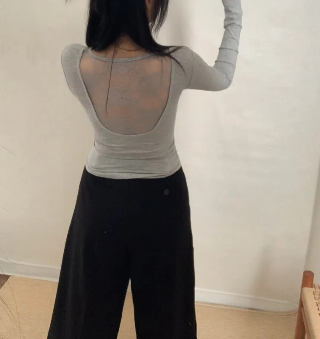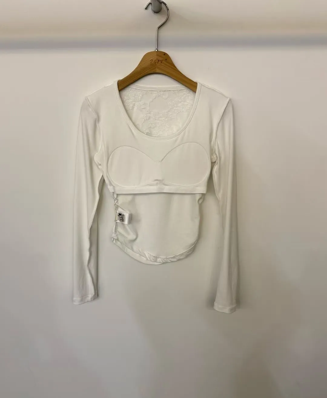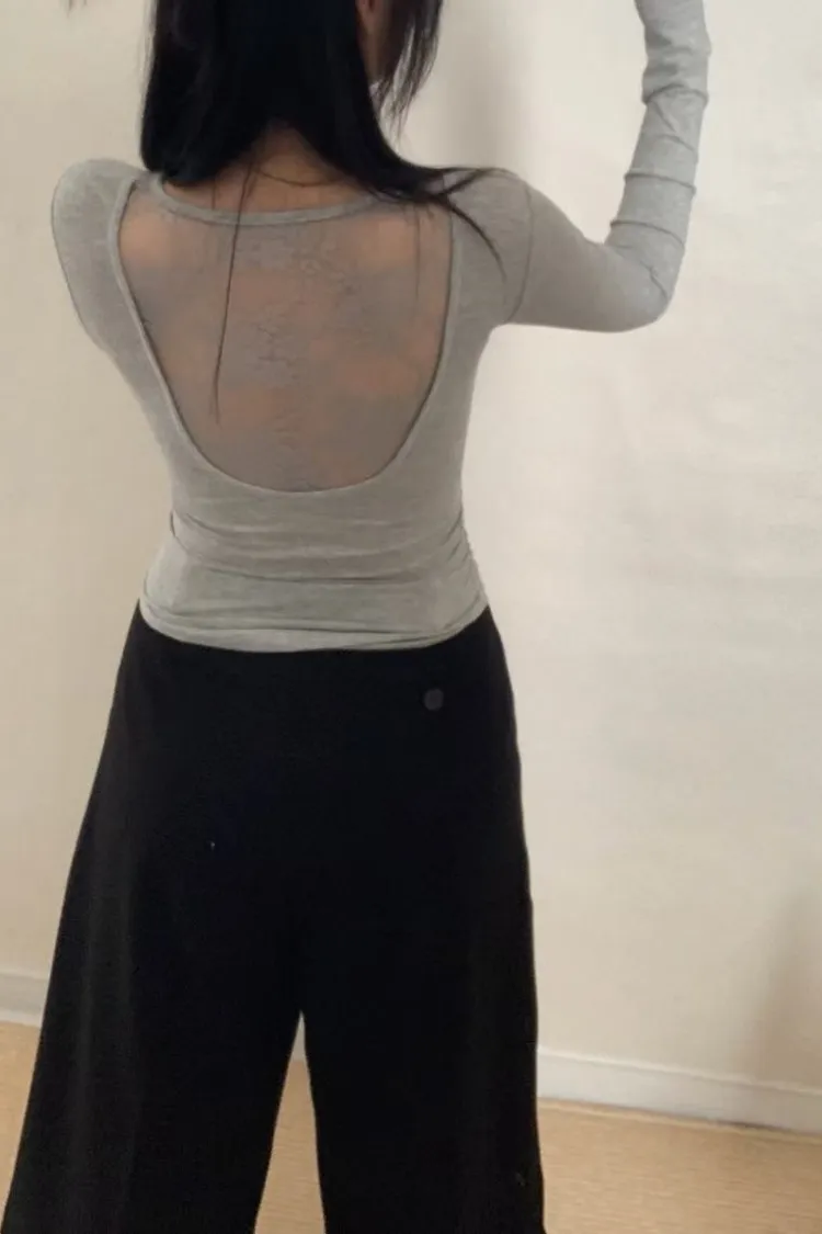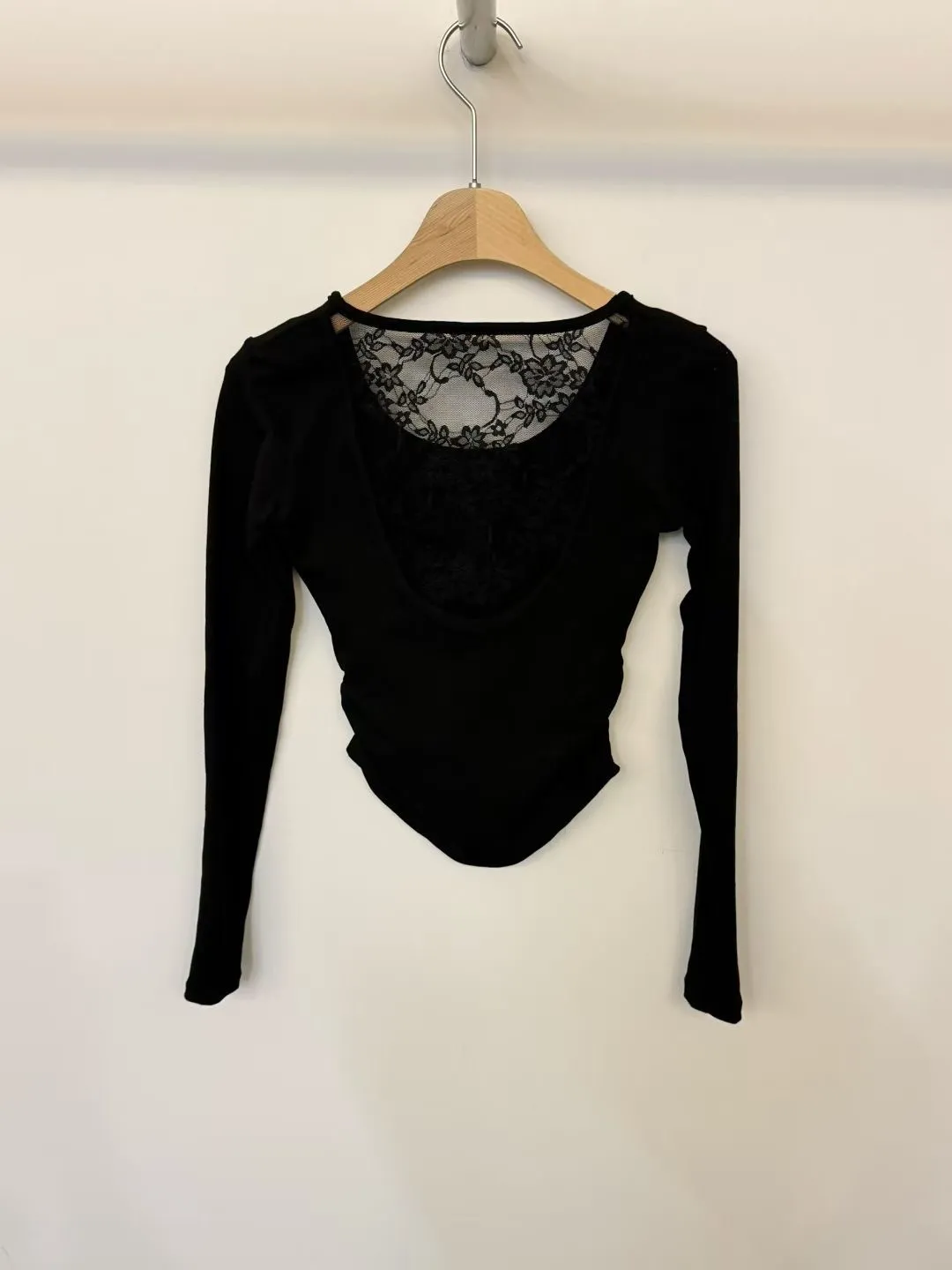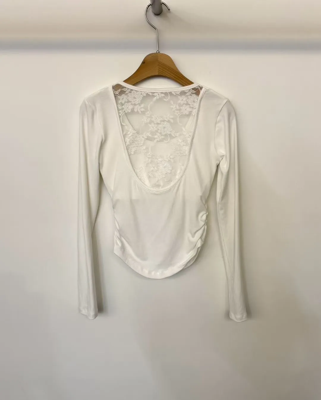 蕾絲挖背側抓皺胸墊上衣