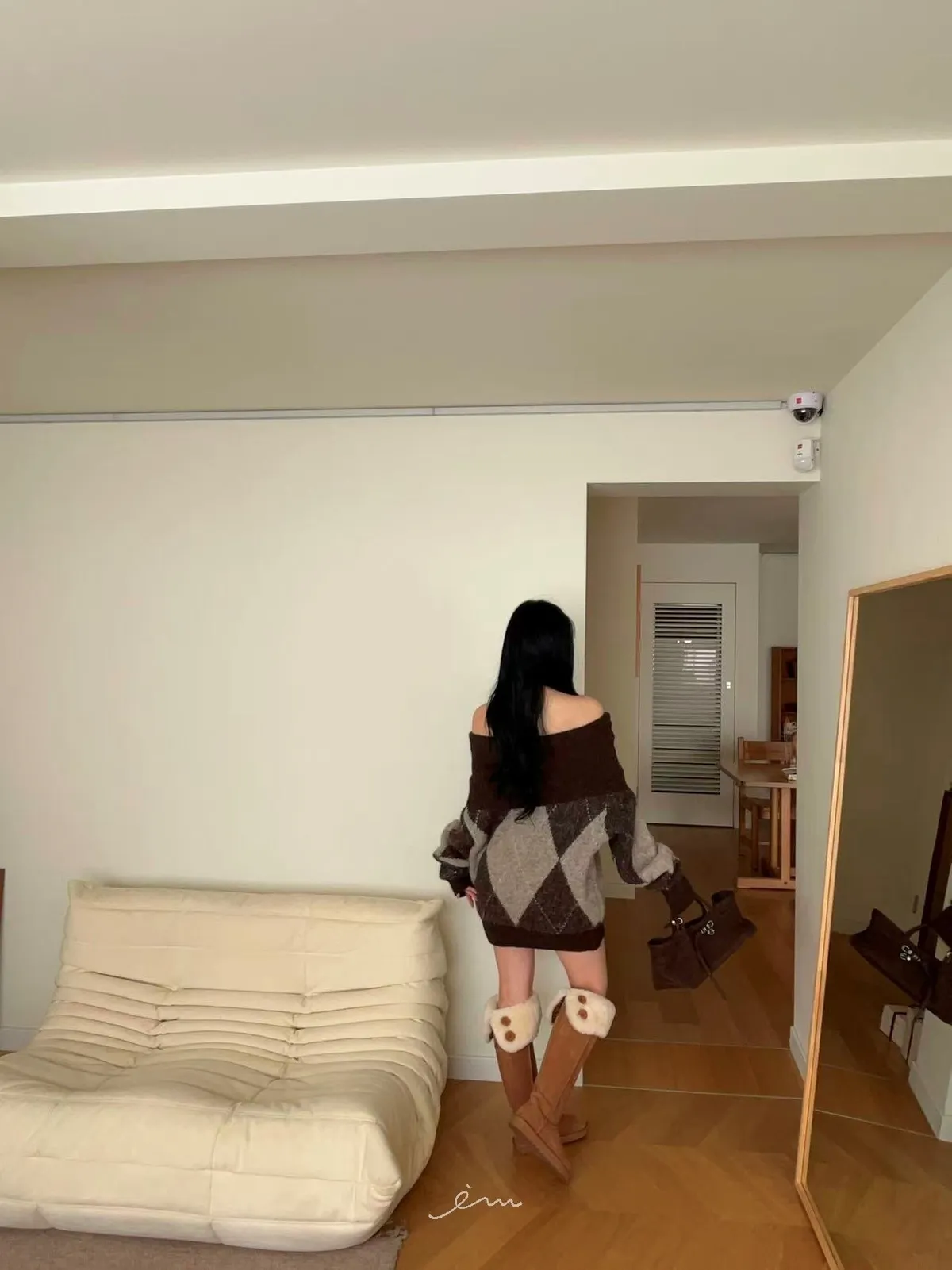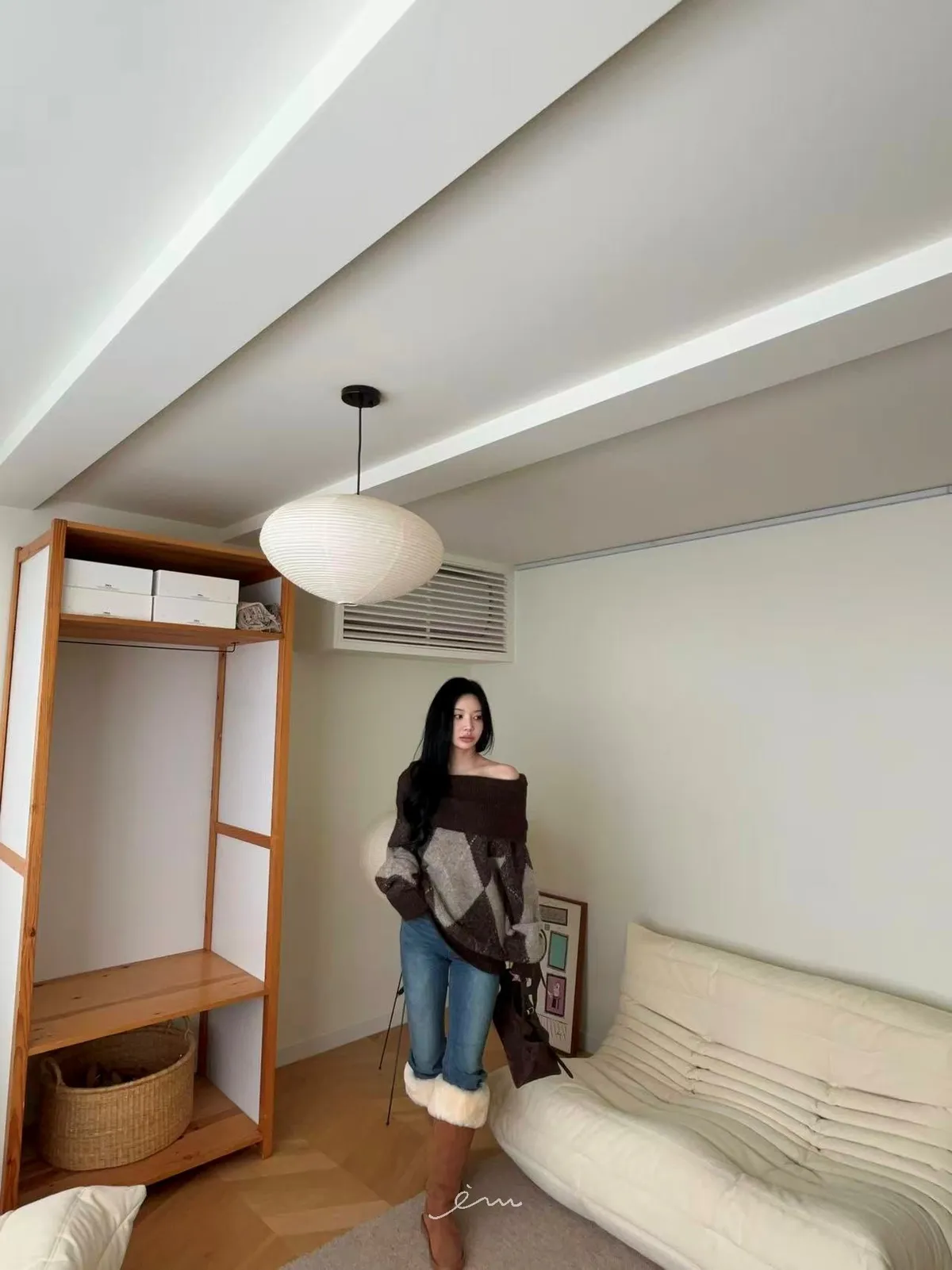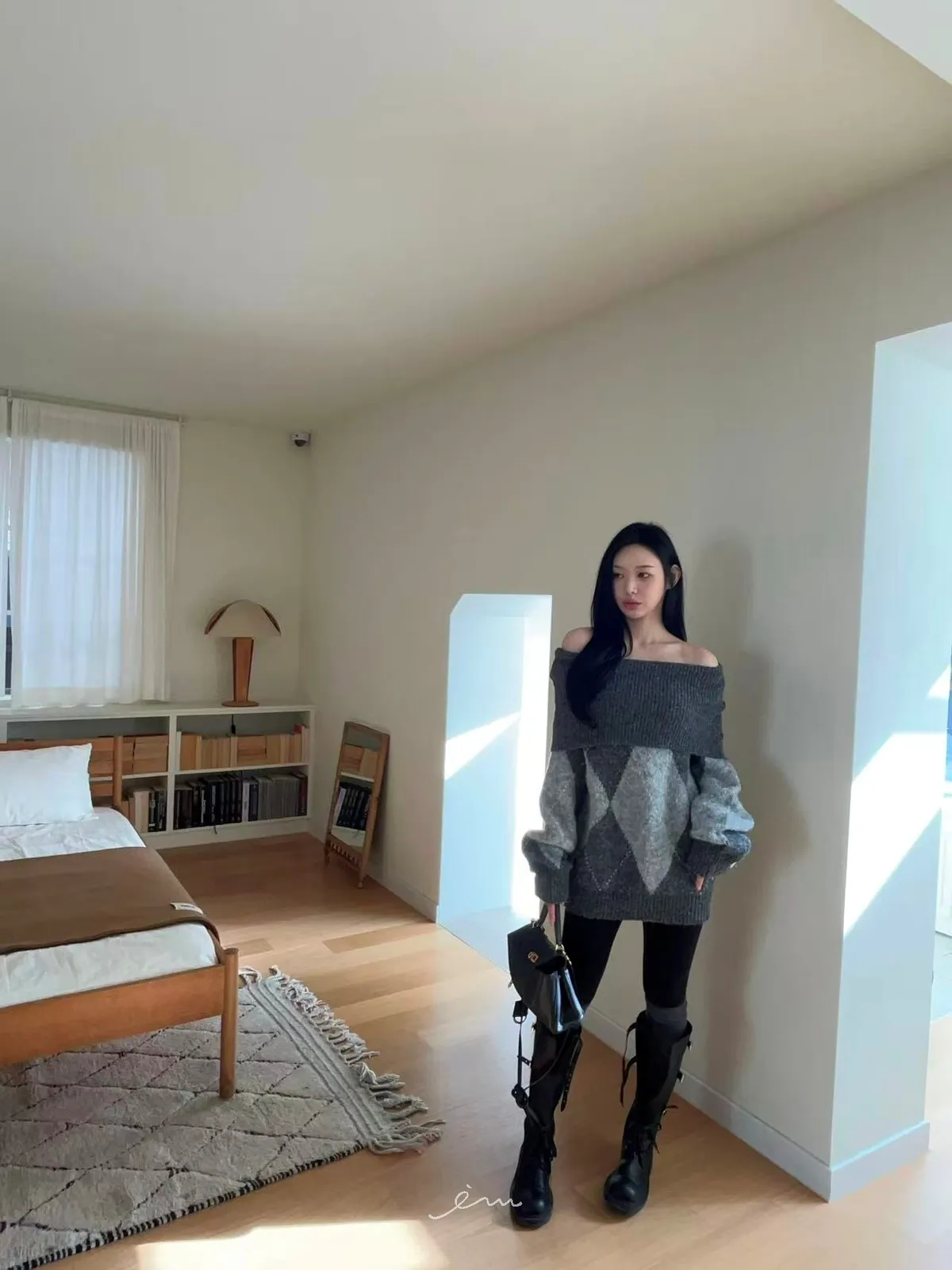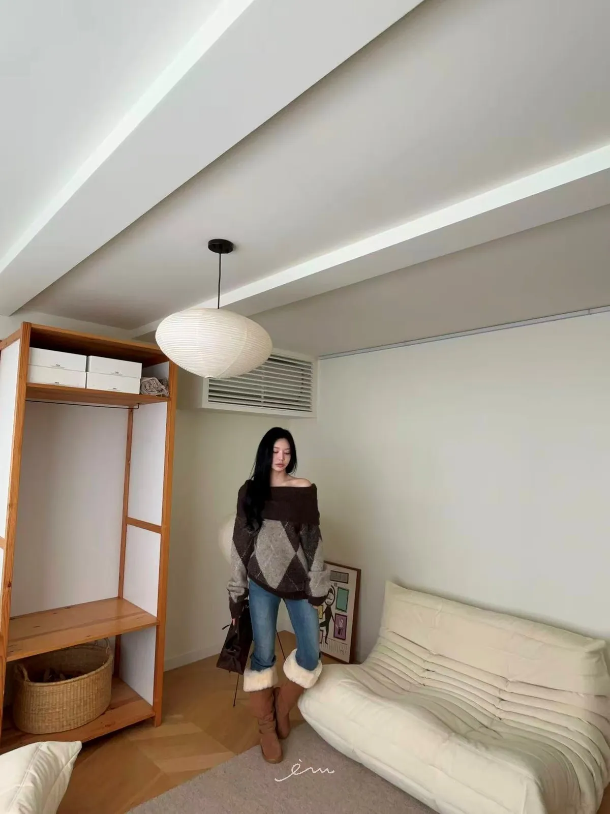 BAI格菱紋羊毛針織一字領