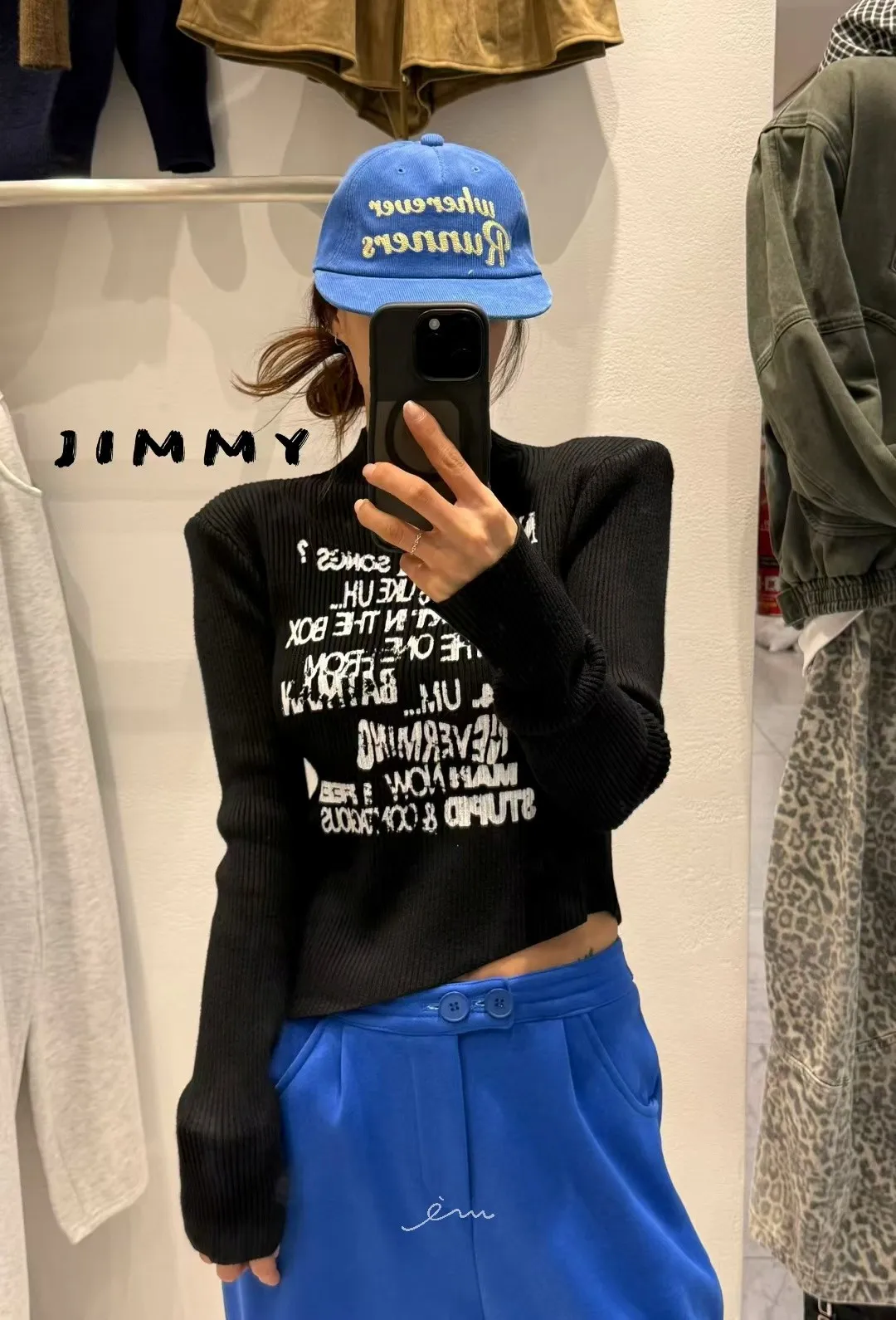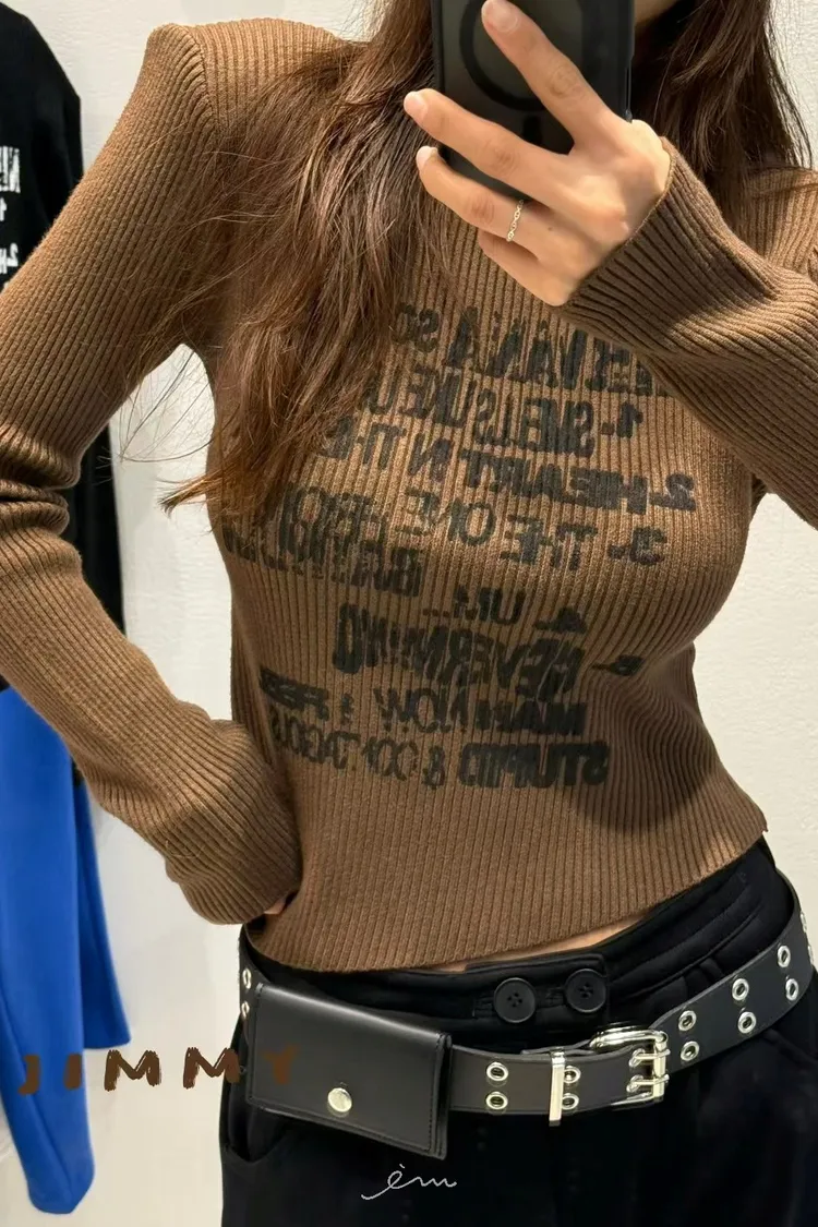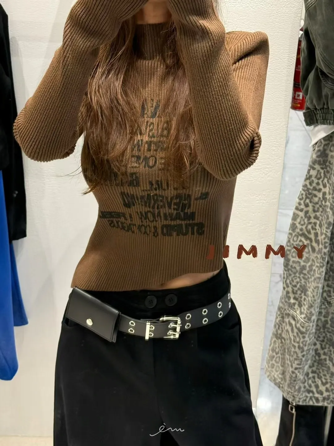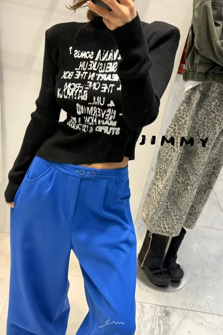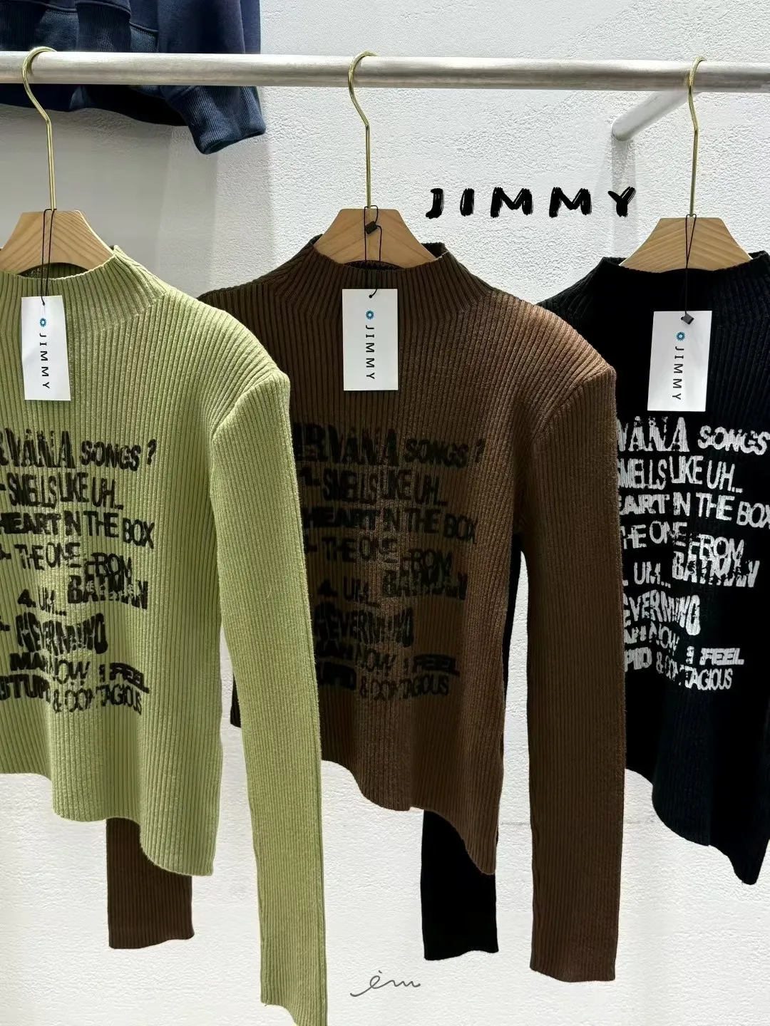 Jimmy英字直條壓紋高領上衣