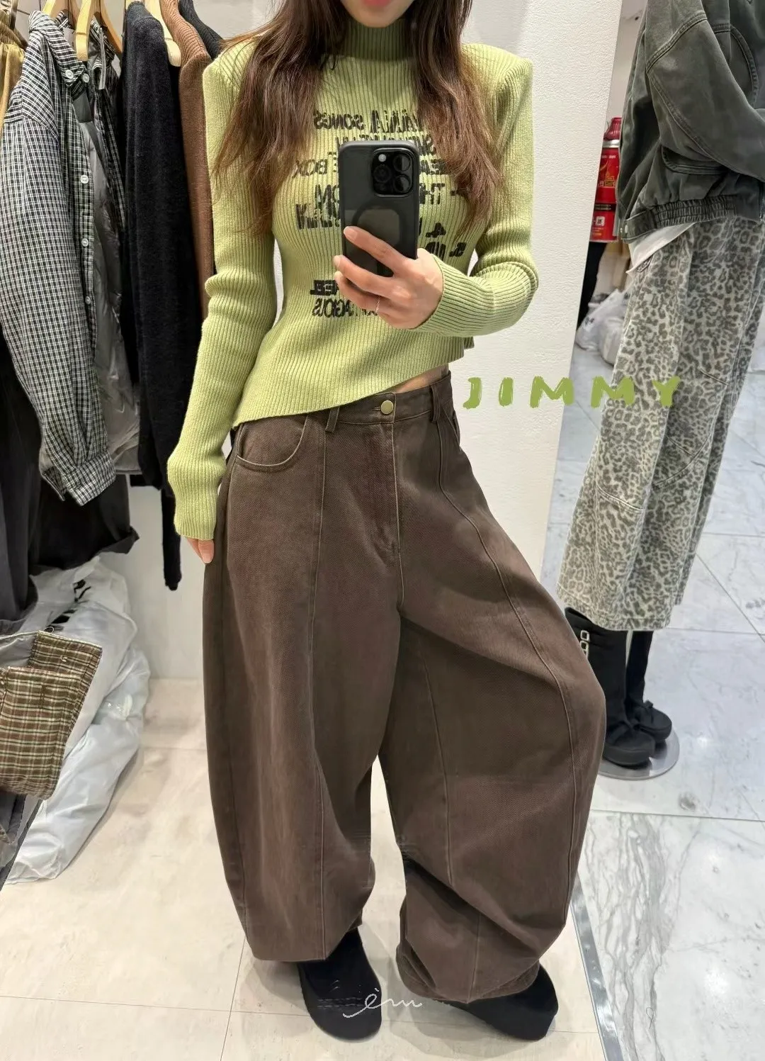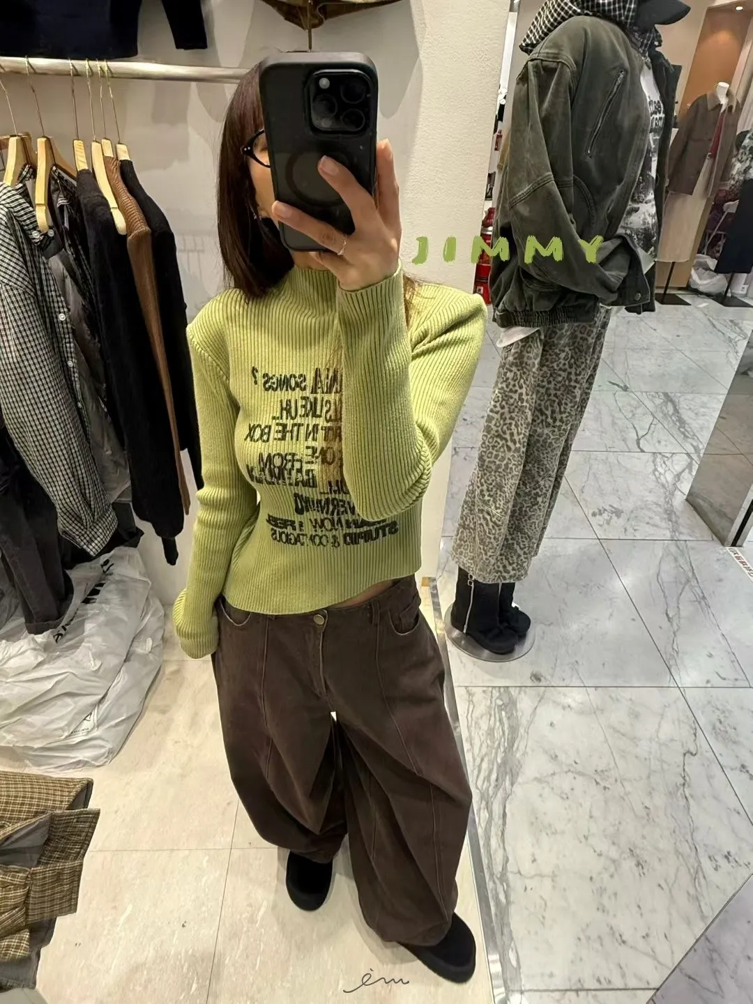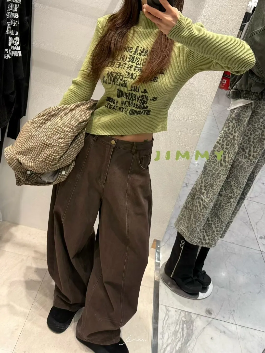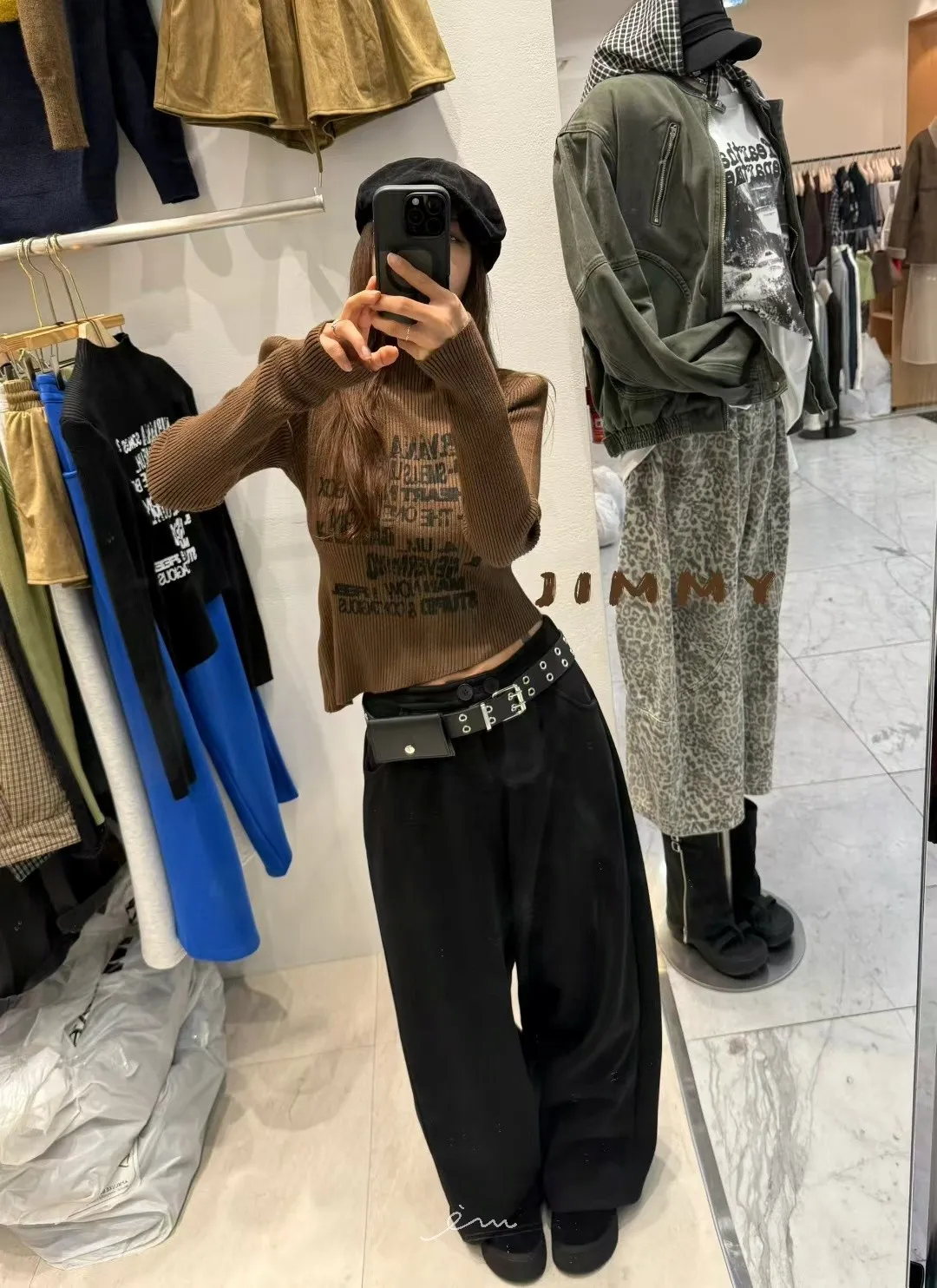 Jimmy英字直條壓紋高領上衣