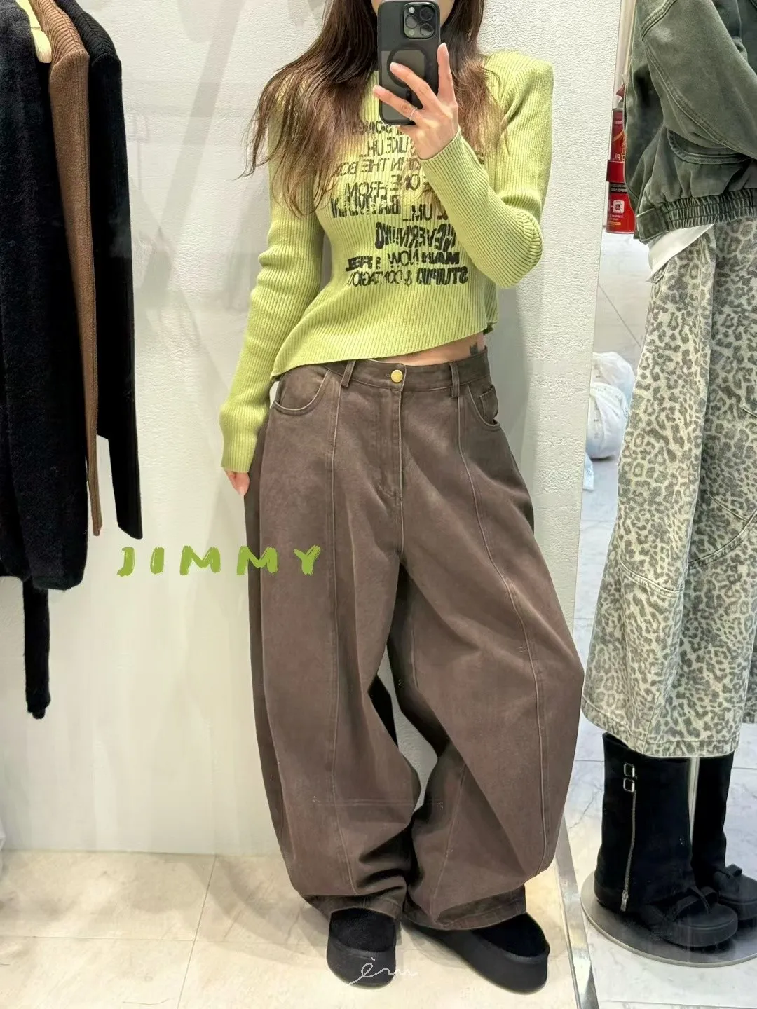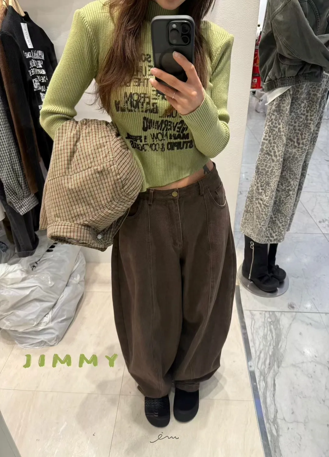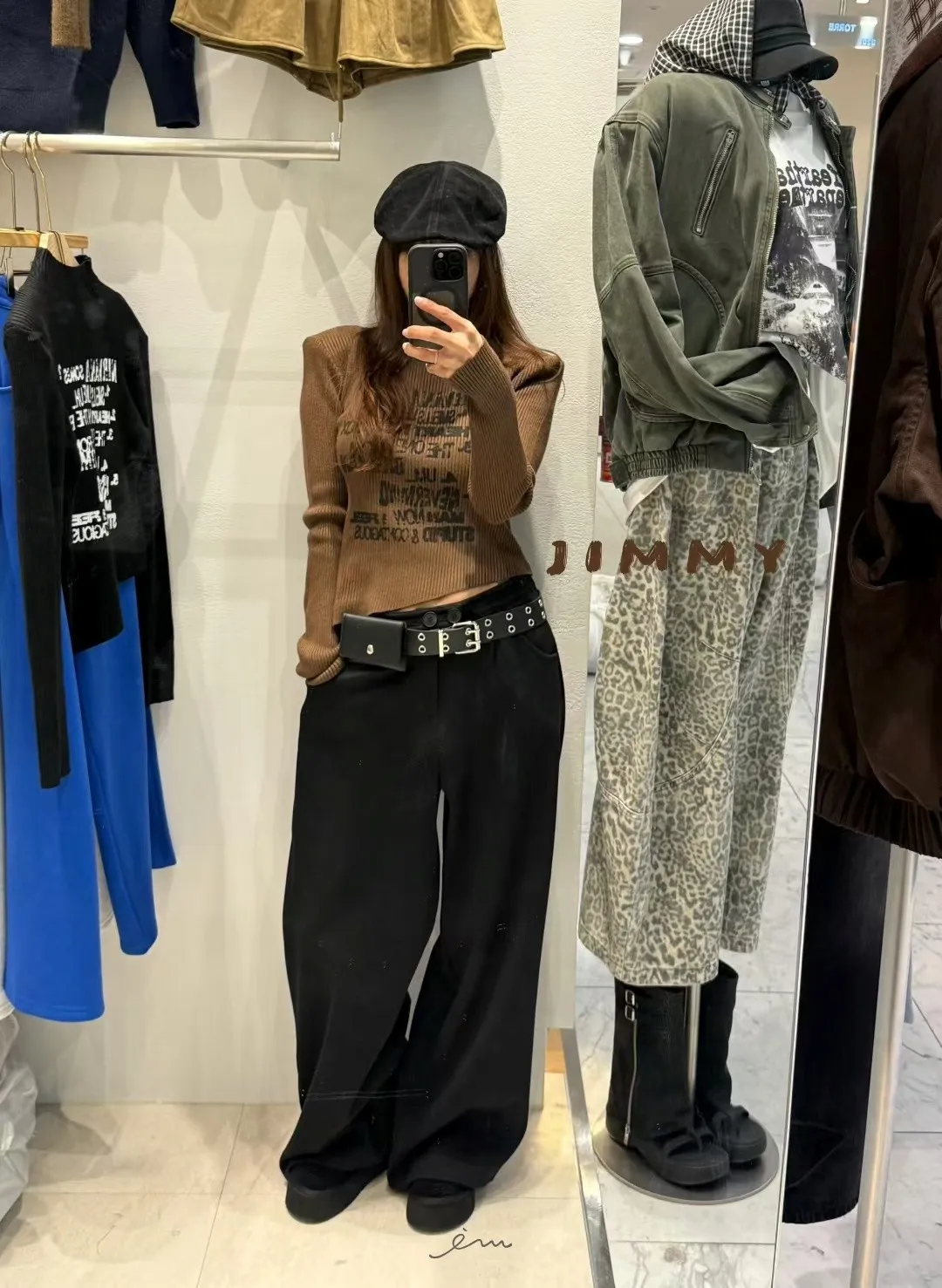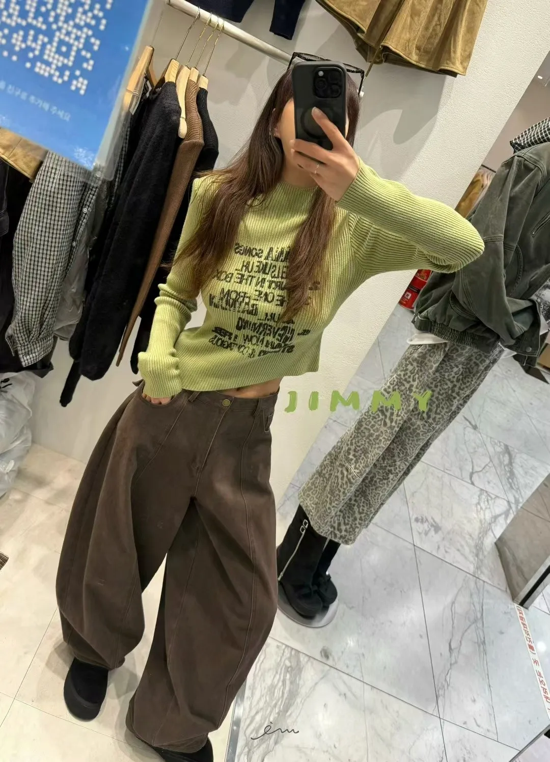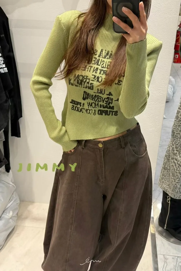 Jimmy英字直條壓紋高領上衣
