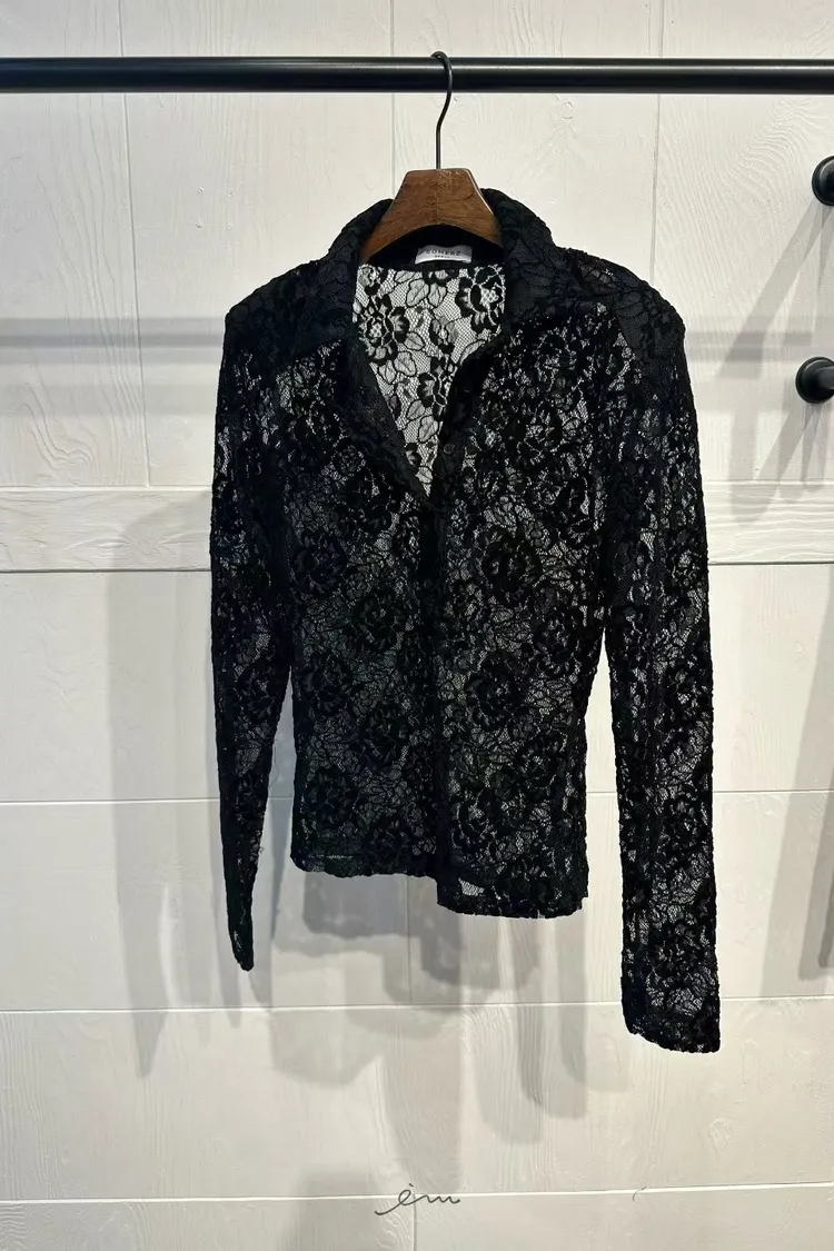 SOM蕾絲感雕花排釦上衣