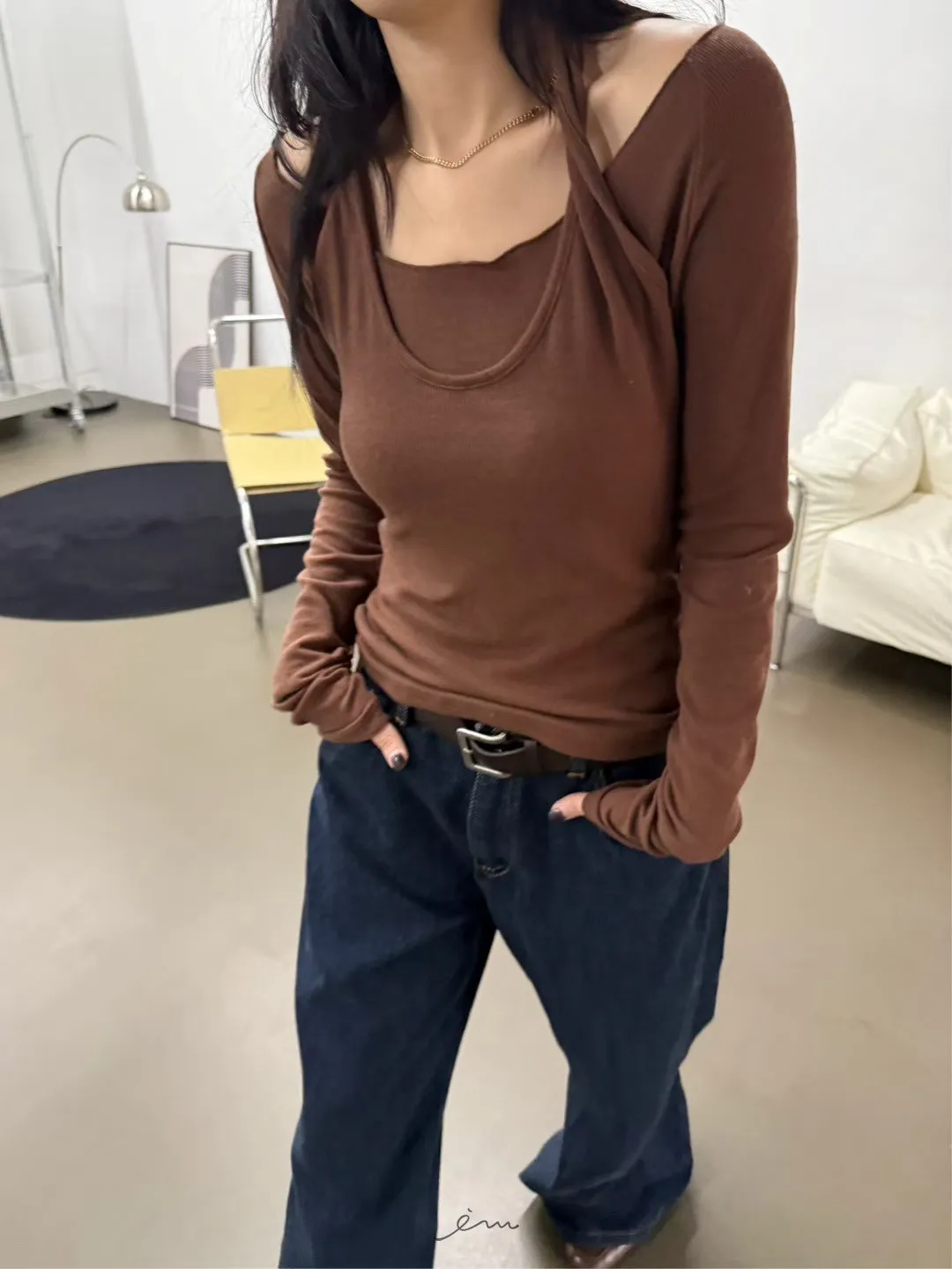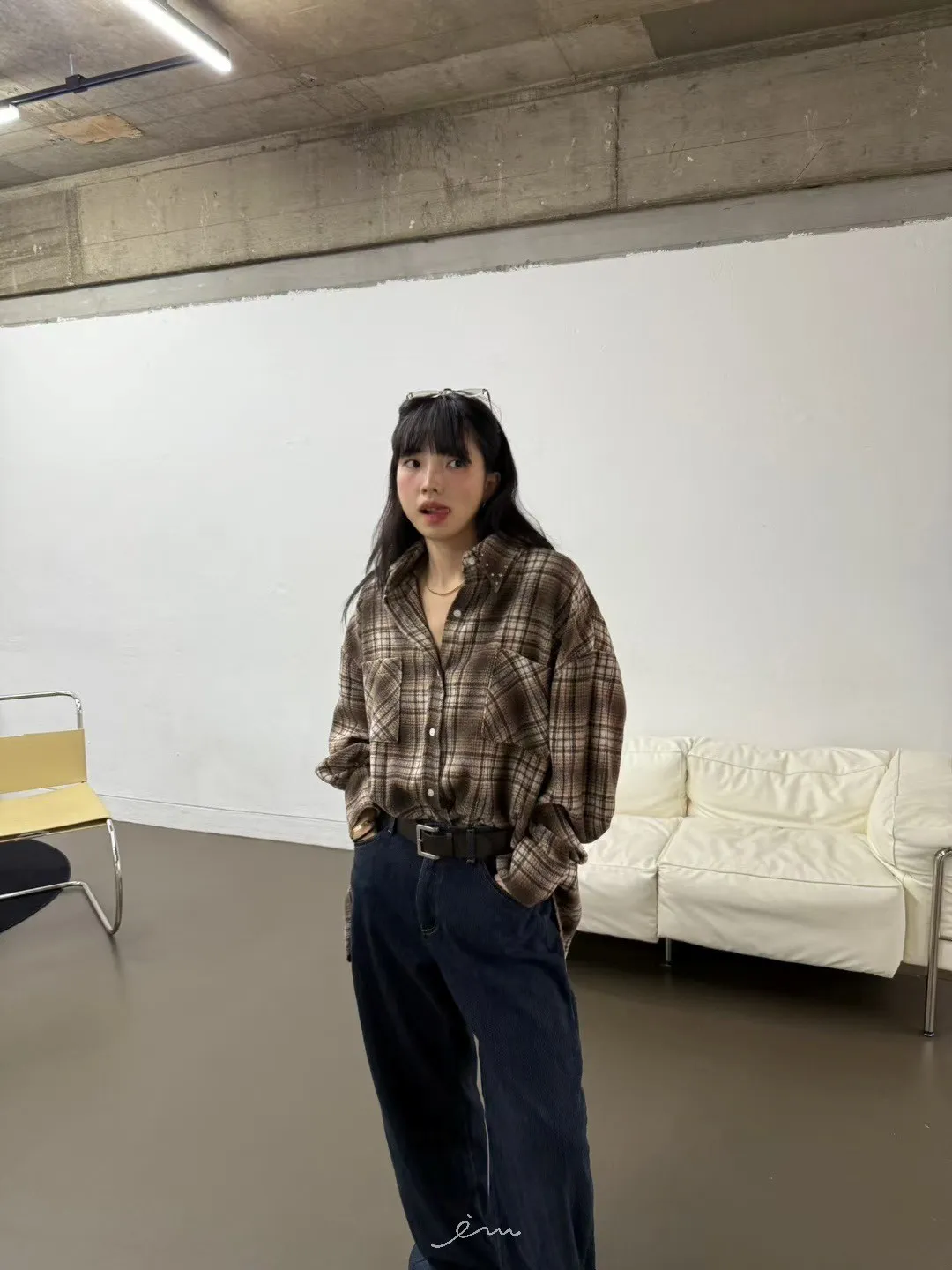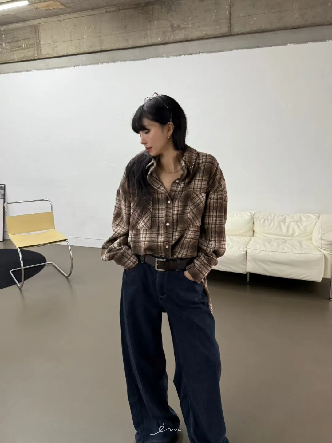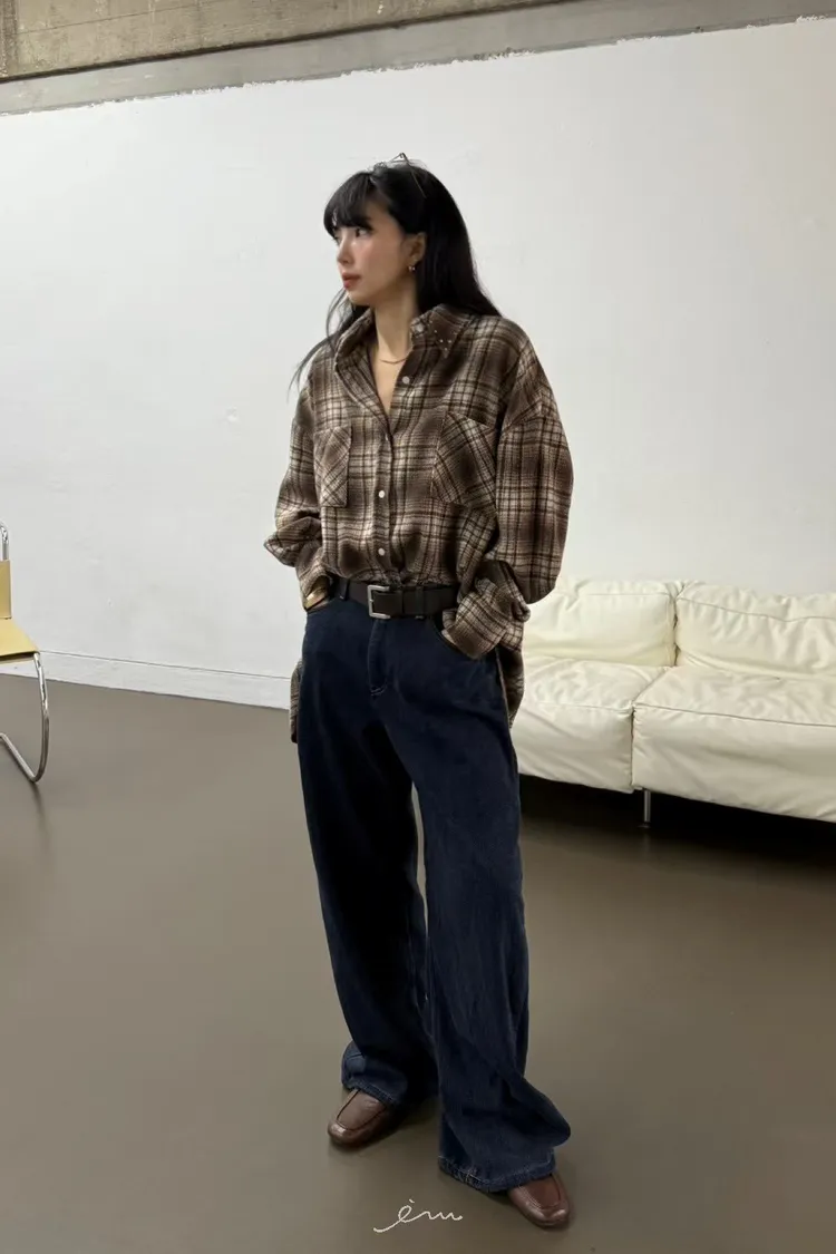 SO後單邊蓋式口袋牛仔褲(內磨毛)