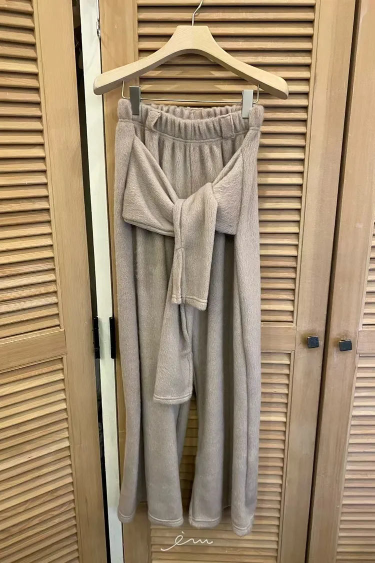 NUT毛毛前綁帶鬆緊長褲