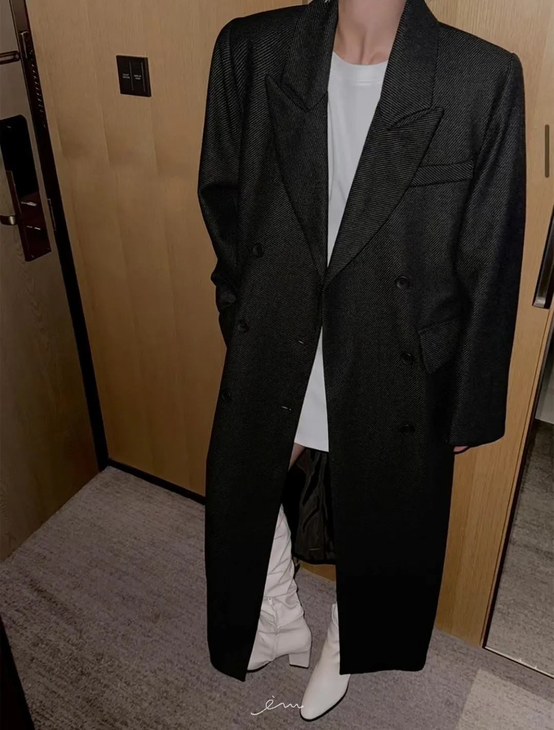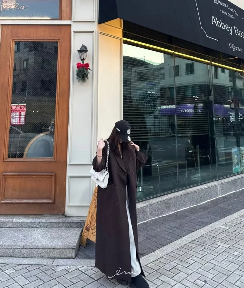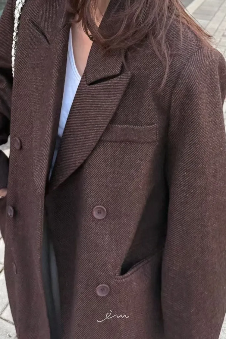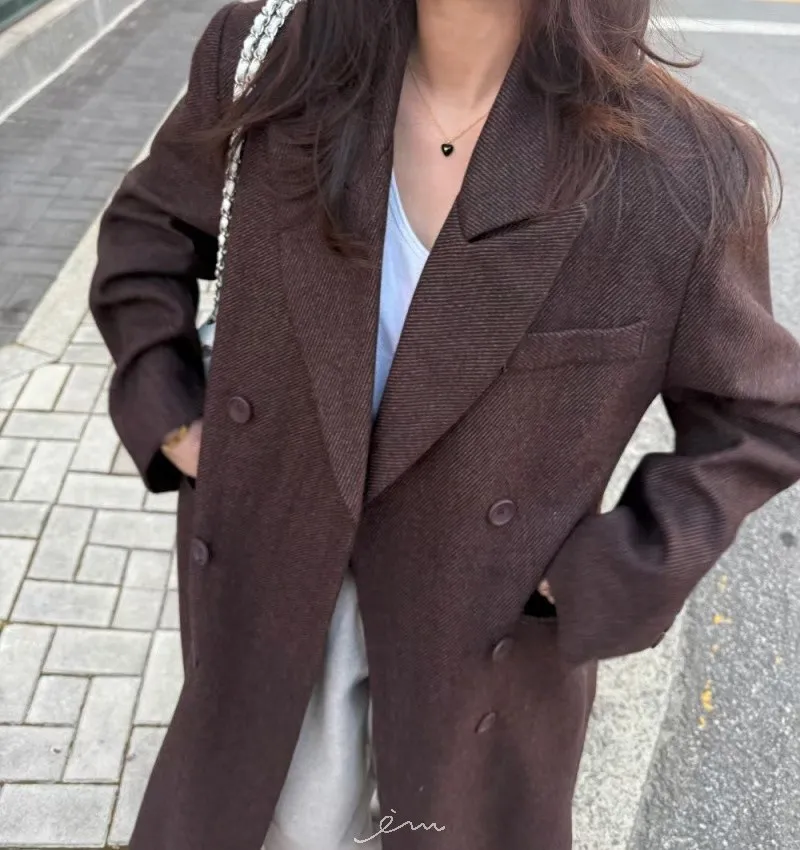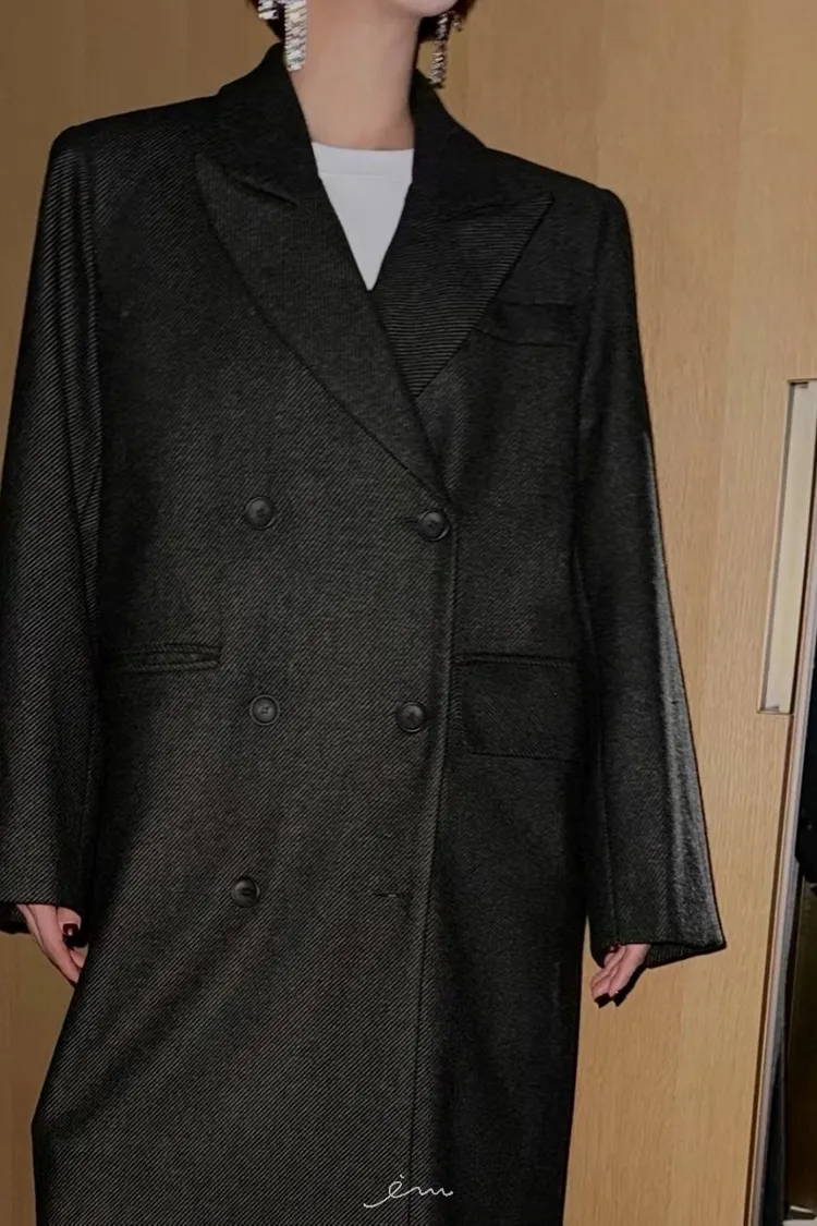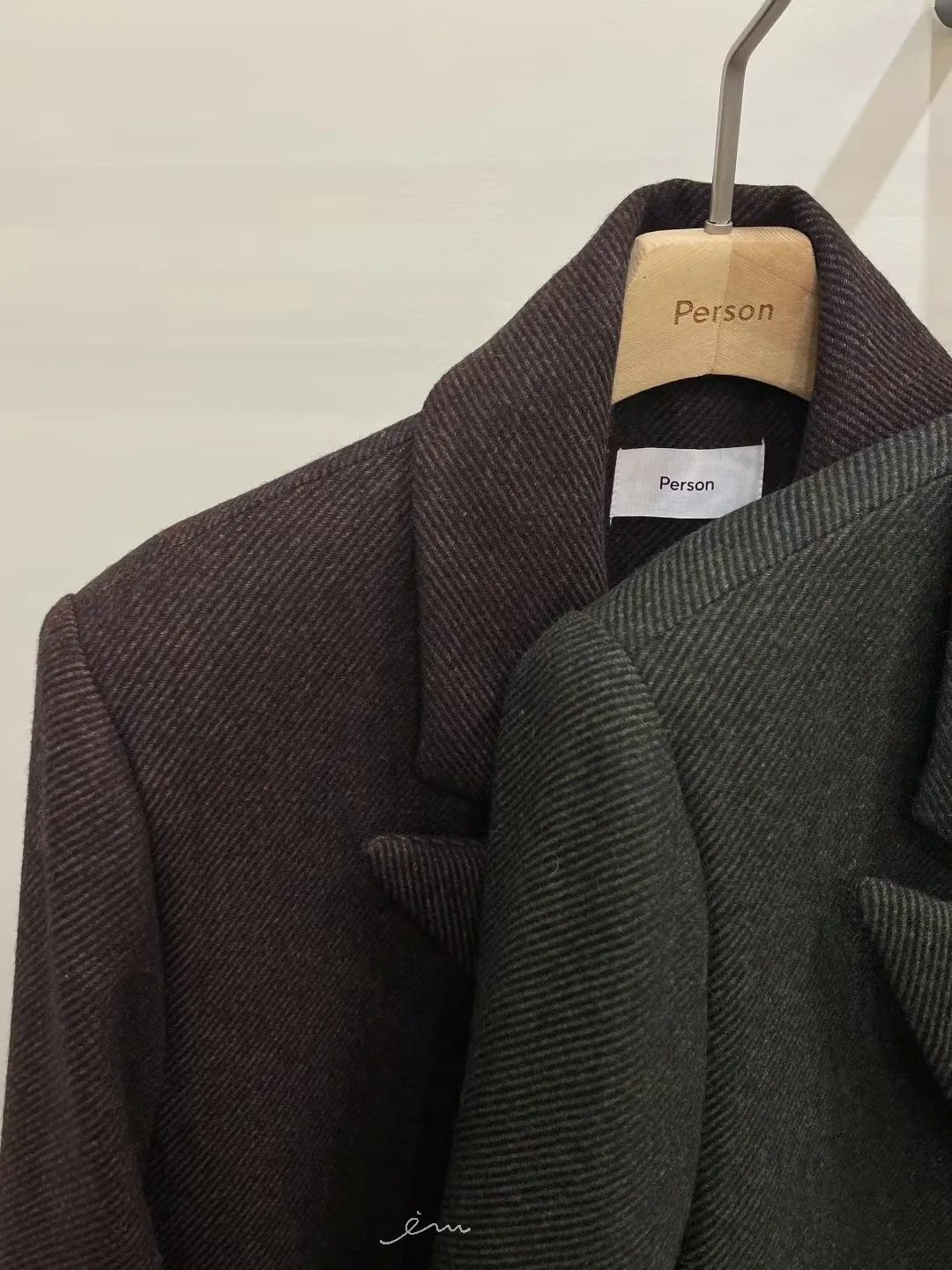 PER羊毛50雙排釦後開岔西裝式大衣