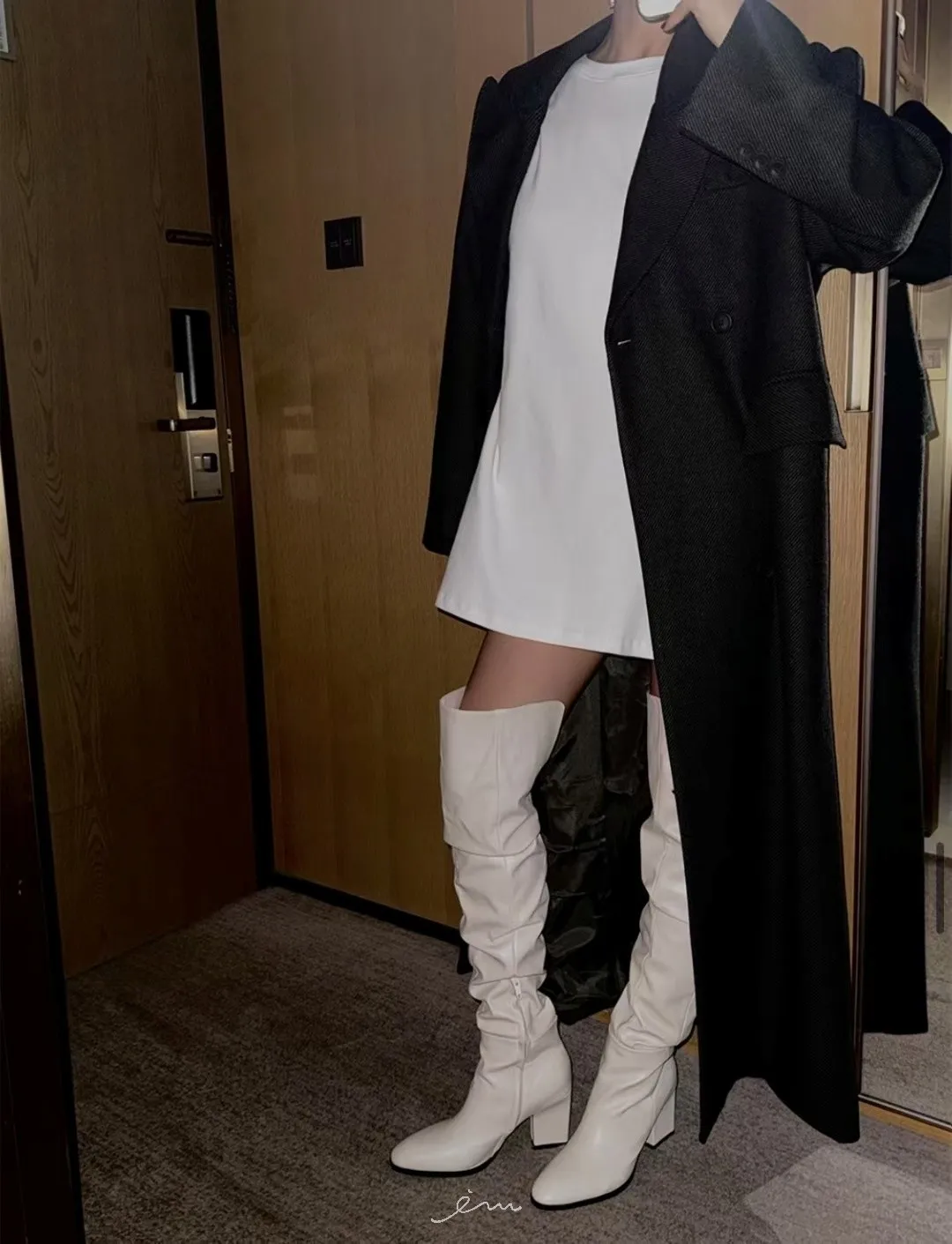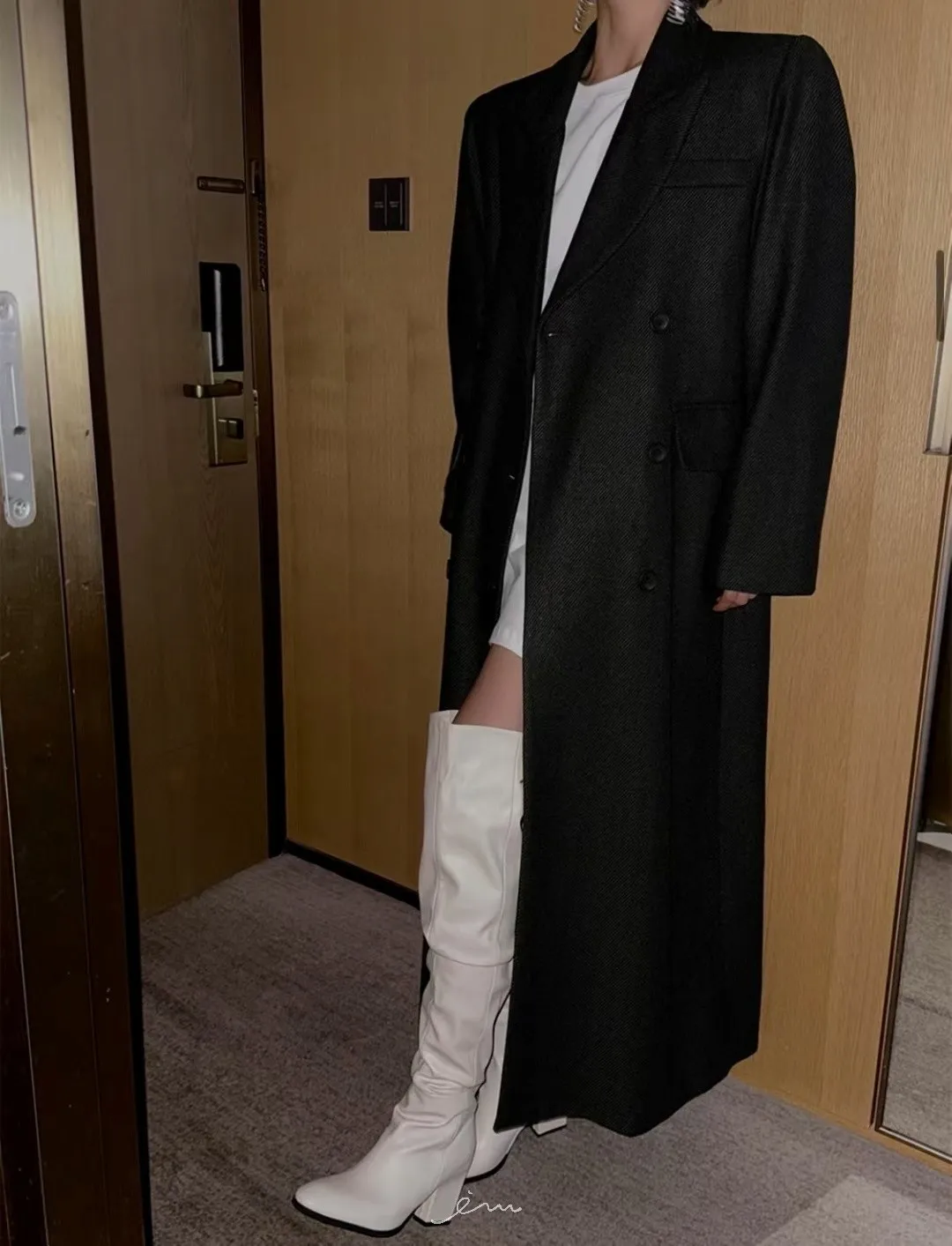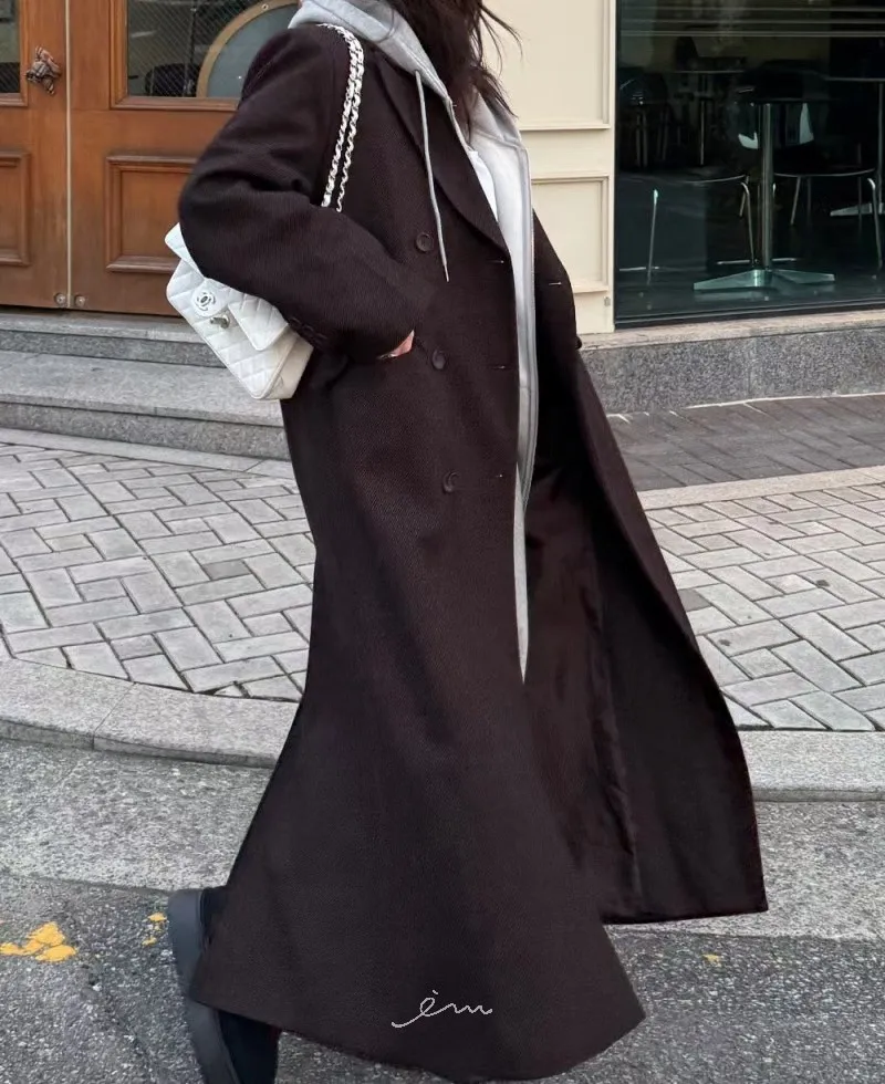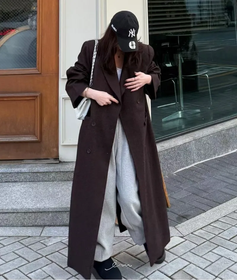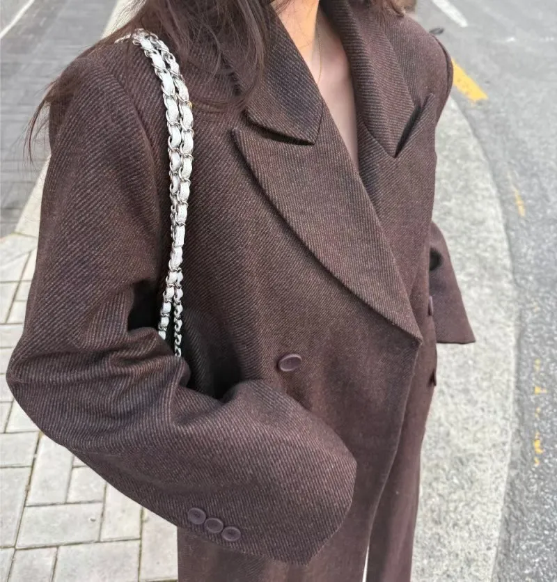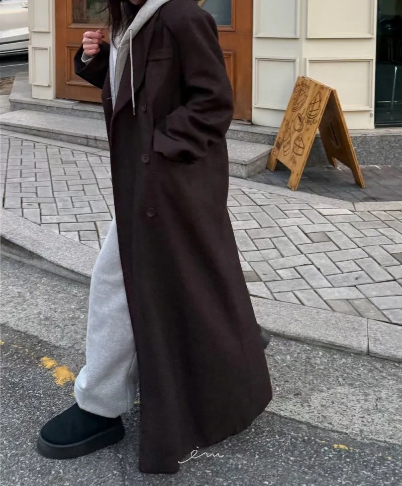 PER羊毛50雙排釦後開岔西裝式大衣