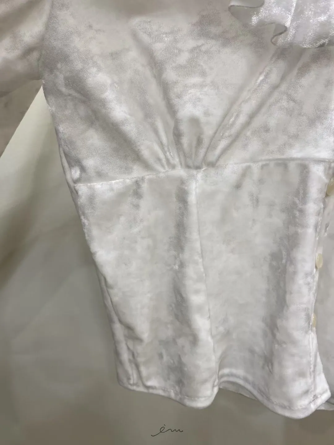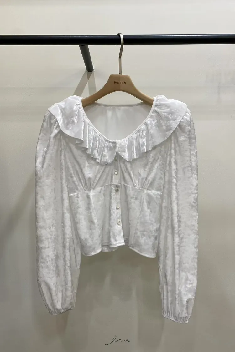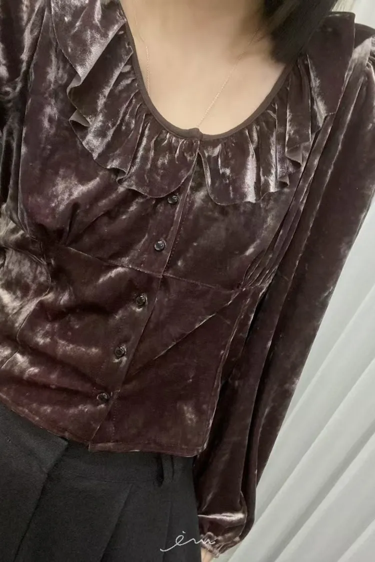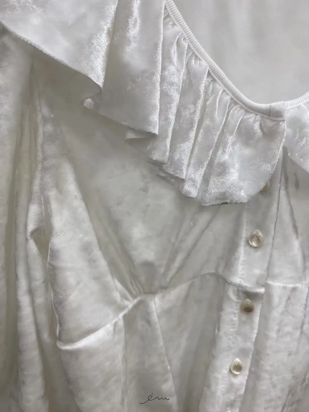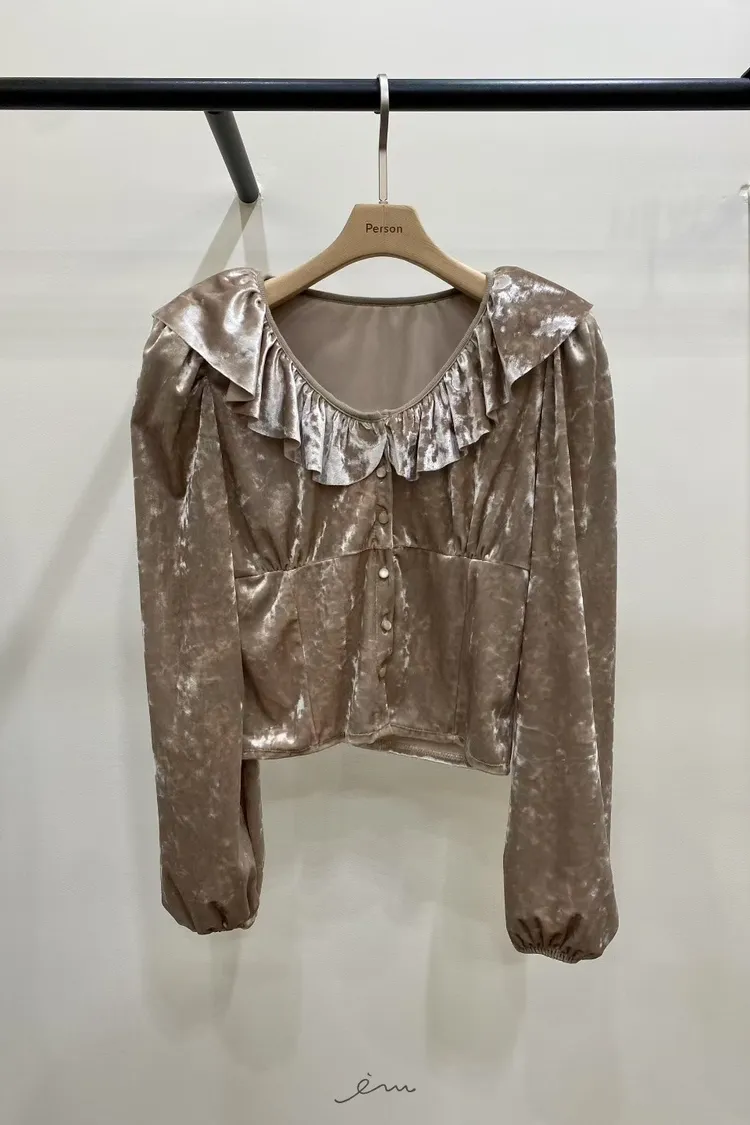 PER天鵝絨荷葉領抓皺鈕釦衣
