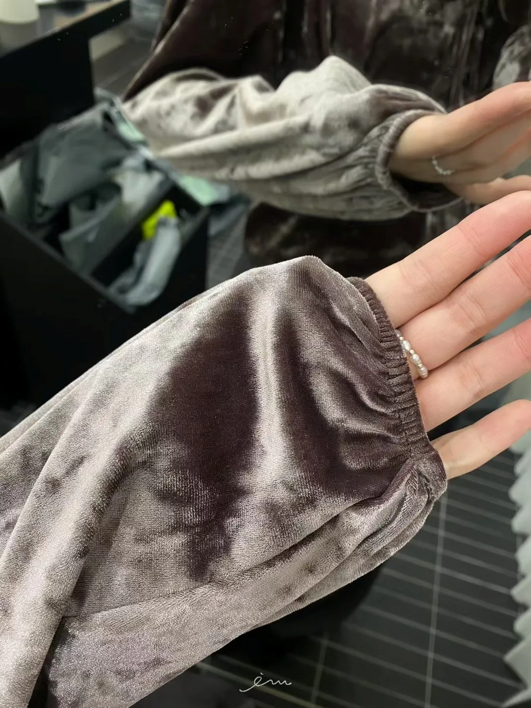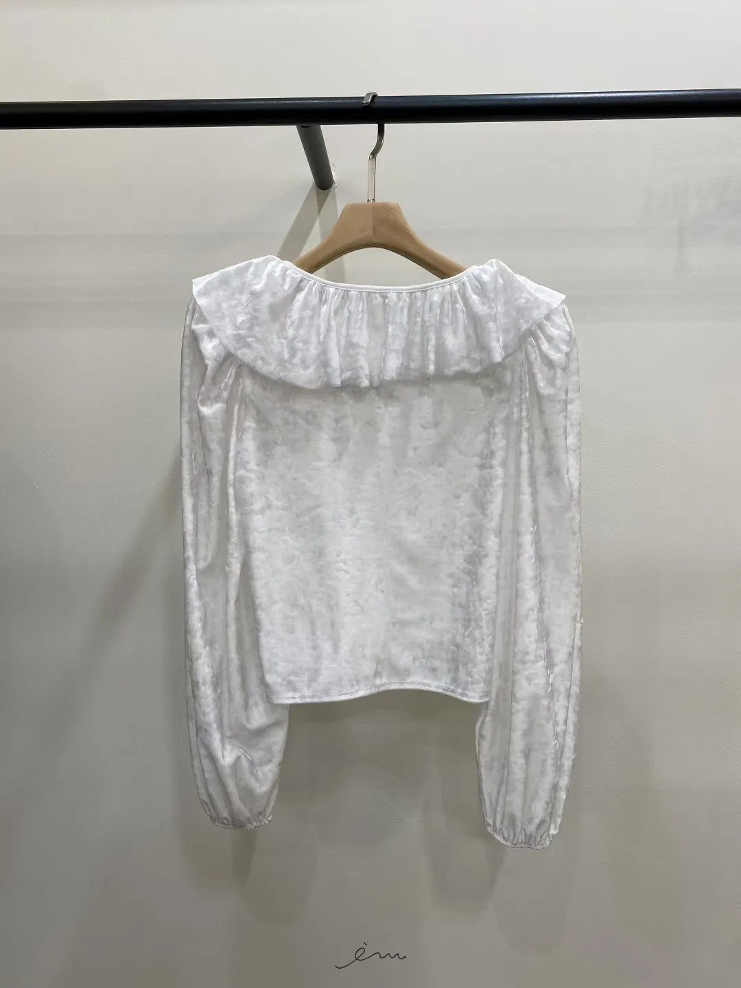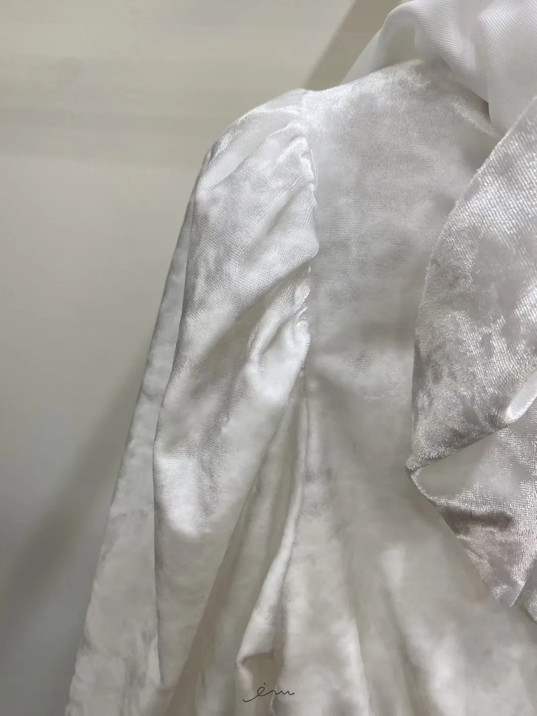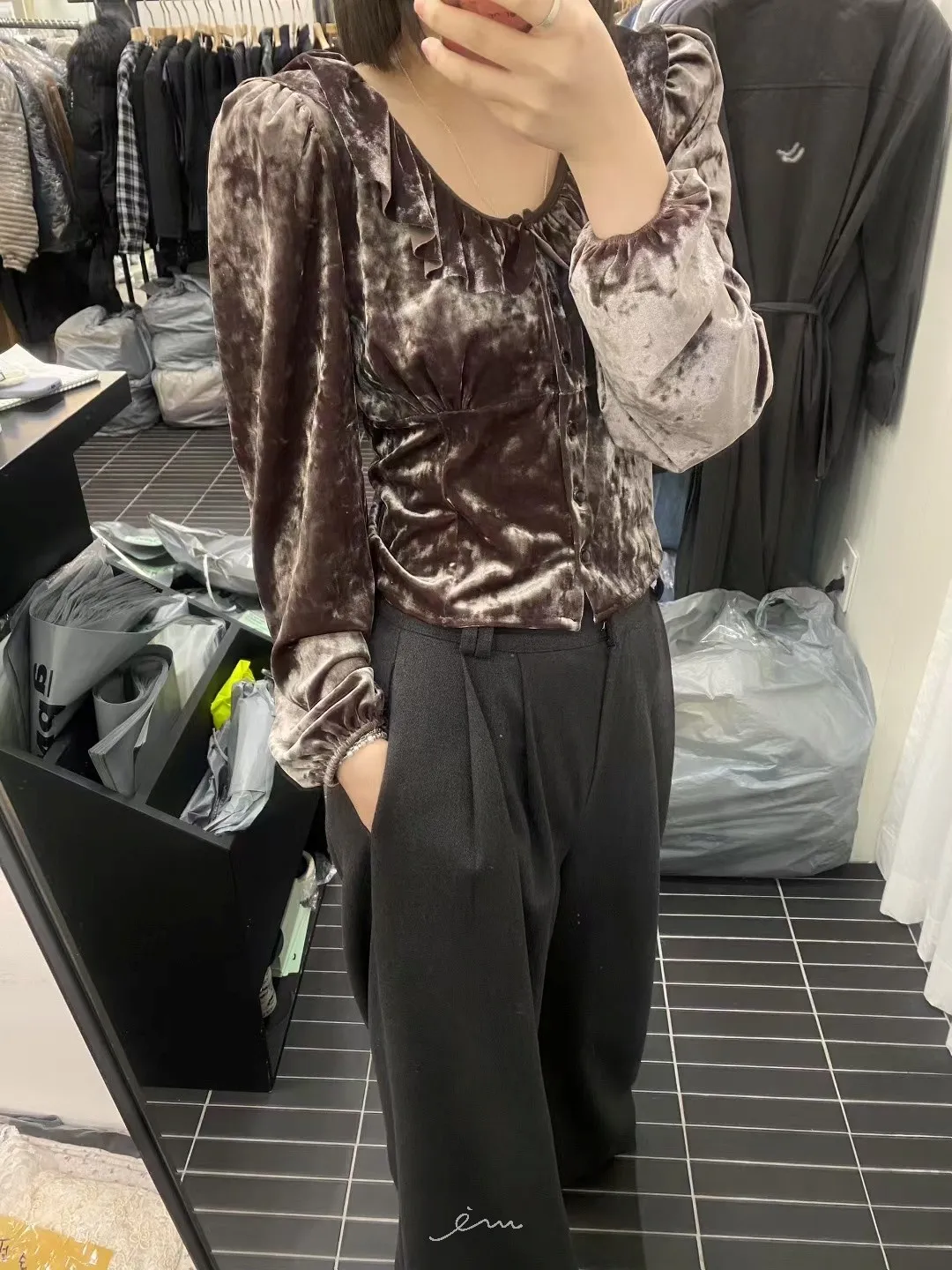 PER天鵝絨荷葉領抓皺鈕釦衣
