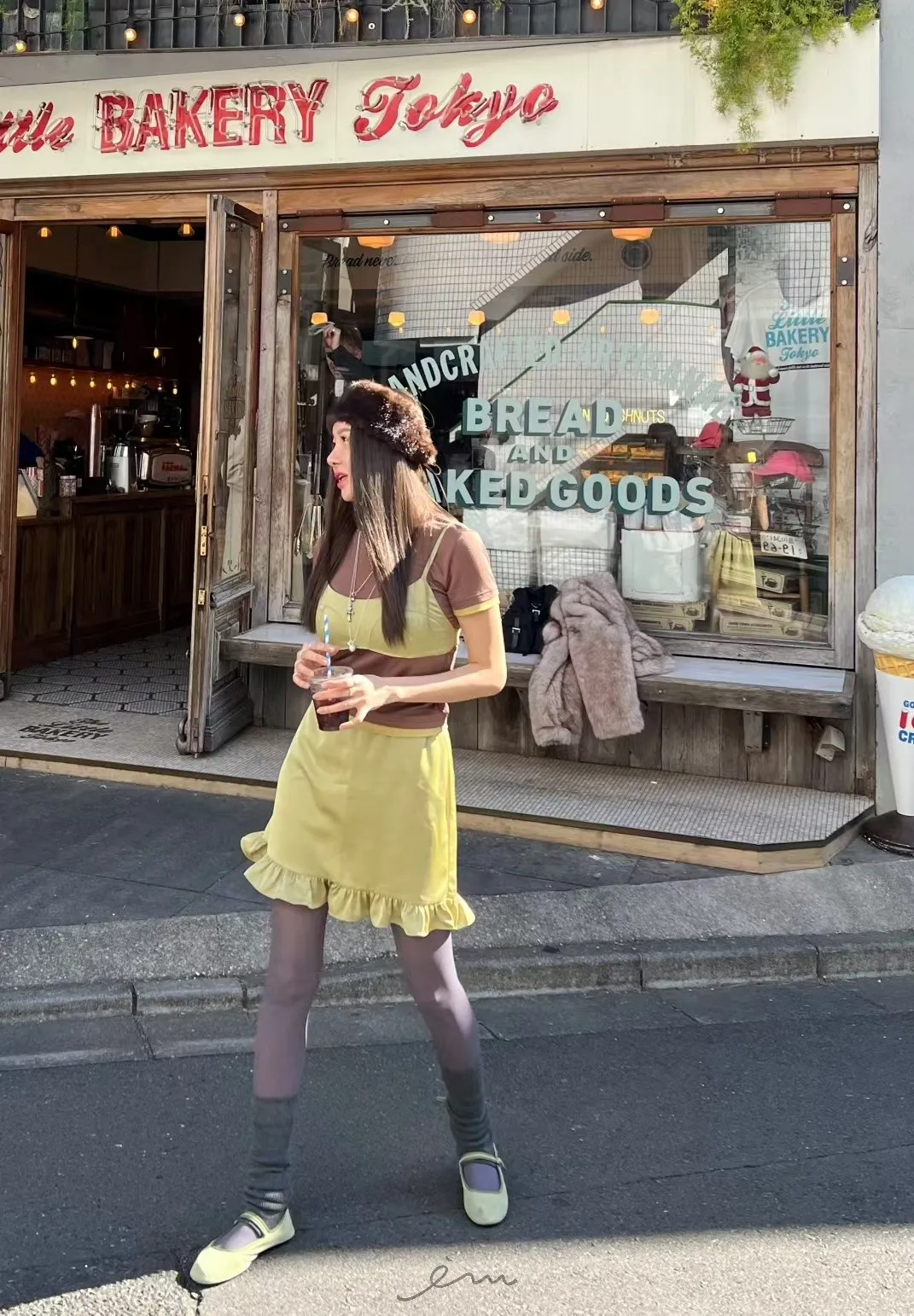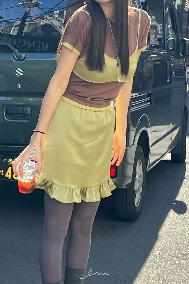 PER鬆緊下擺荷葉邊裙