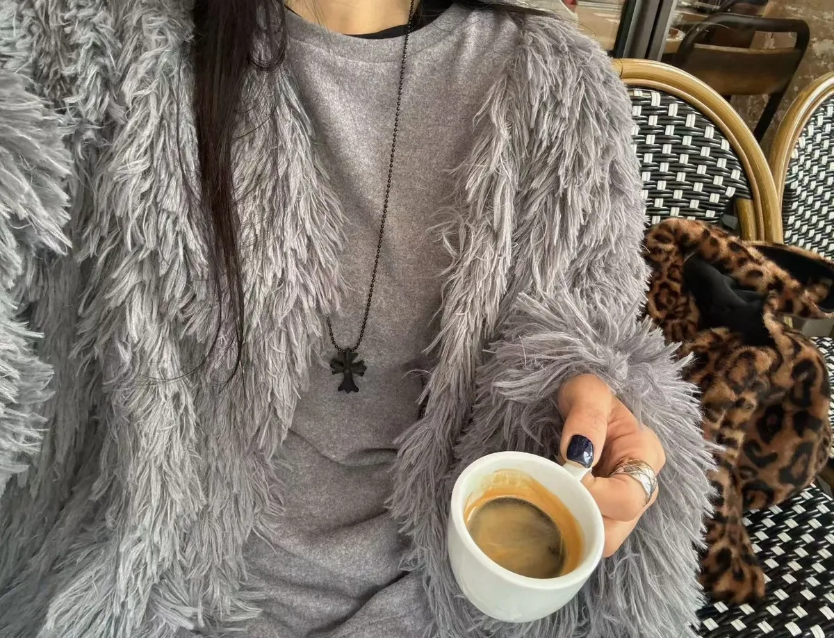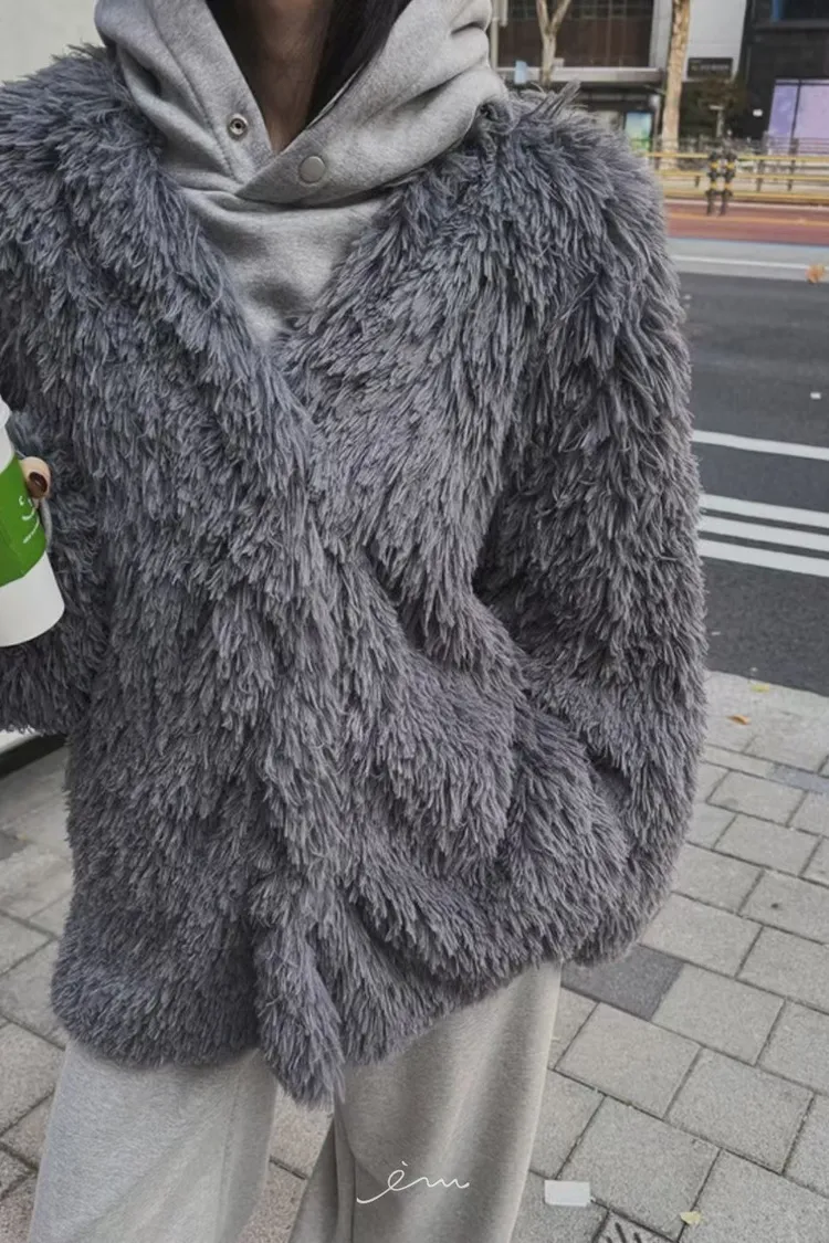 BYF毛毛V領蓬鬆感外套