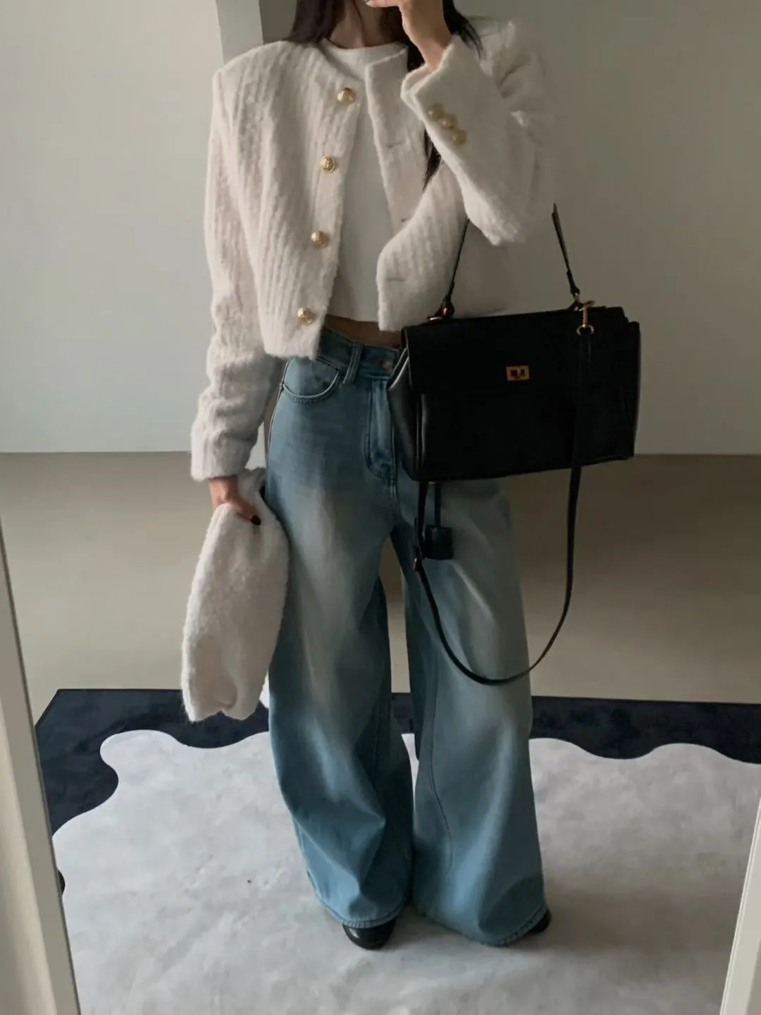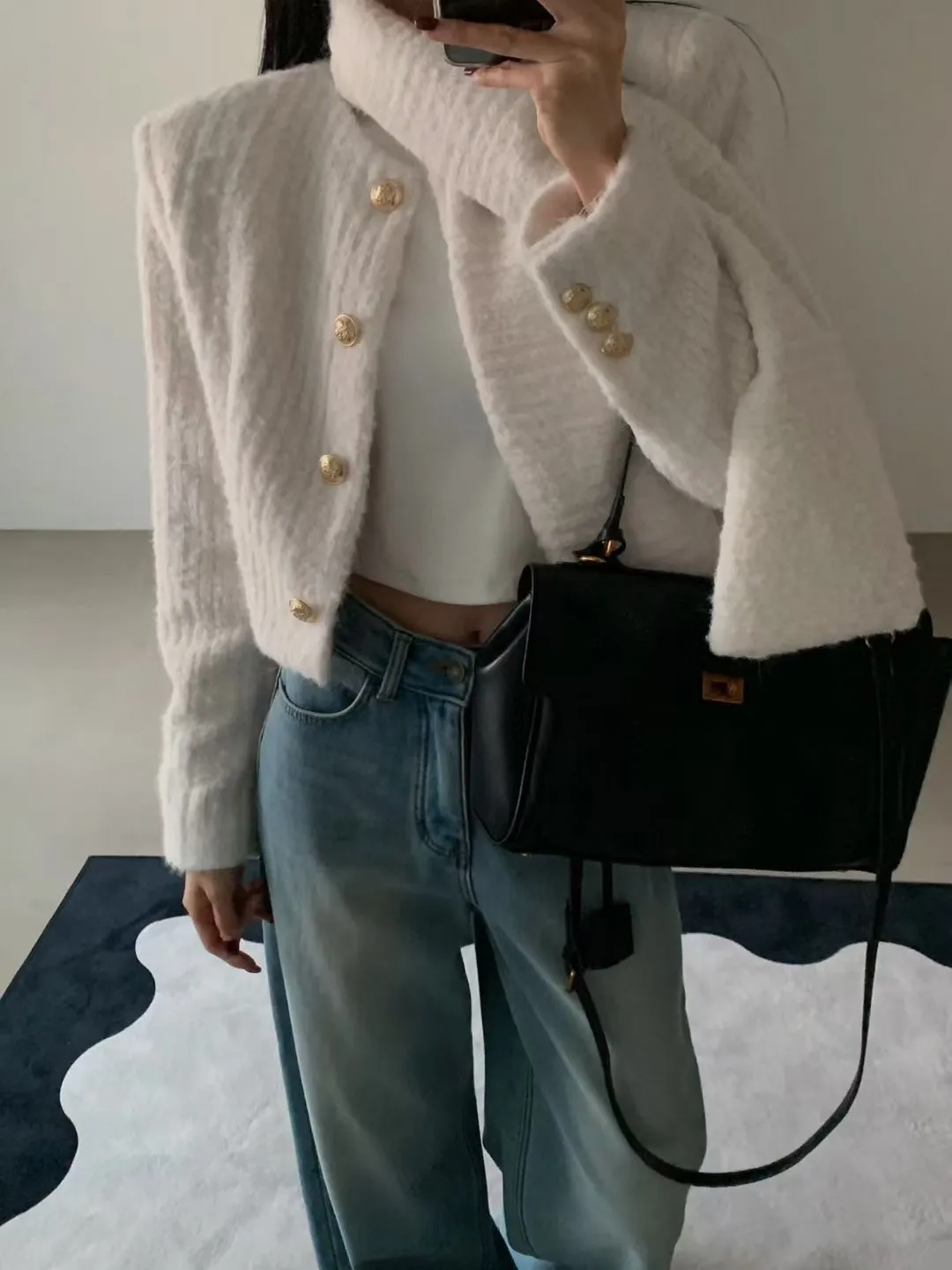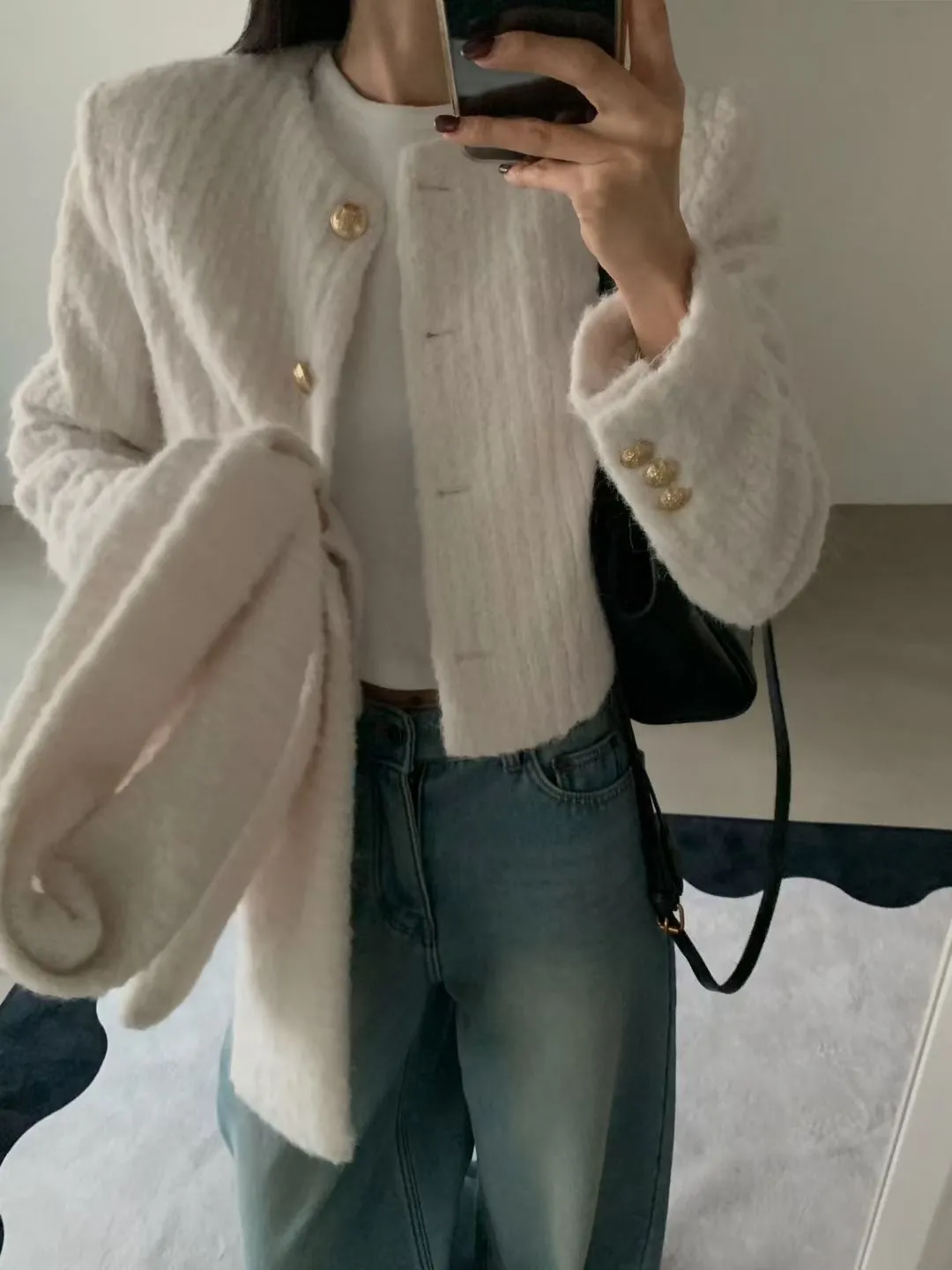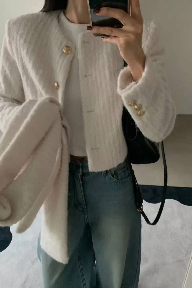 保暖!毛毛小香外套+圍巾