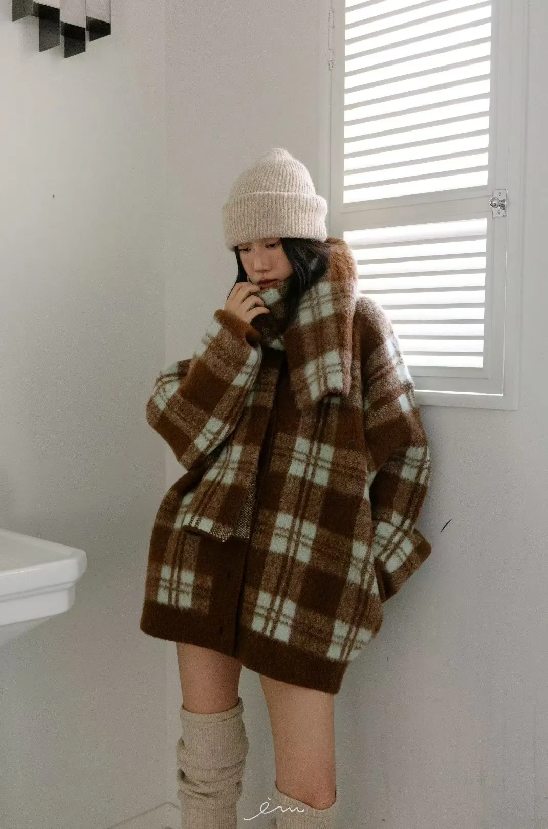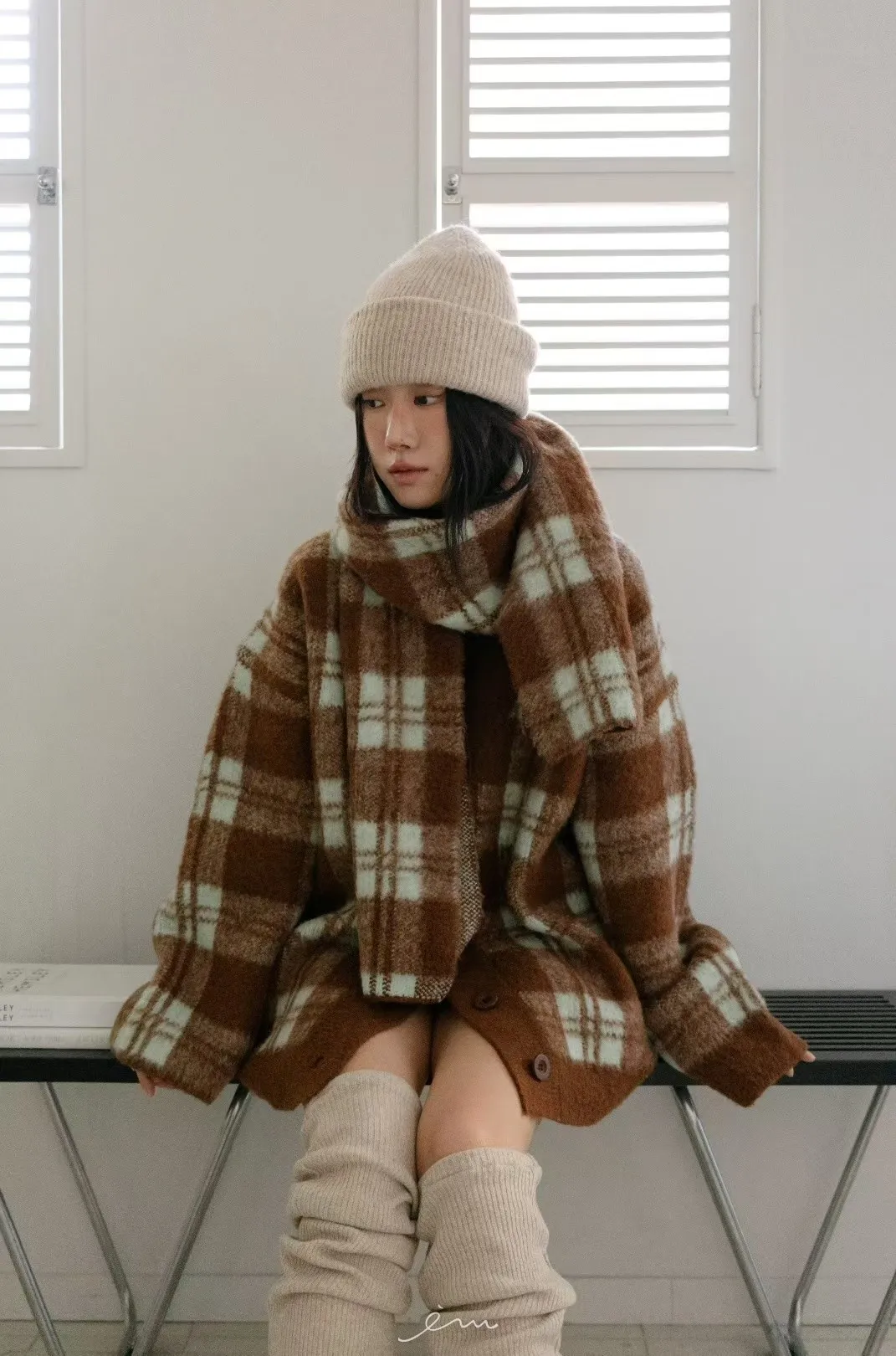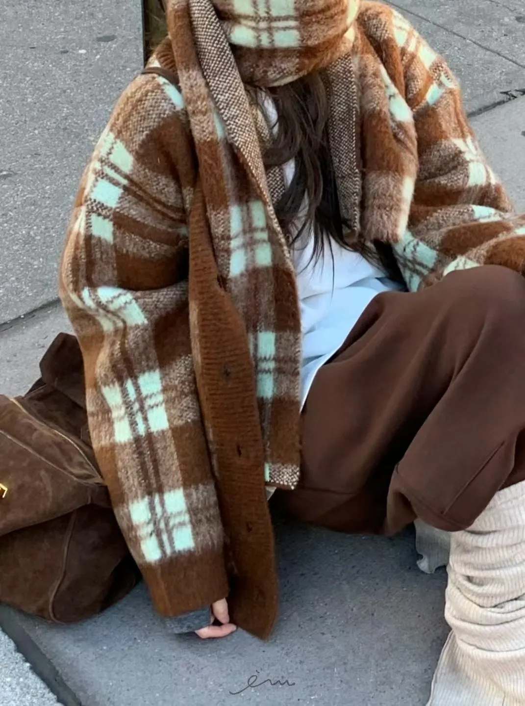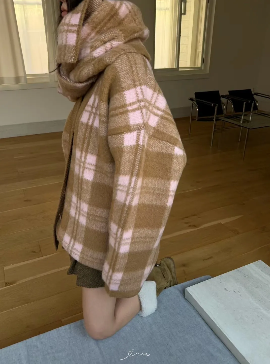 Tomgirl羊毛格紋配色外套+小標圍巾