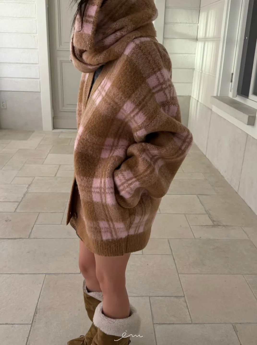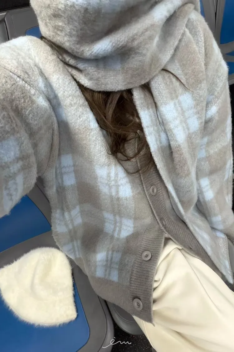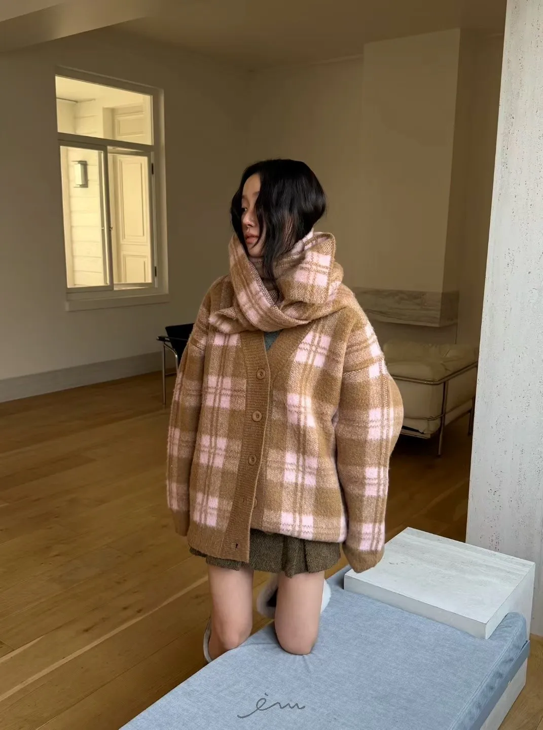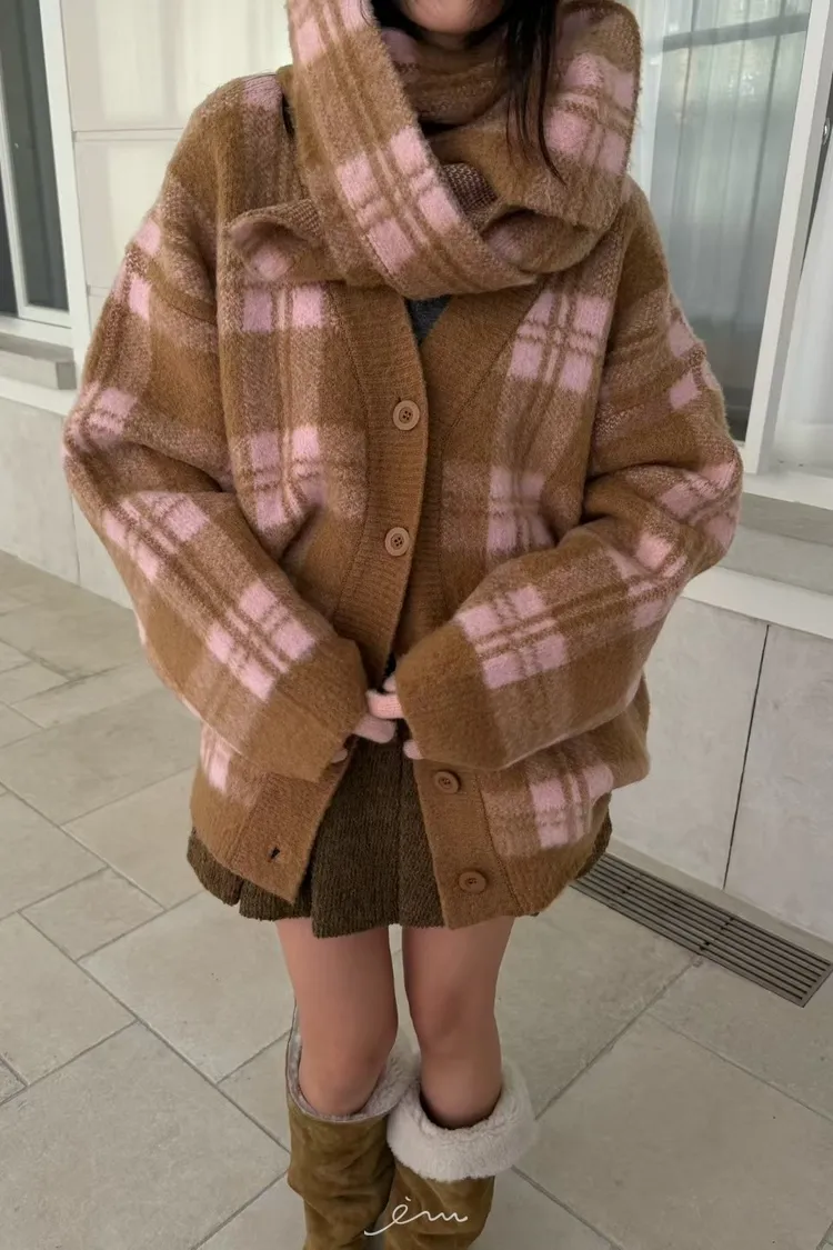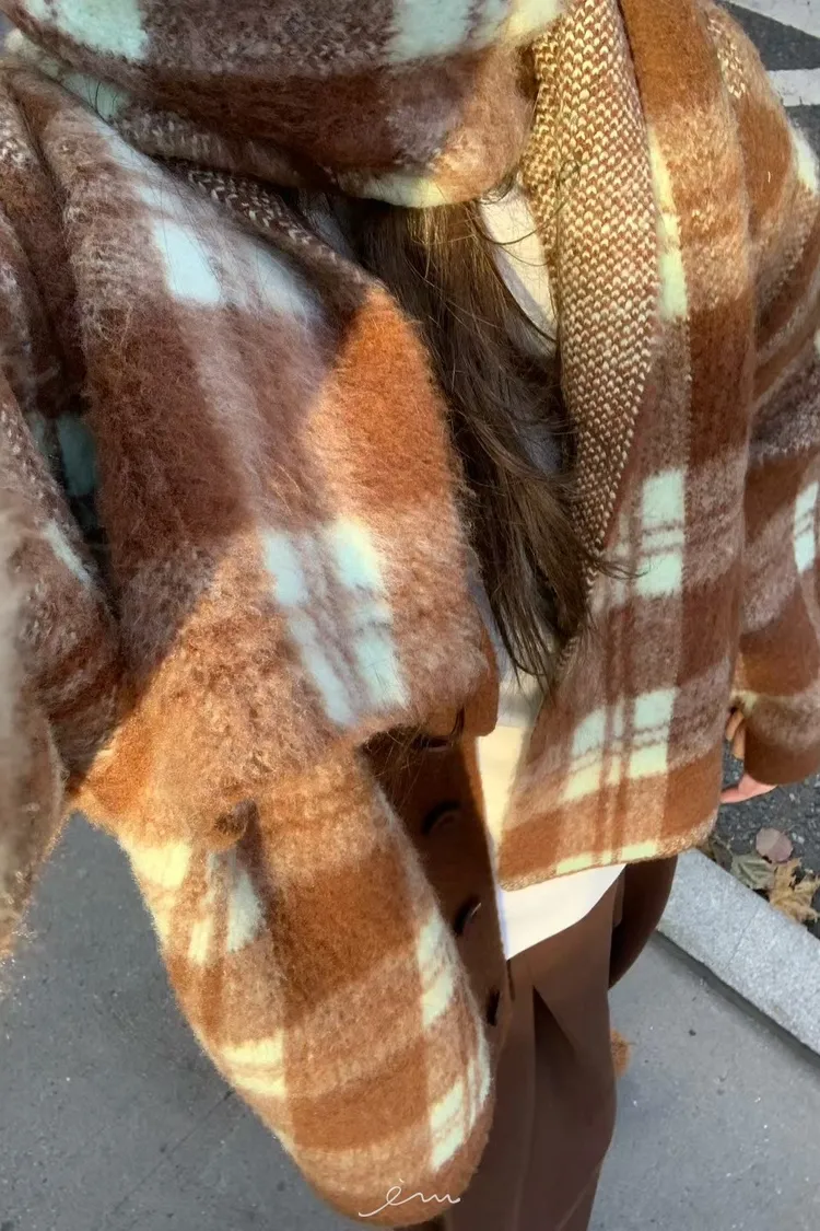 Tomgirl羊毛格紋配色外套+小標圍巾