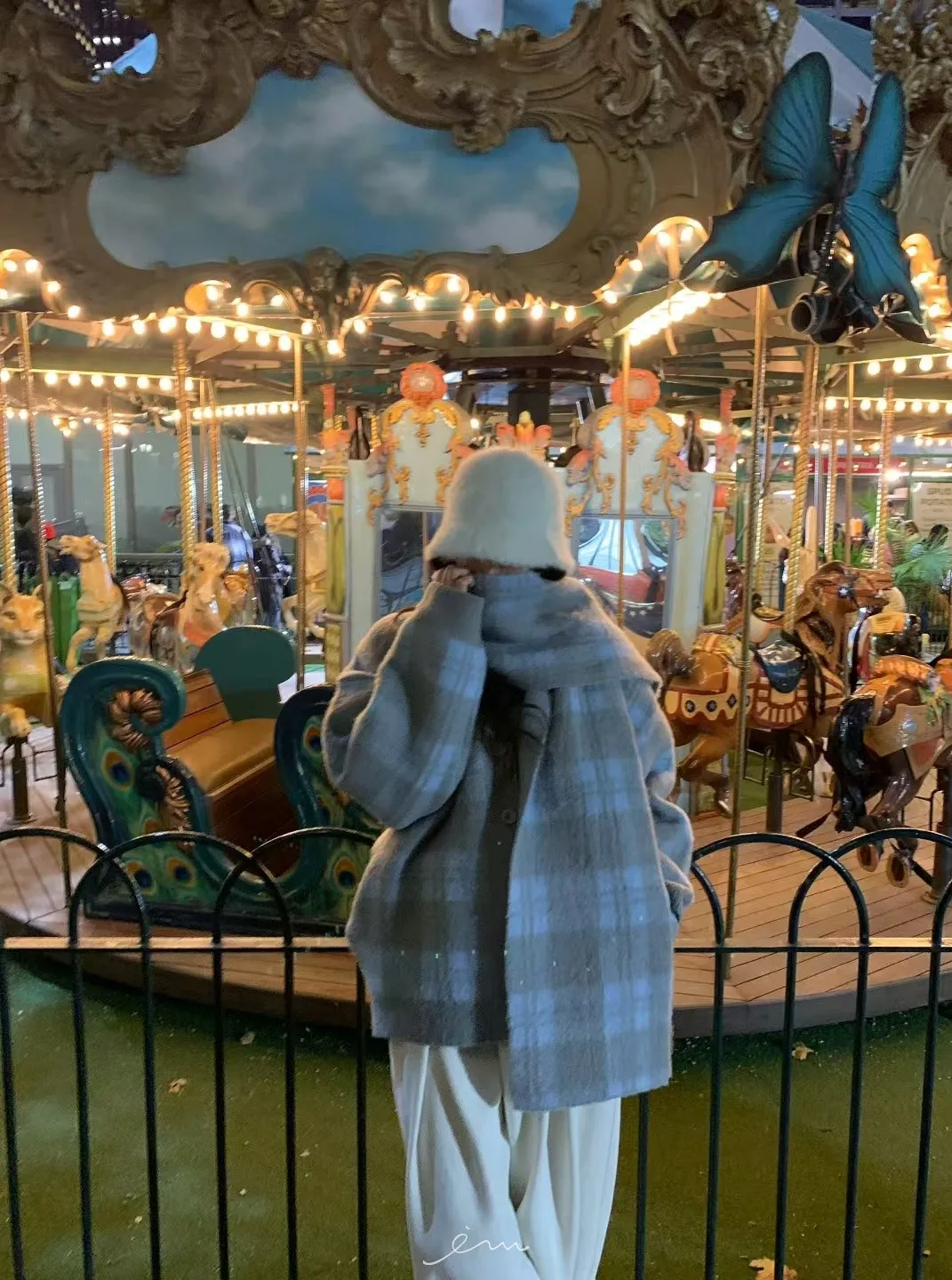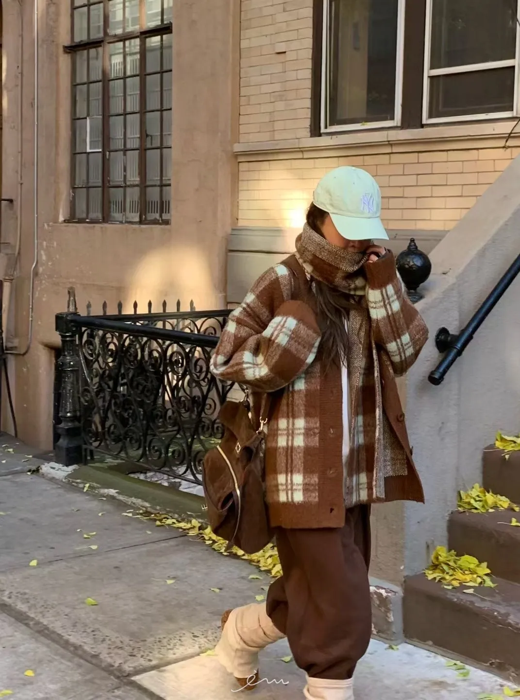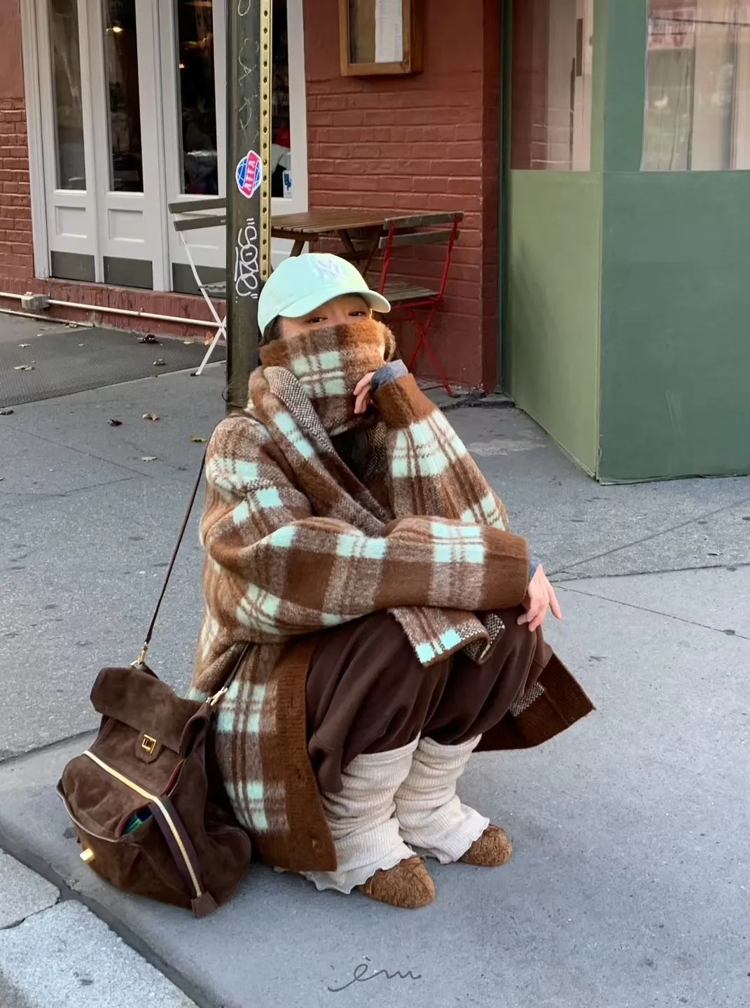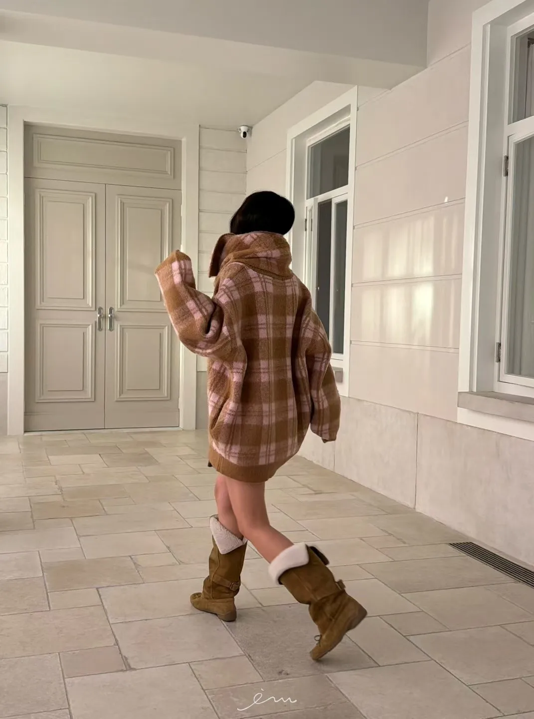 Tomgirl羊毛格紋配色外套+小標圍巾