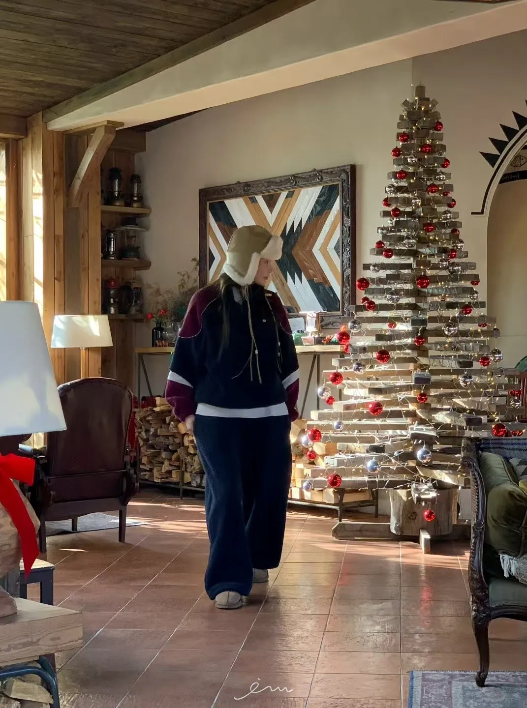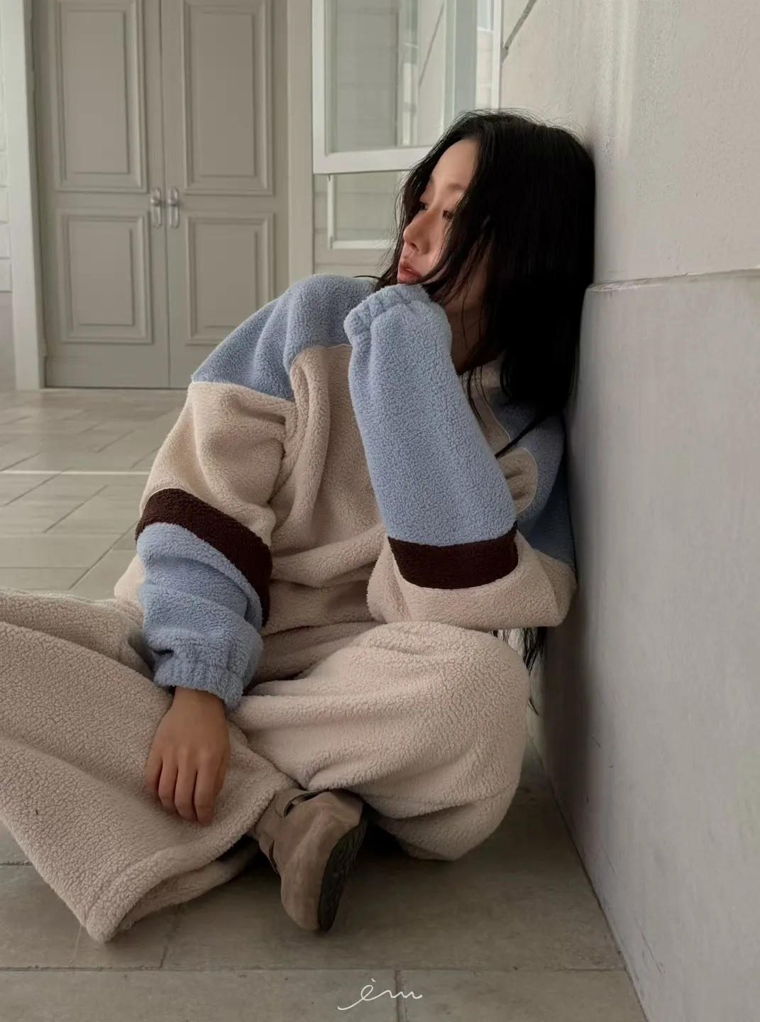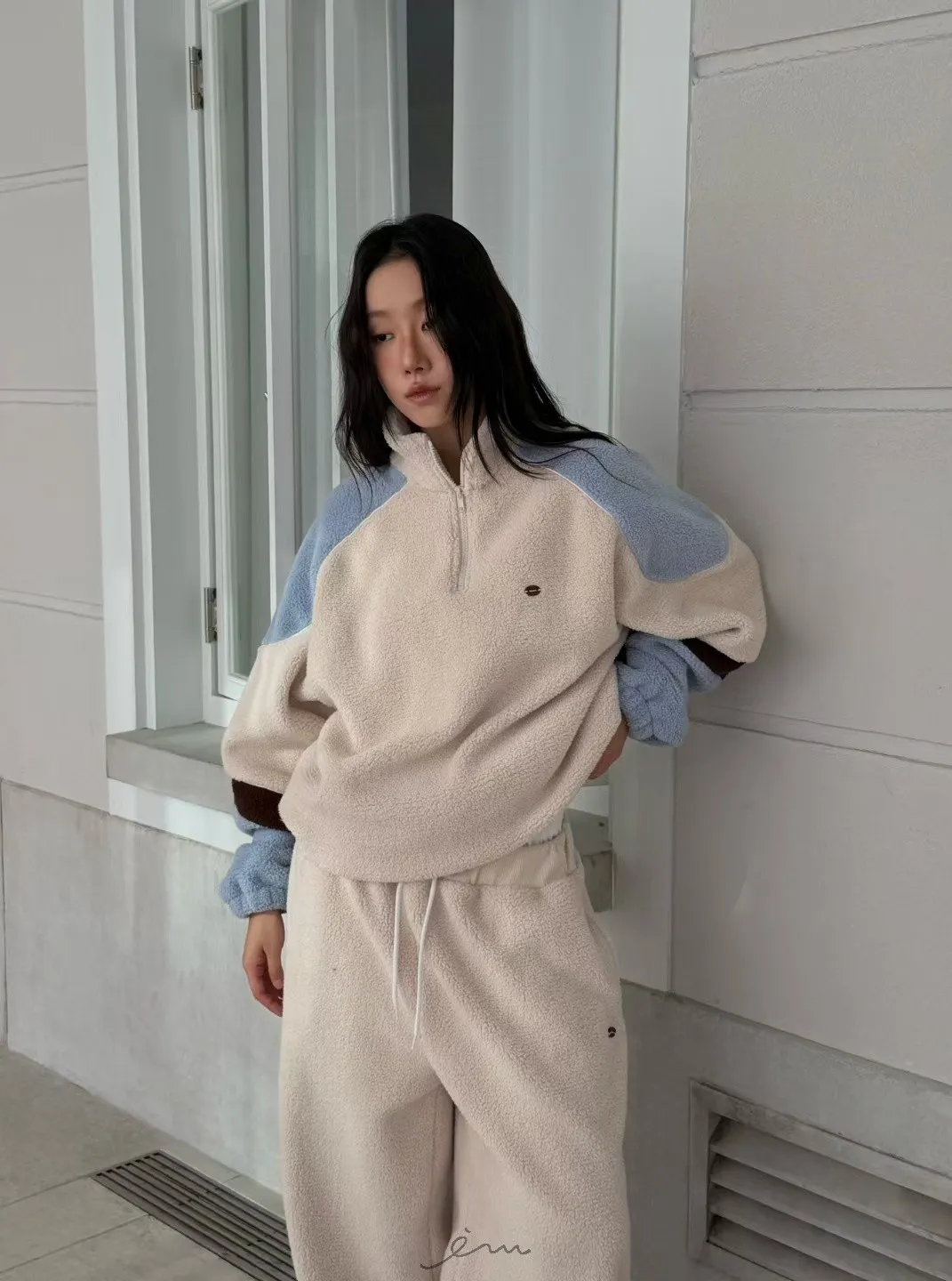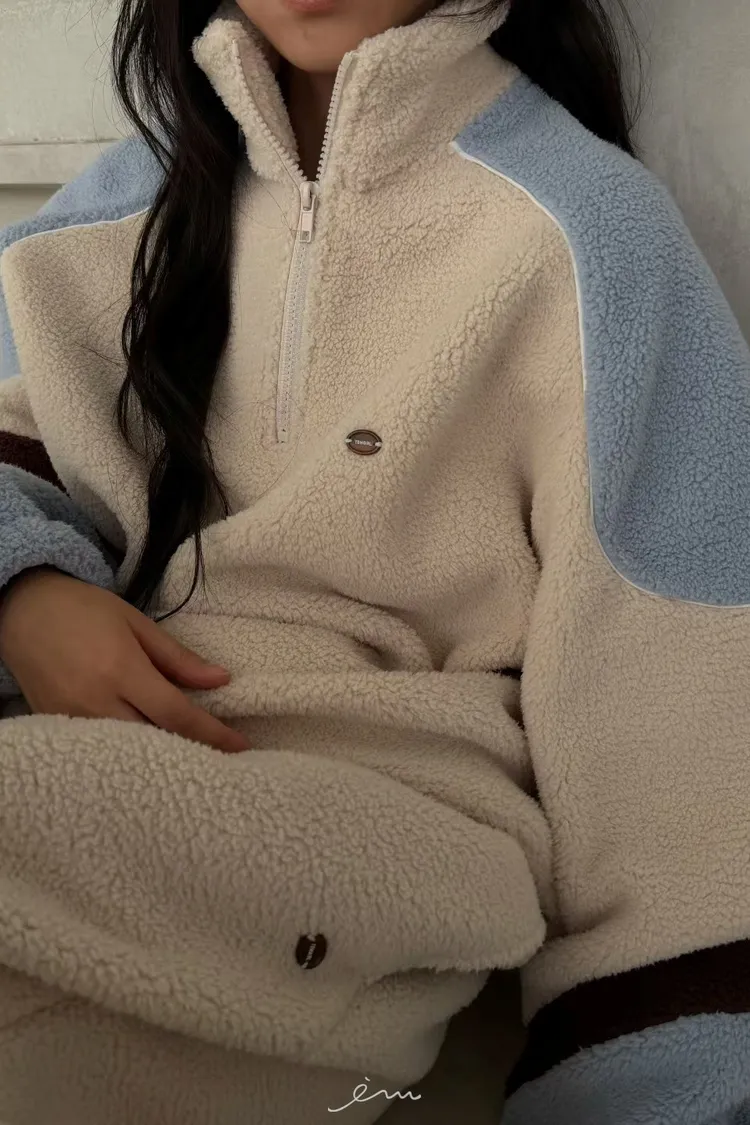 Tomgirl羊羔毛手袖配色下鬆緊衣