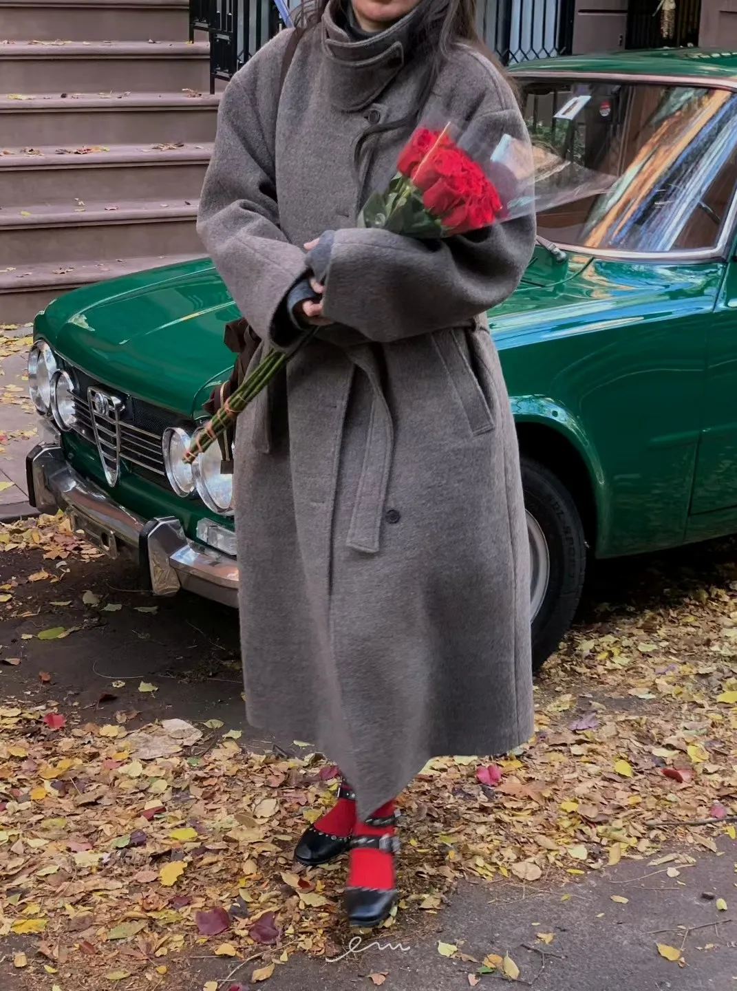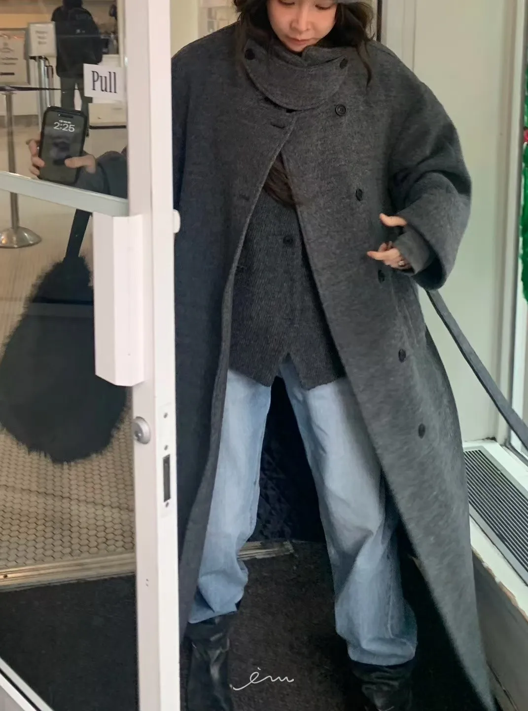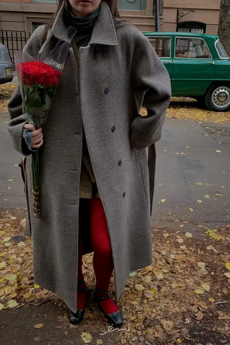 Tomgirl羊毛夾棉翻領排釦大衣