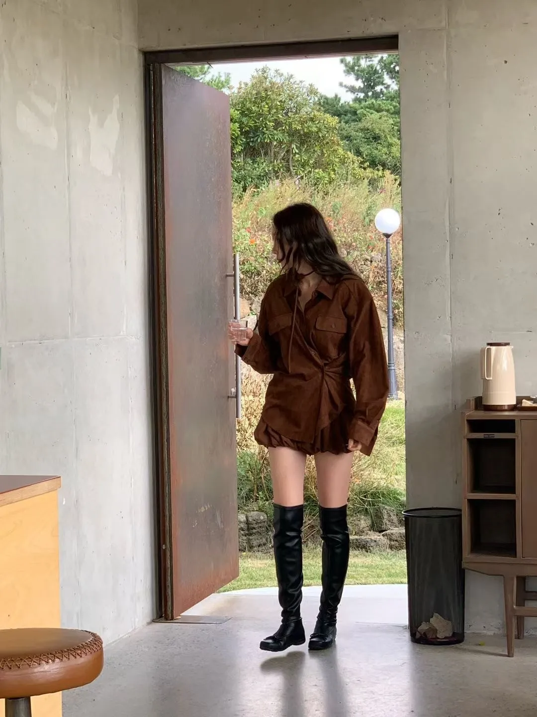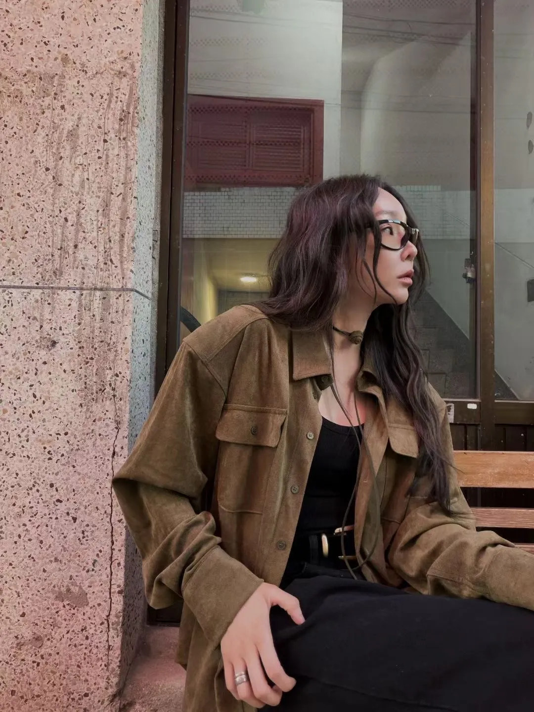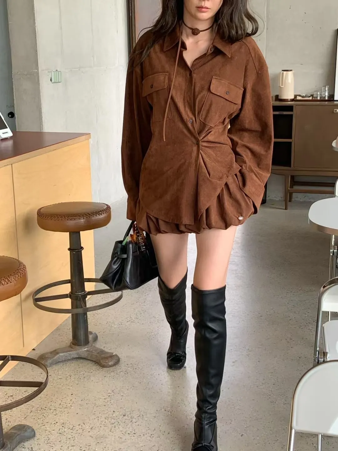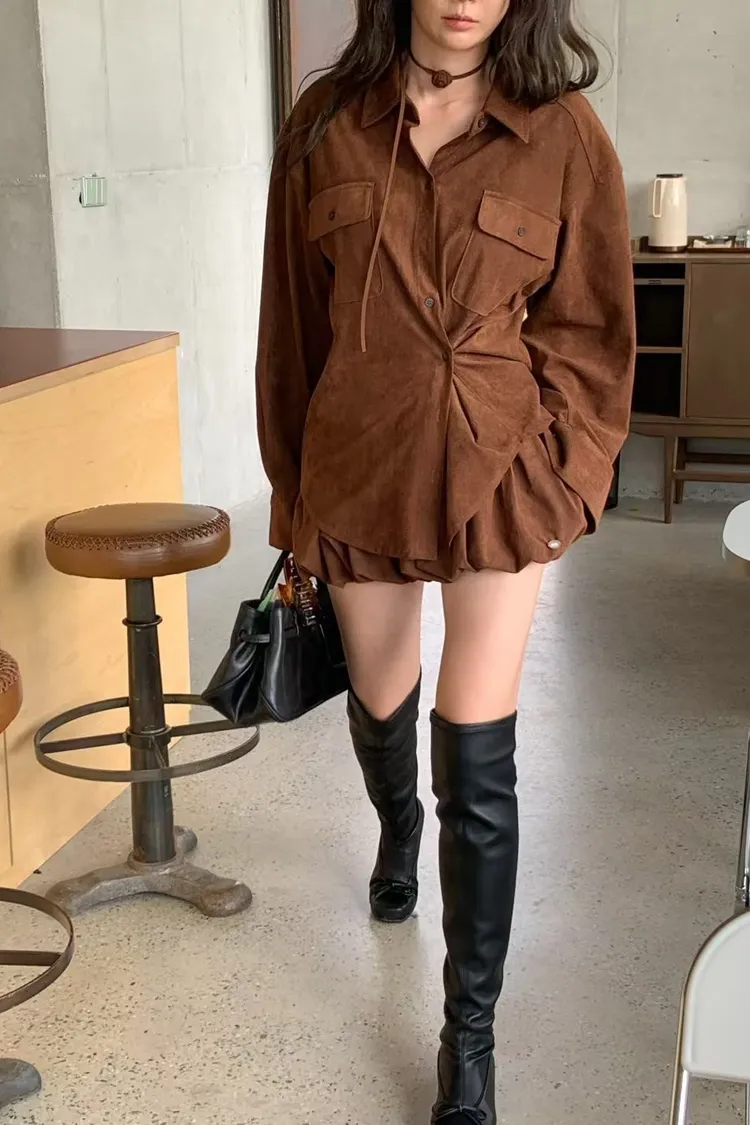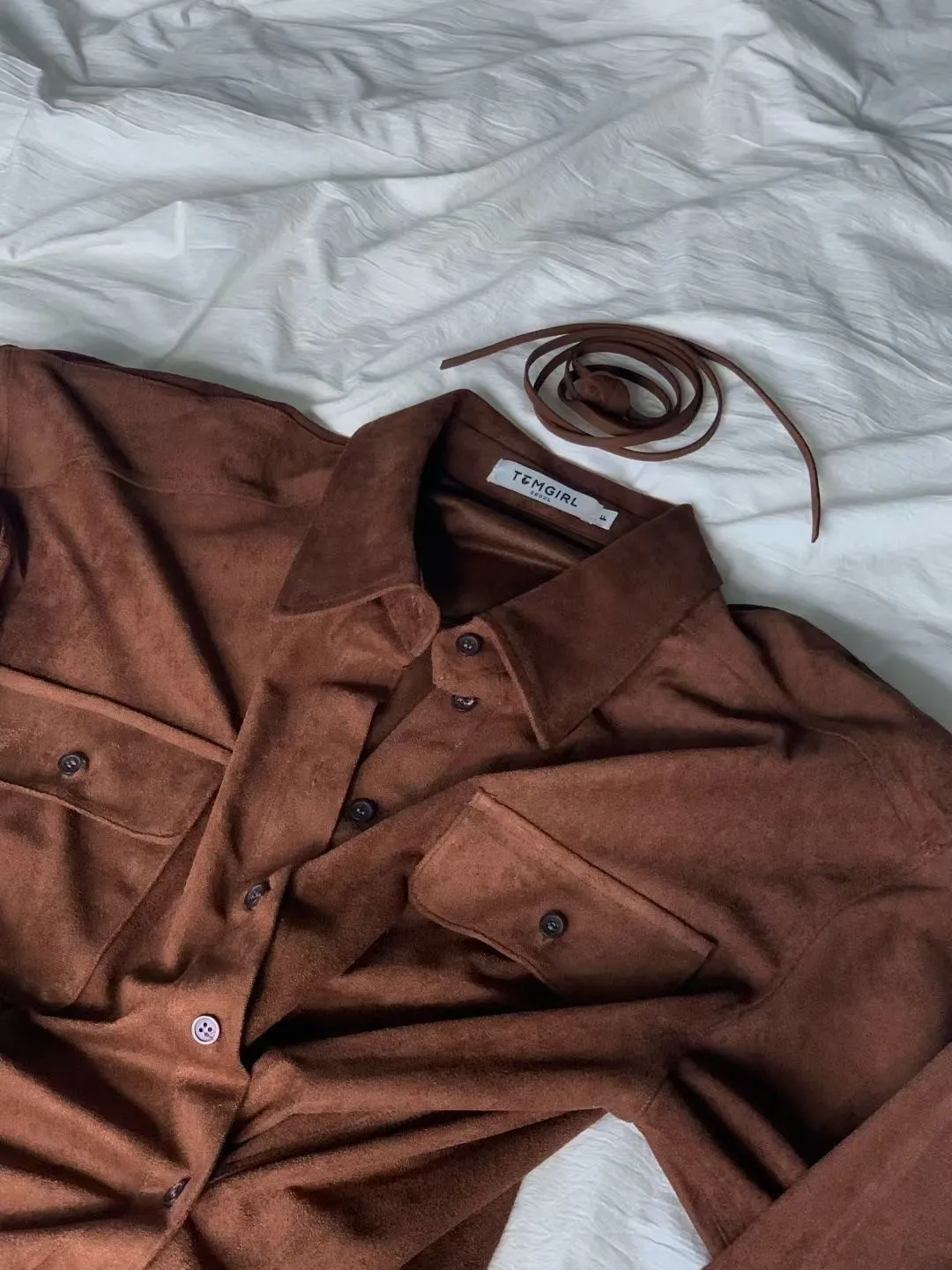 Tomgirl 麂皮兩穿襯衫附綁繩