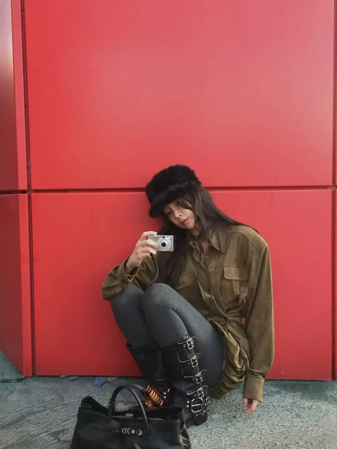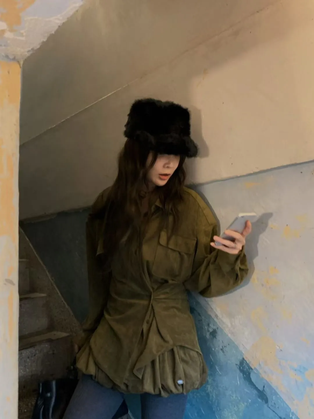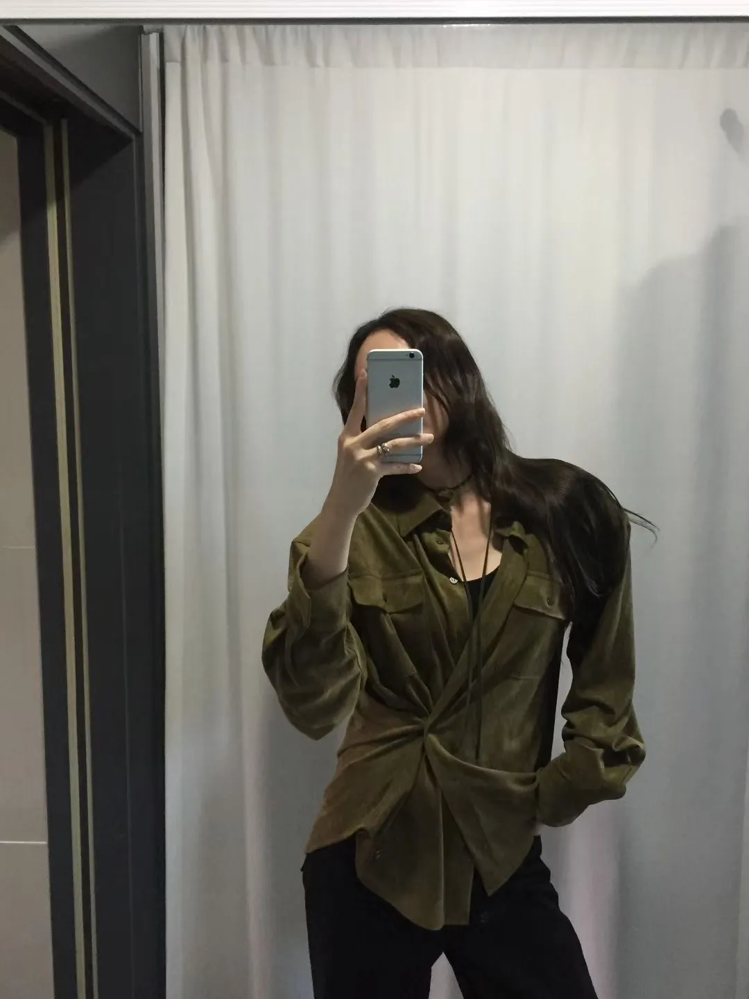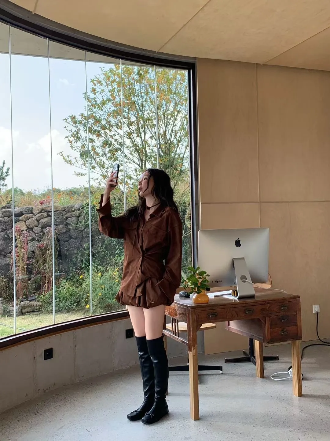 Tomgirl 麂皮兩穿襯衫附綁繩