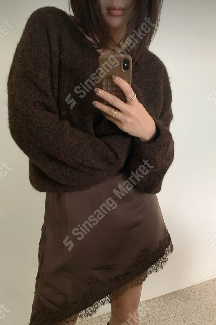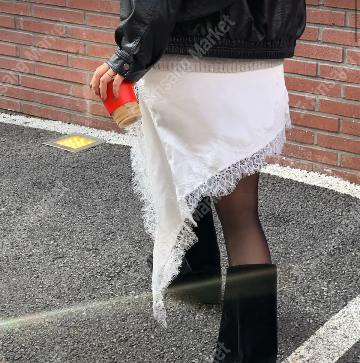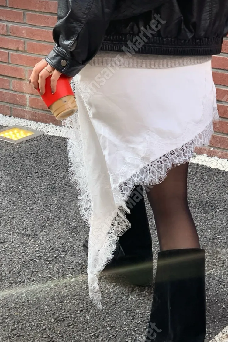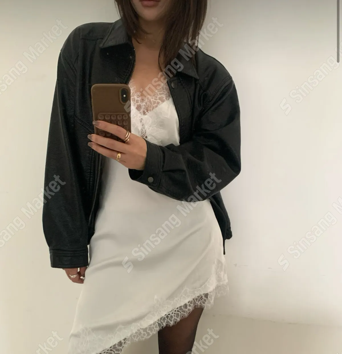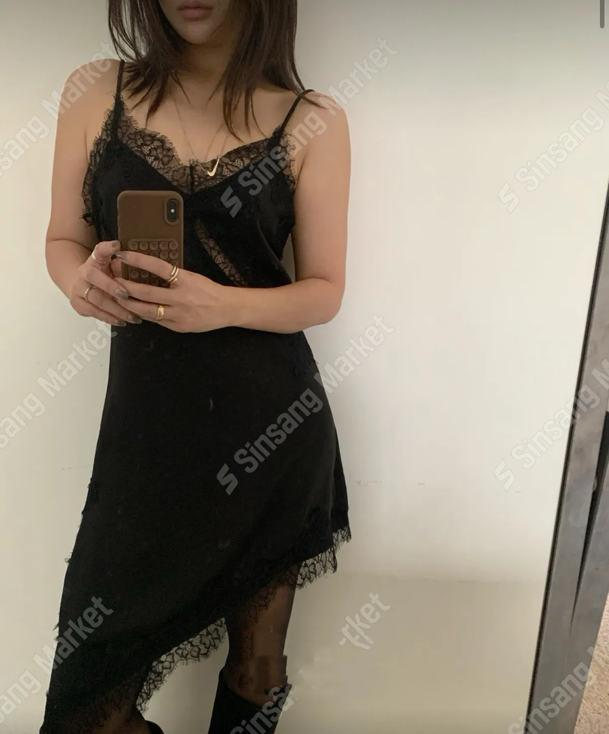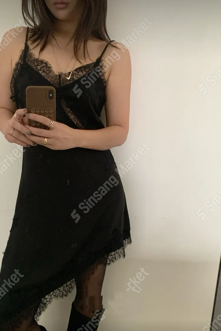 下斜蕾絲緞面細肩洋裝(肉0清單)