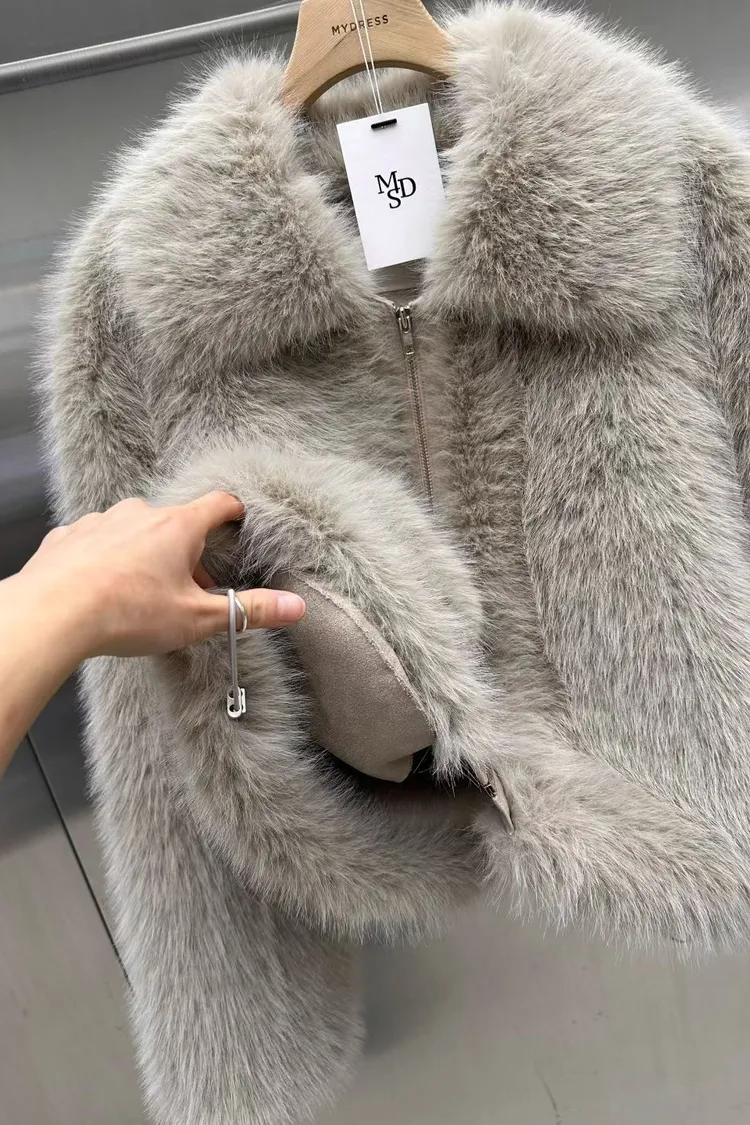 質感毛毛拉鍊外套