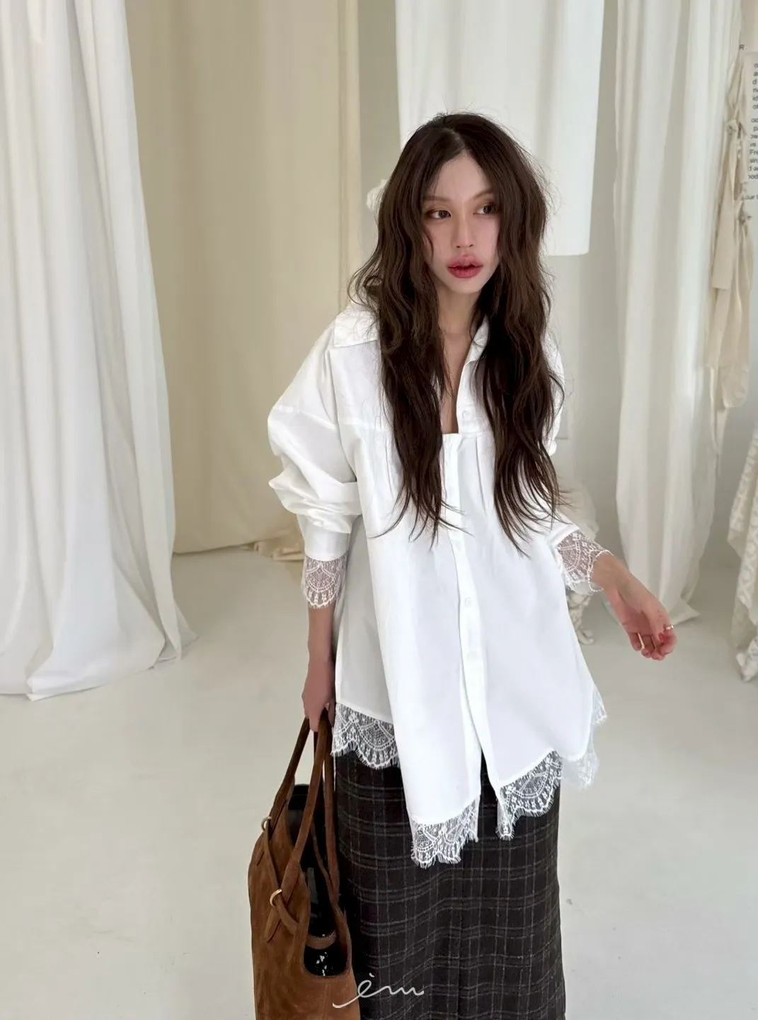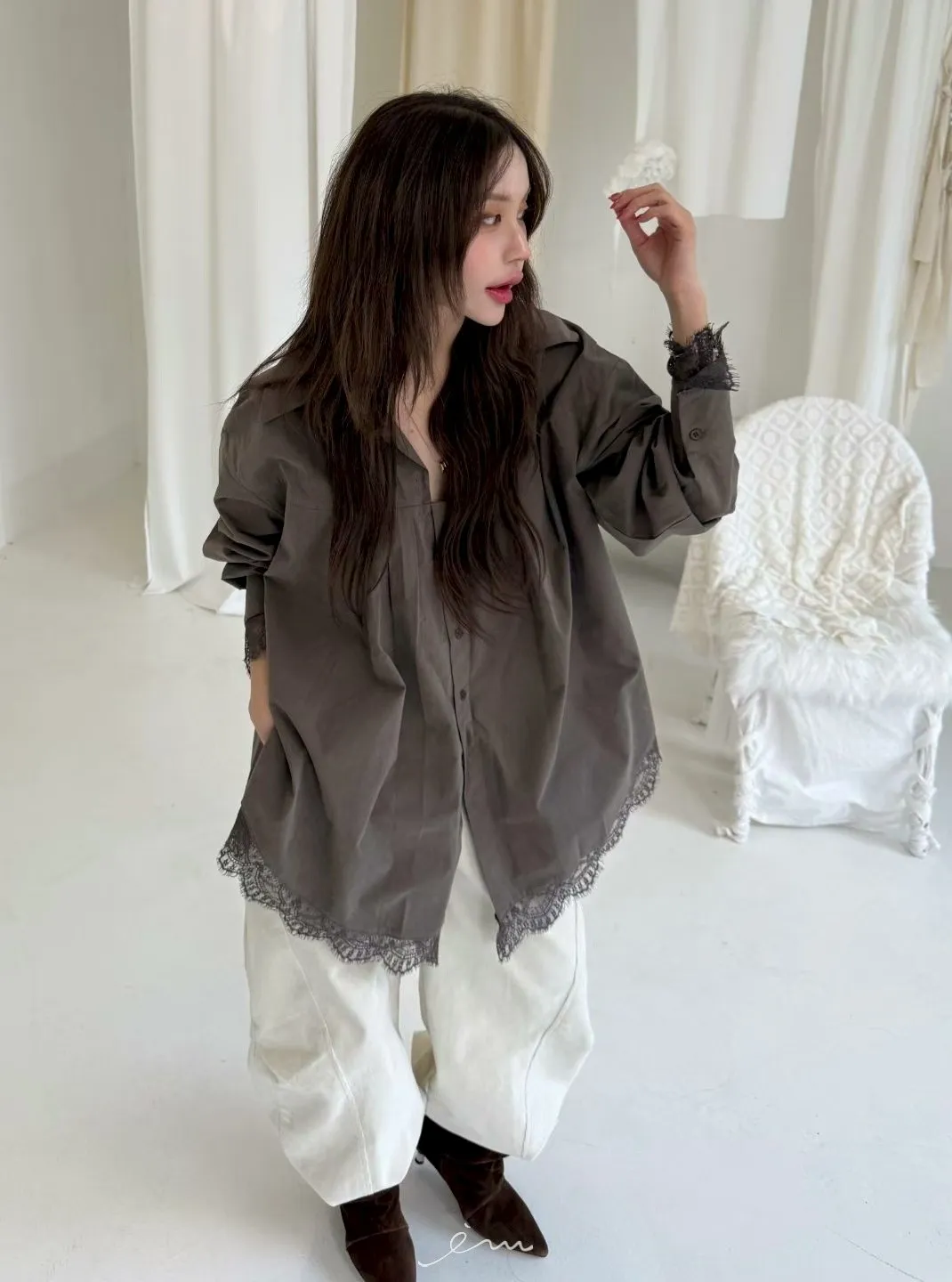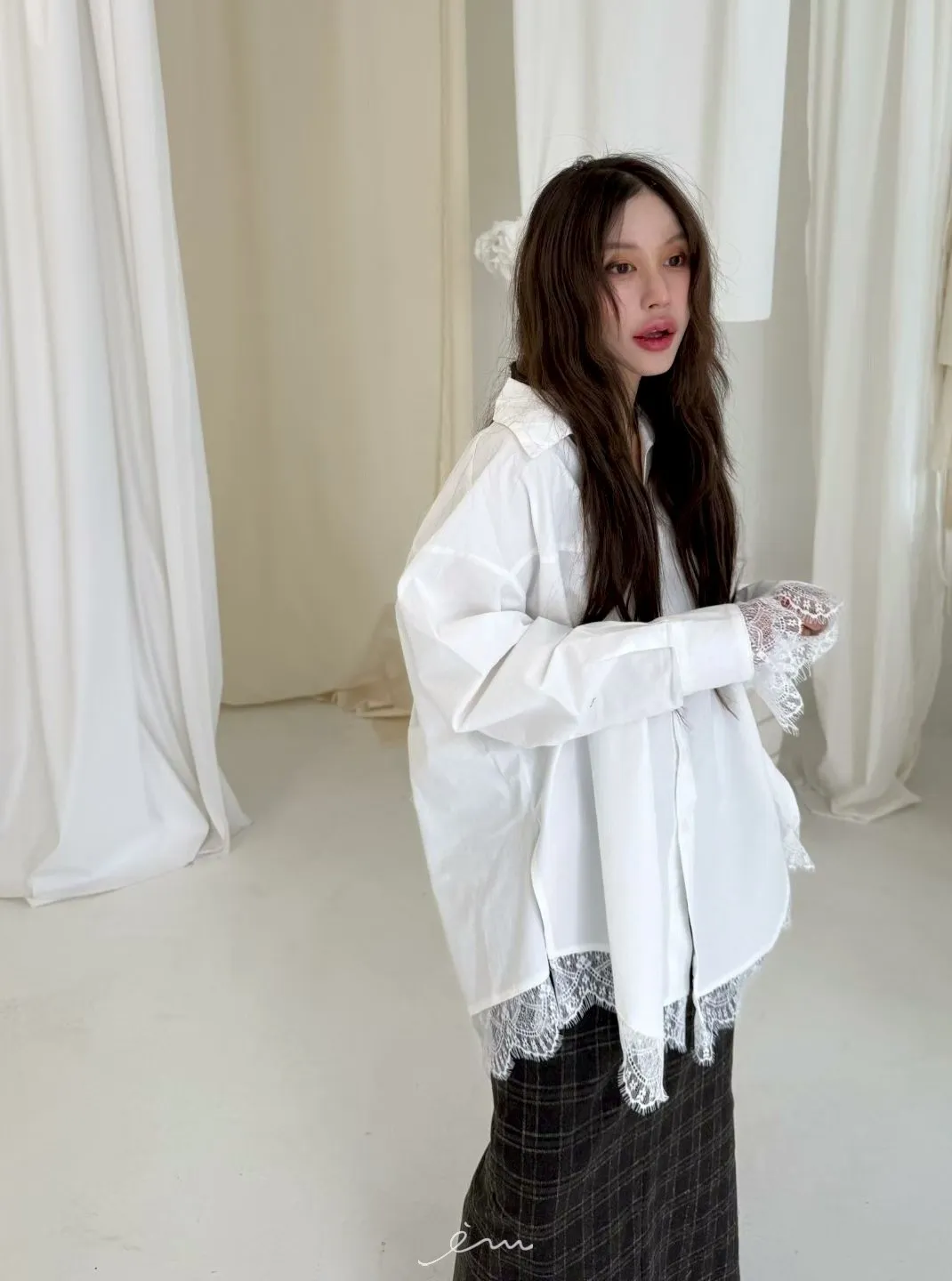 BER下拼蕾絲襯衫