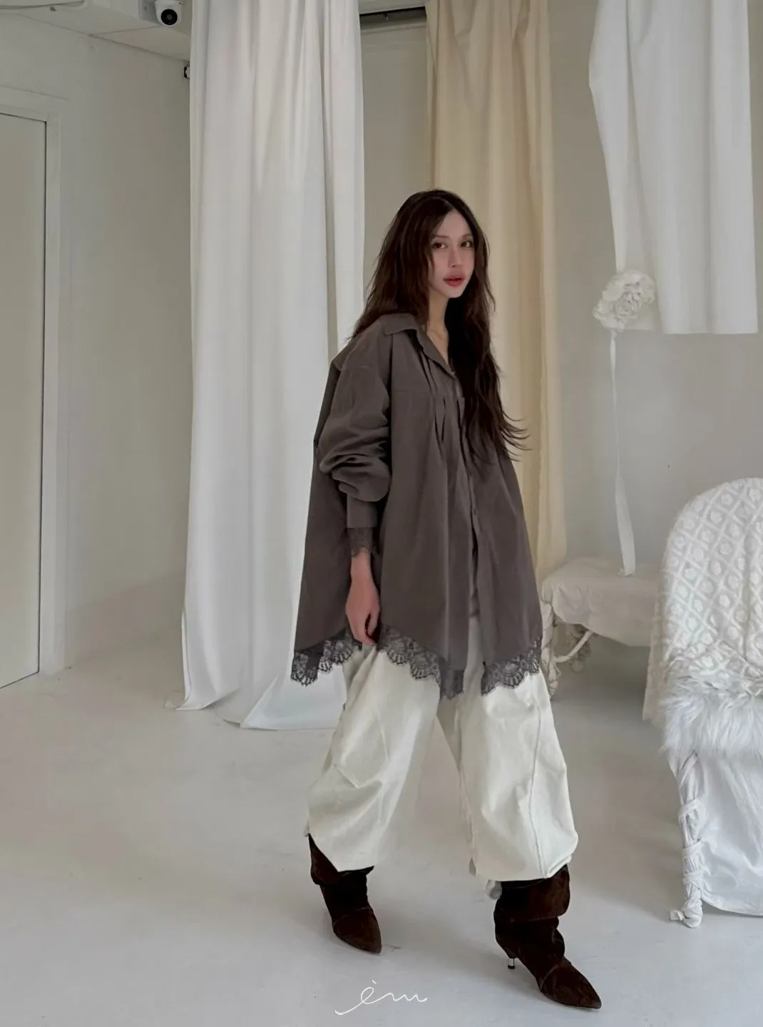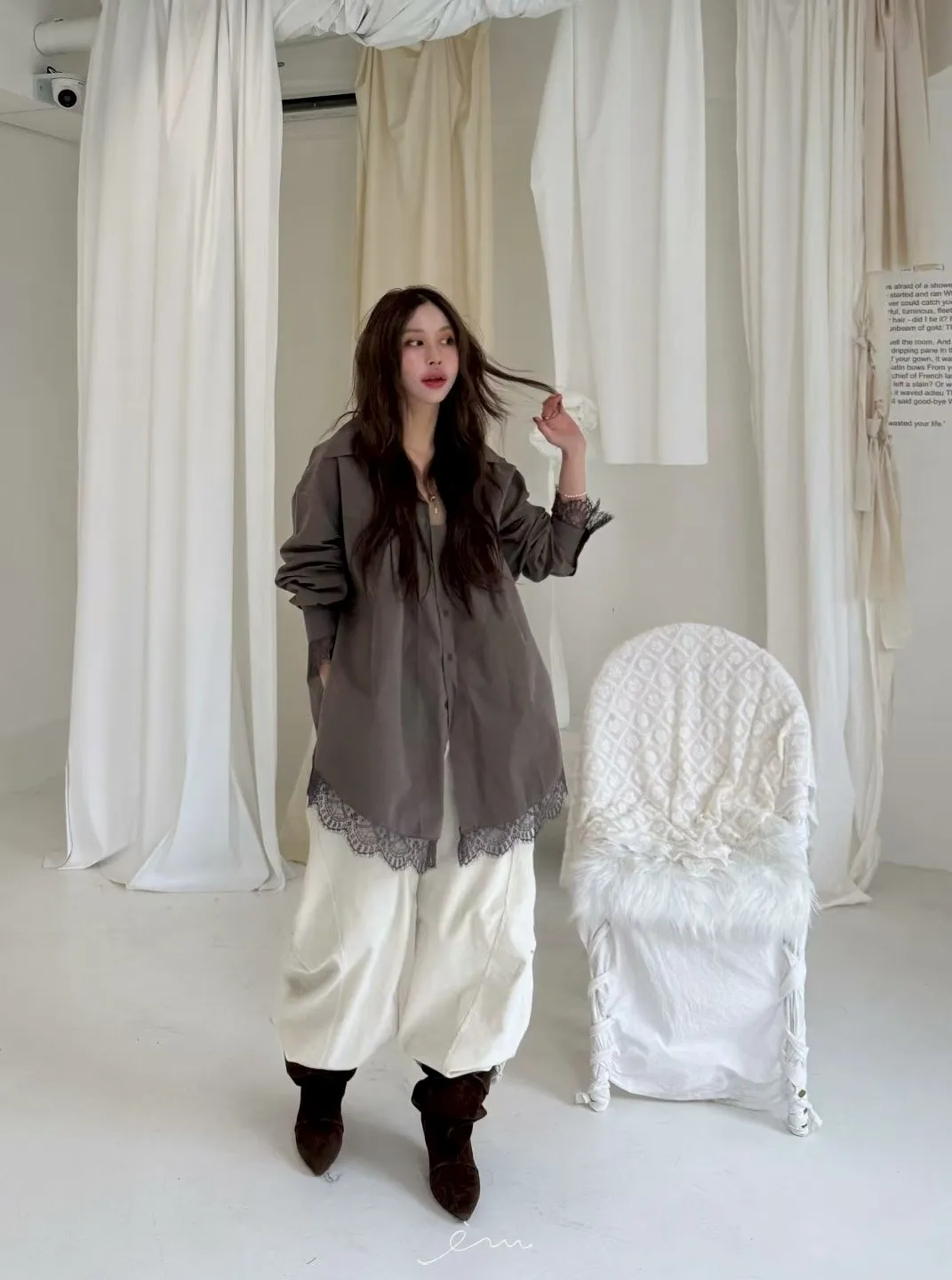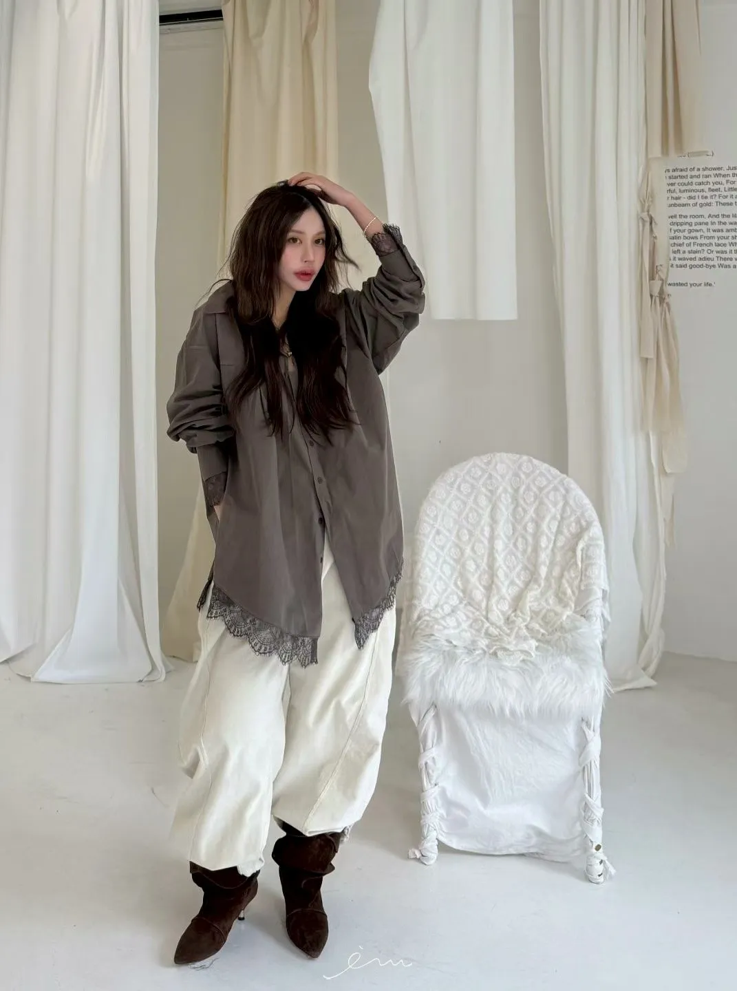 BER下拼蕾絲襯衫