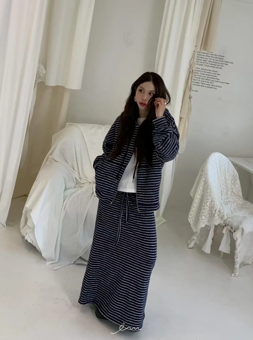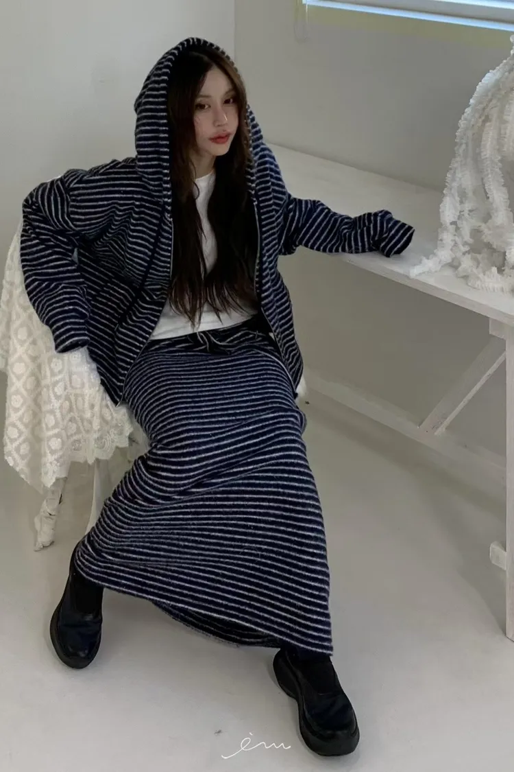 BER雙拉鍊下可縮條紋連帽外套